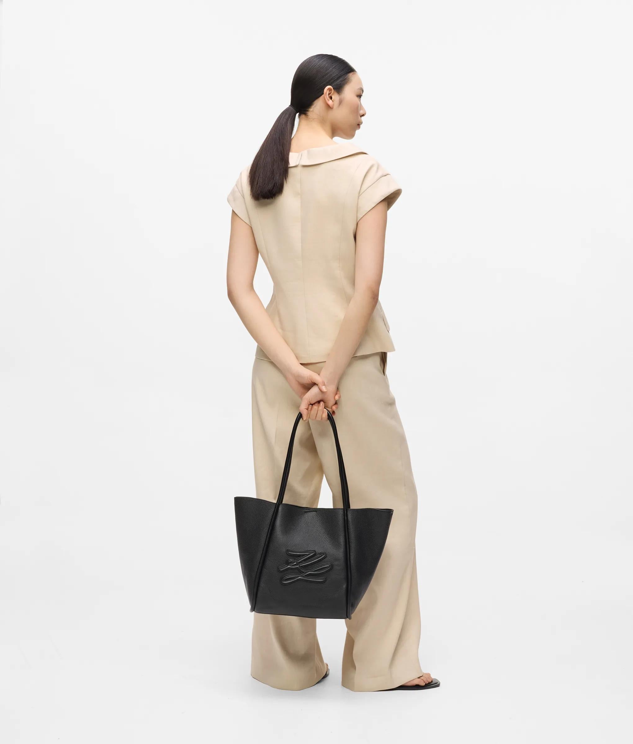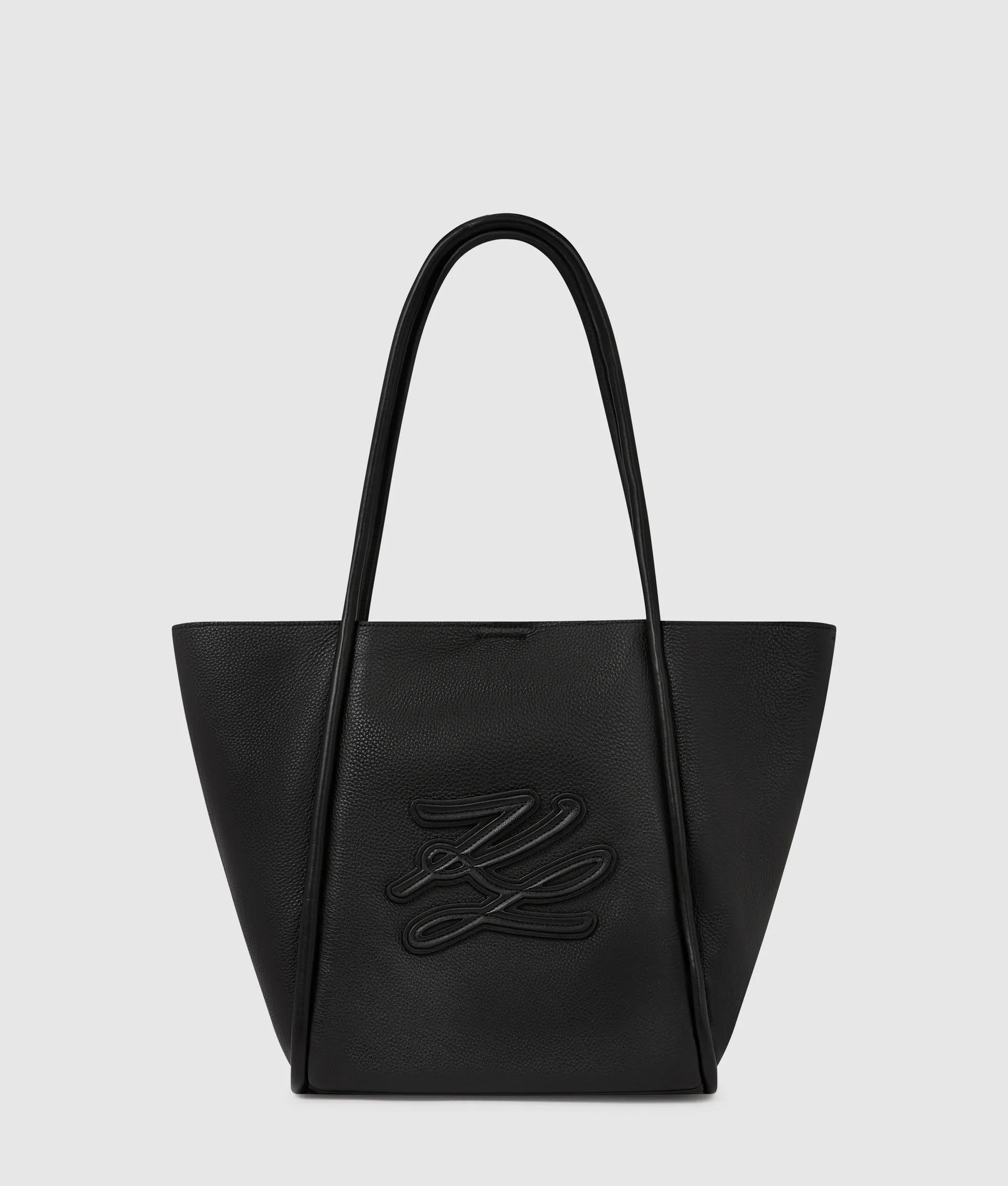 Perfect for the office to the evening, this laptop-friendly tote bag features a soft technical leather finish with elongated handles for effortless carrying. A tonal Karl Autograph logo adds refinement.