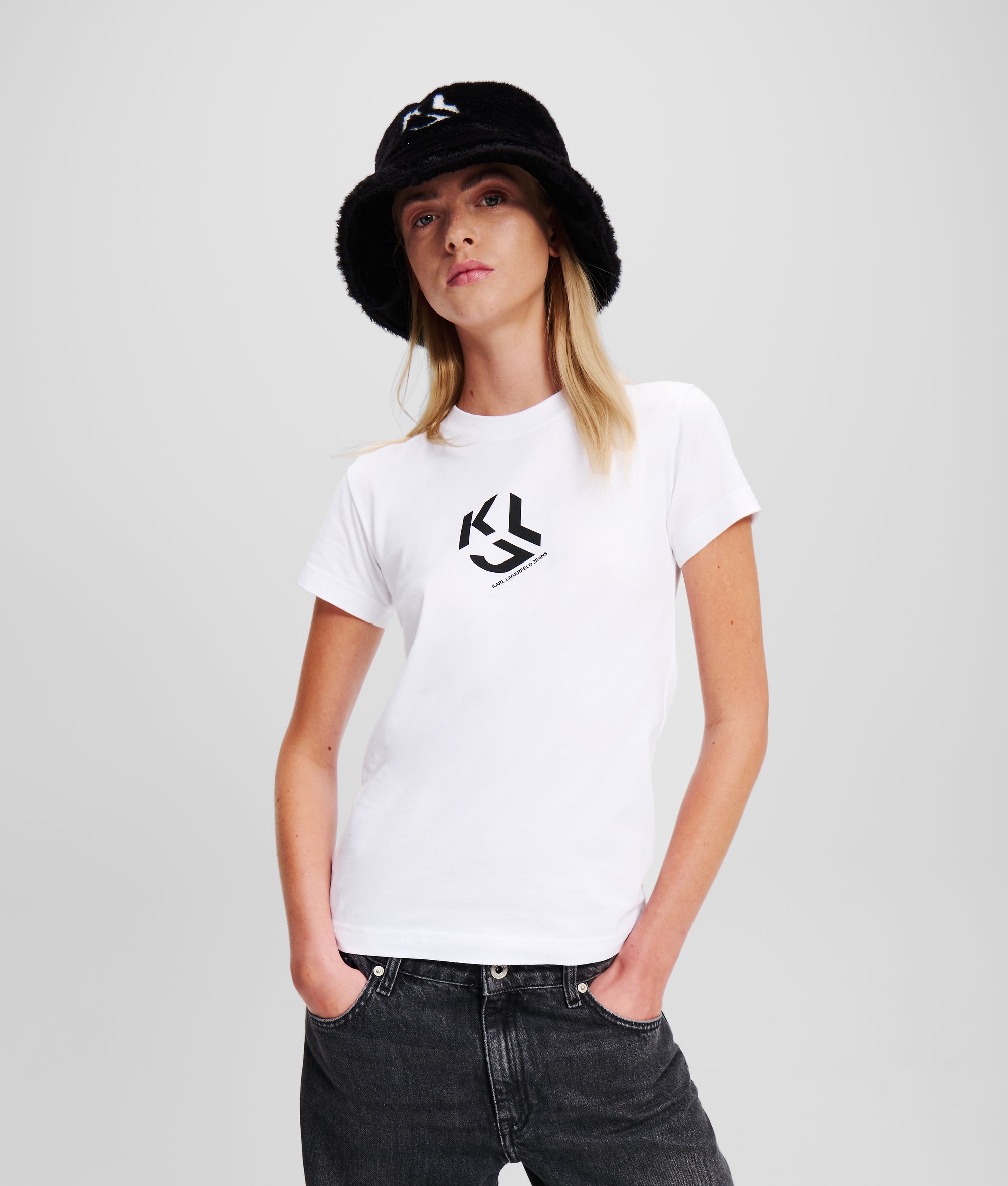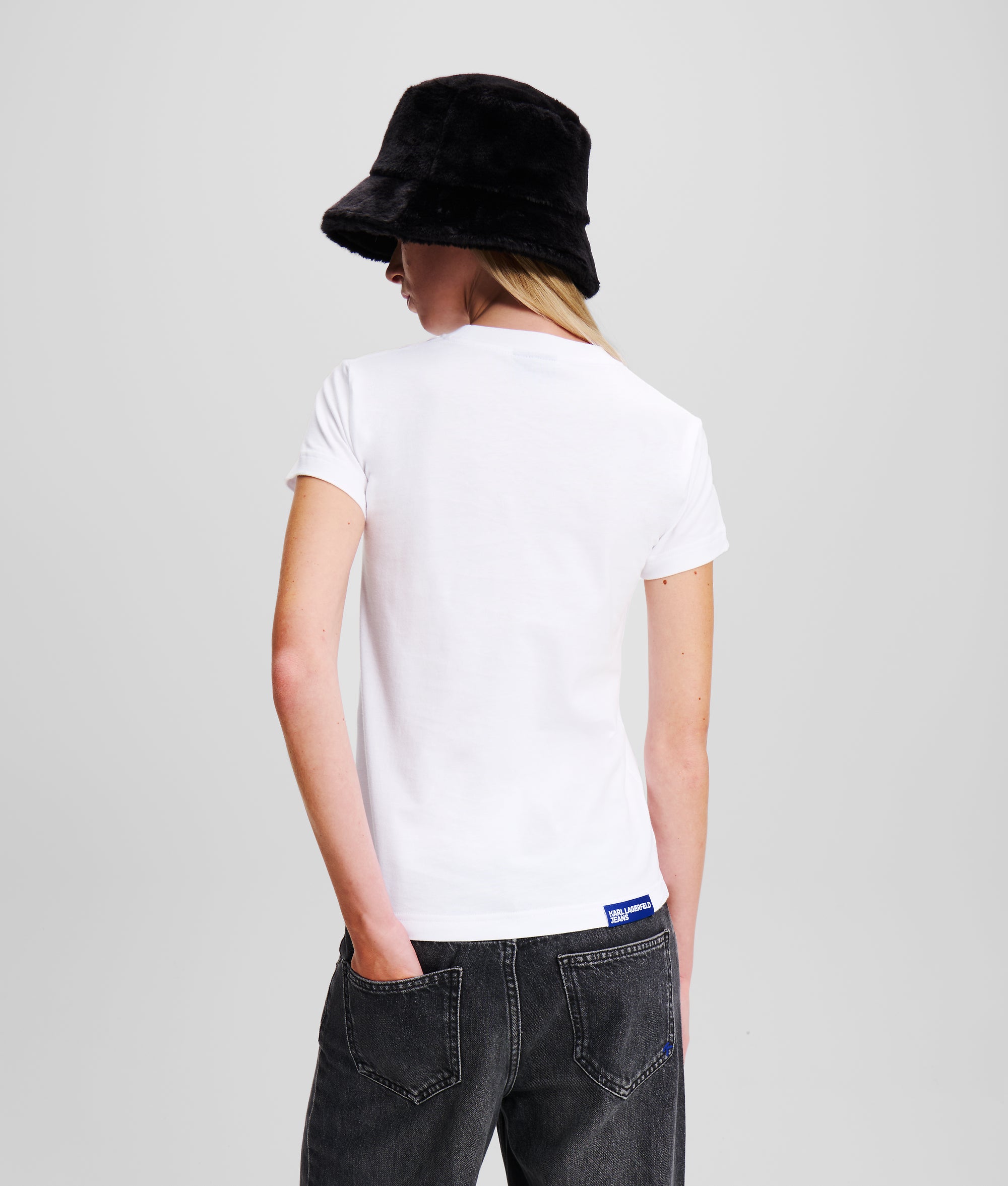 Cut from breathable organic cotton, this crew neck T-shirt boasts a fitted silhouette and the iconic KARL LAGERFELD JEANS monogram, positioned front and center.