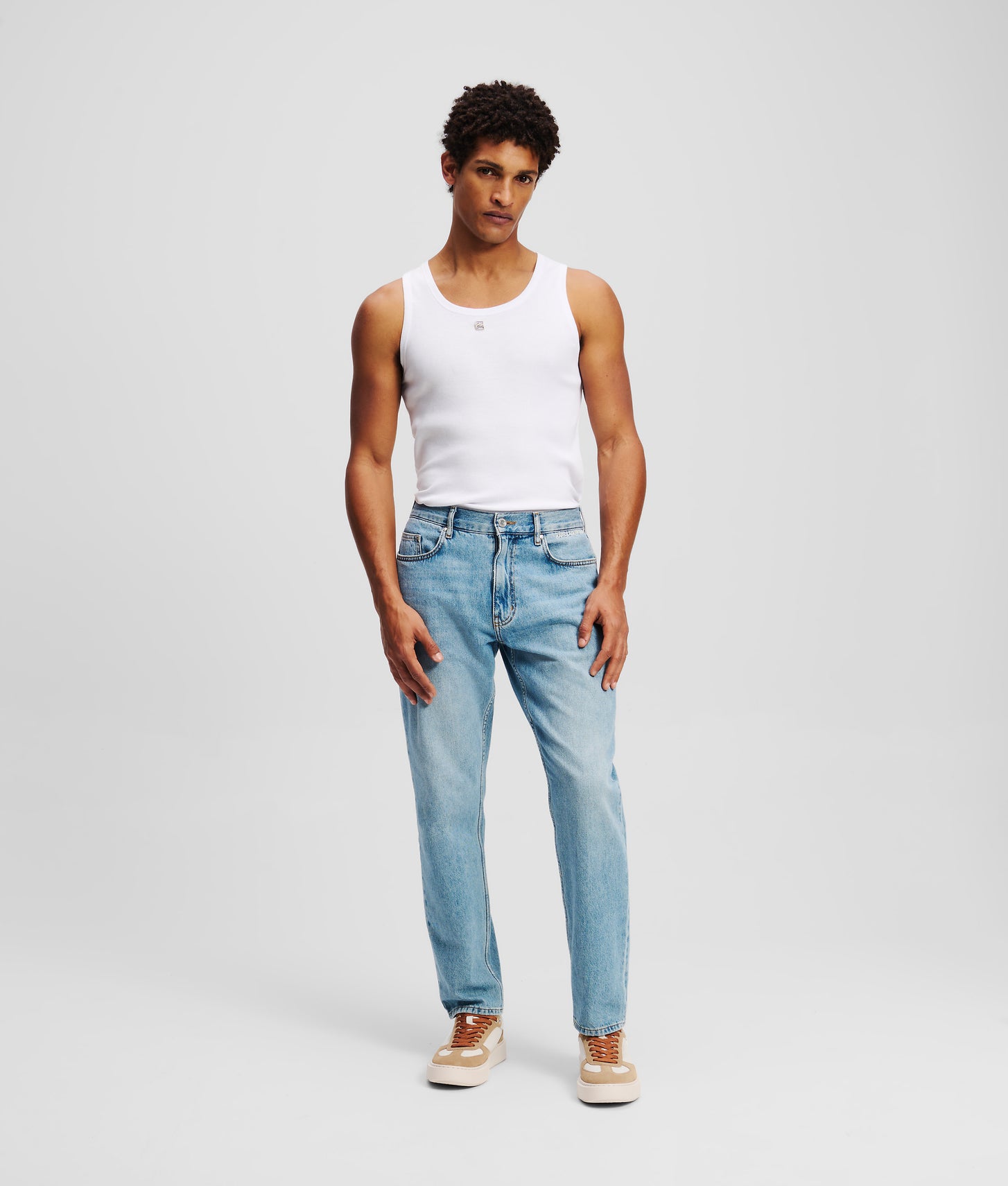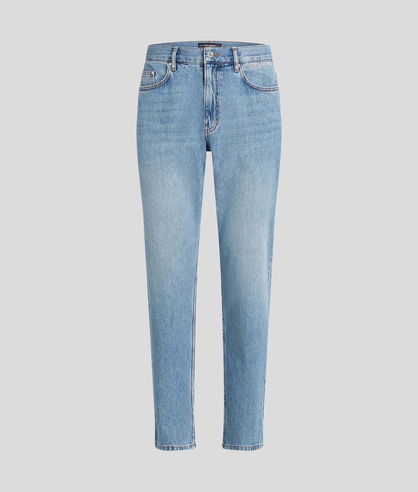 Step into effortless style with these tapered jeans, designed for versatility and comfort. Featuring a classic five-pocket design, they boast a branded button and zip-fly closure. Subtle KARL LAGERFELD embroidery adds a touch of distinction, perfect for any casual outing.