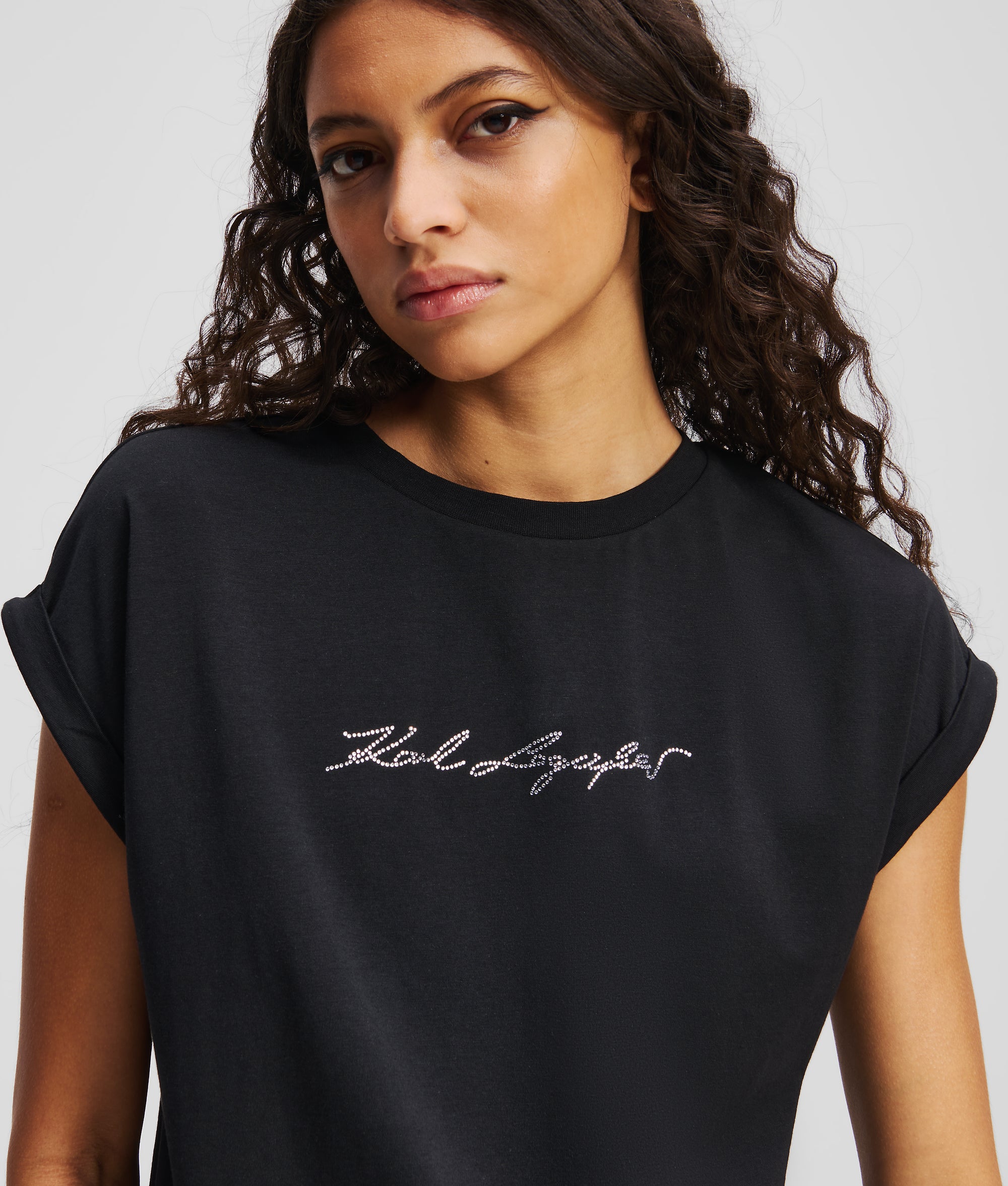 A classic crew neck design meets playful charm with this T-shirt, adorned with striking rhinestone KARL Signature artwork. Effortlessly stylish, this elevated staple adds a touch of sparkle to everyday outfits.