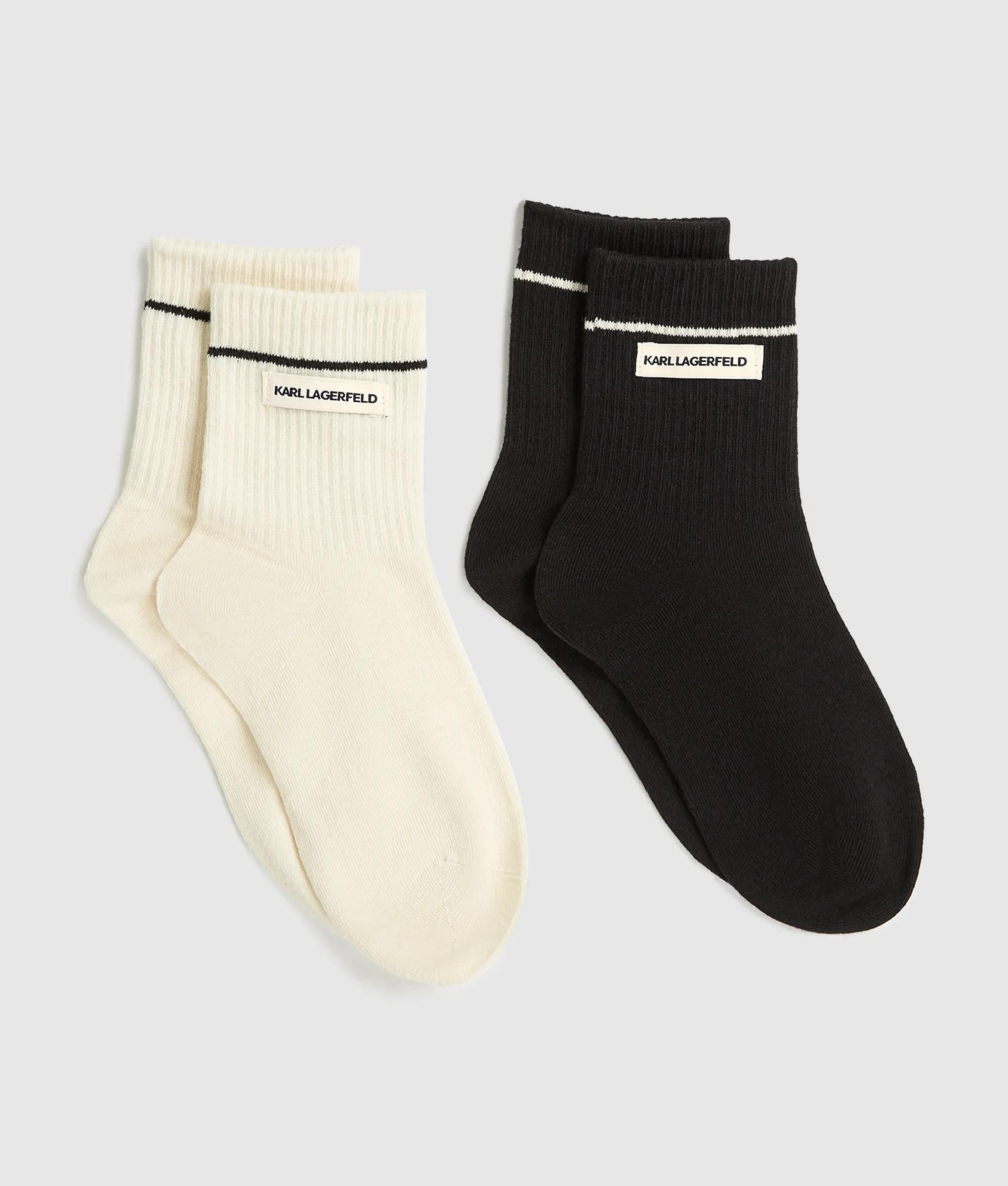 Contrast piping and rib-knit texture define these logo socks, offering subtle edge and comfort with an organic cotton blend. Two pairs bring versatile polish to your essentials.