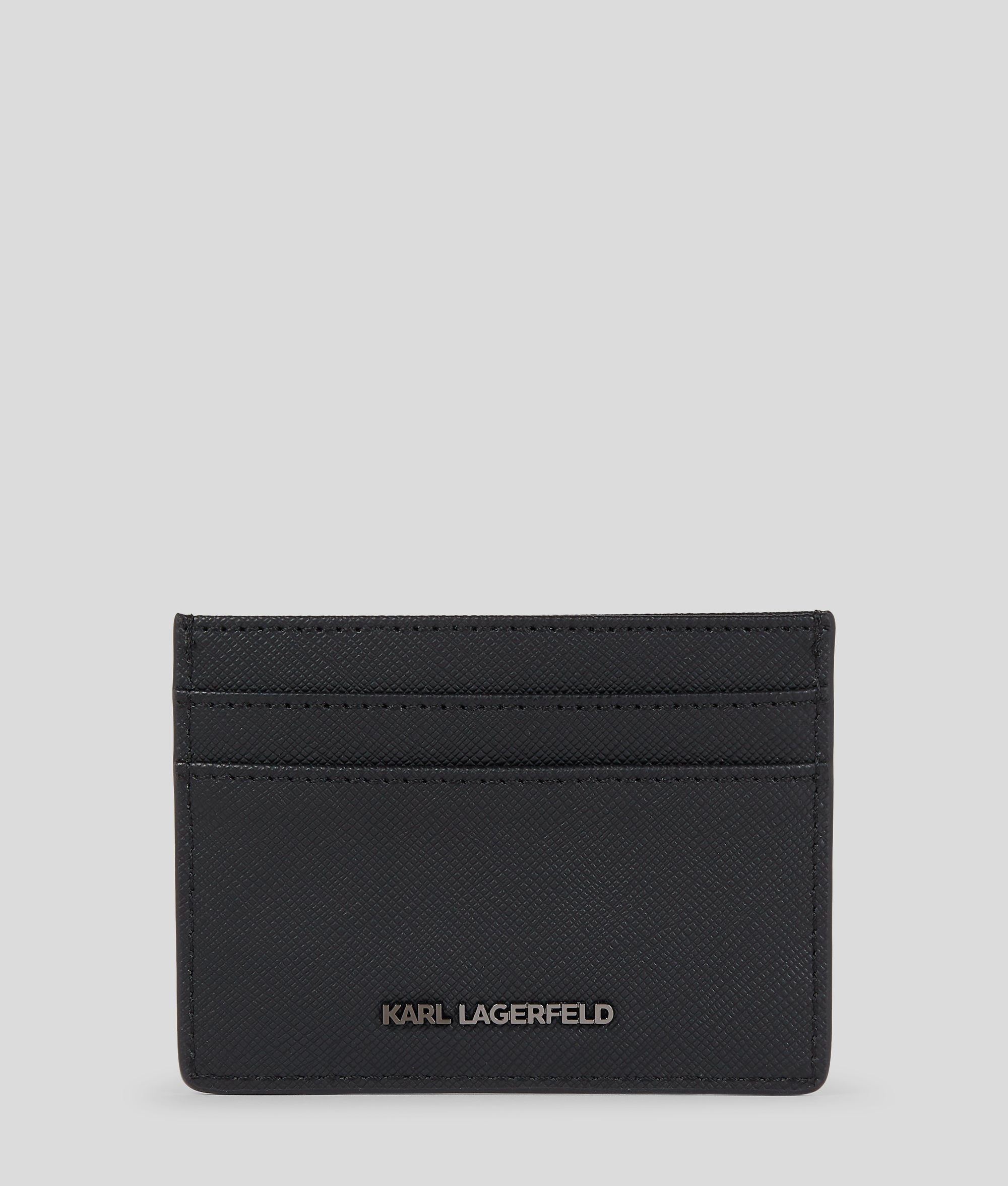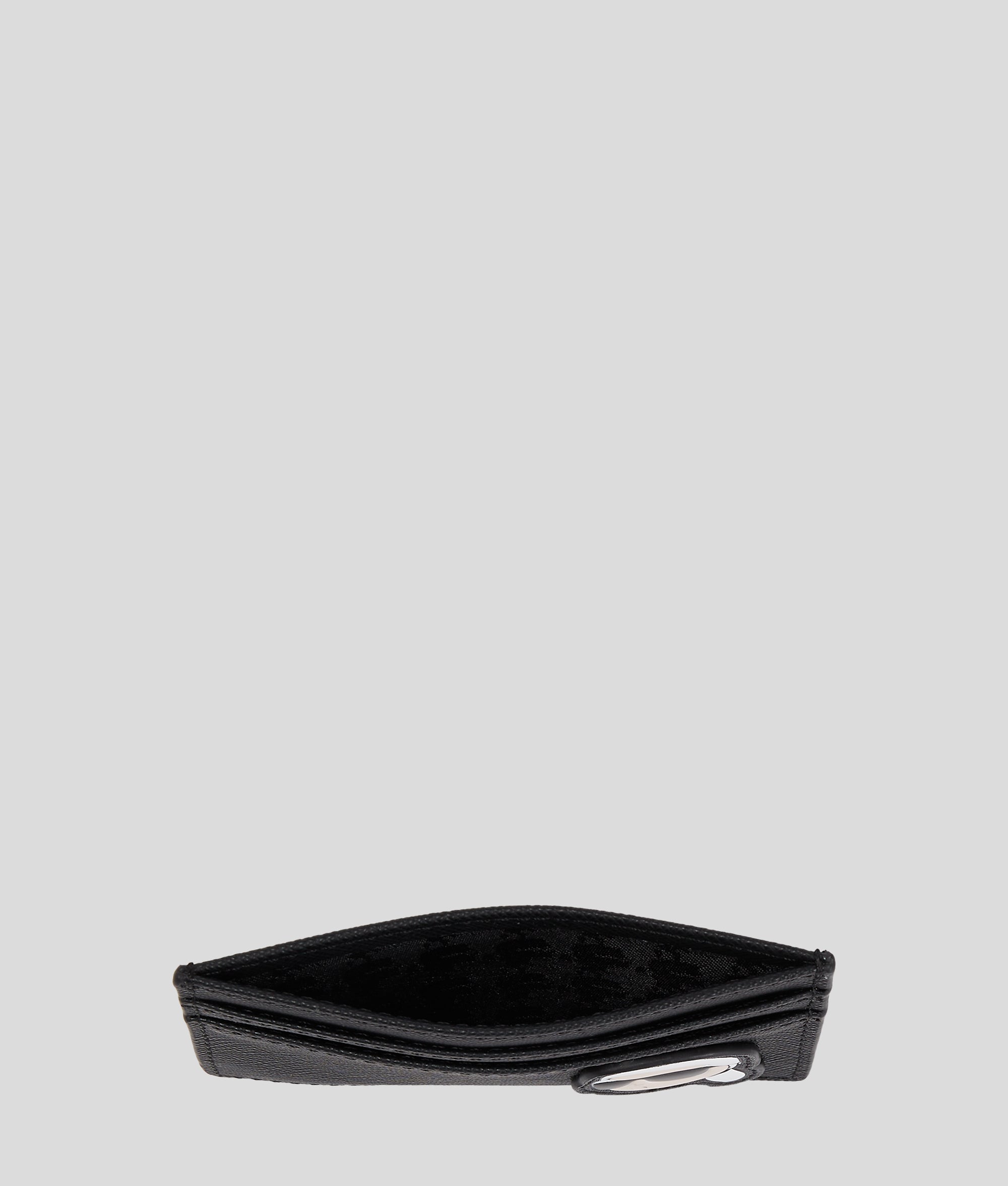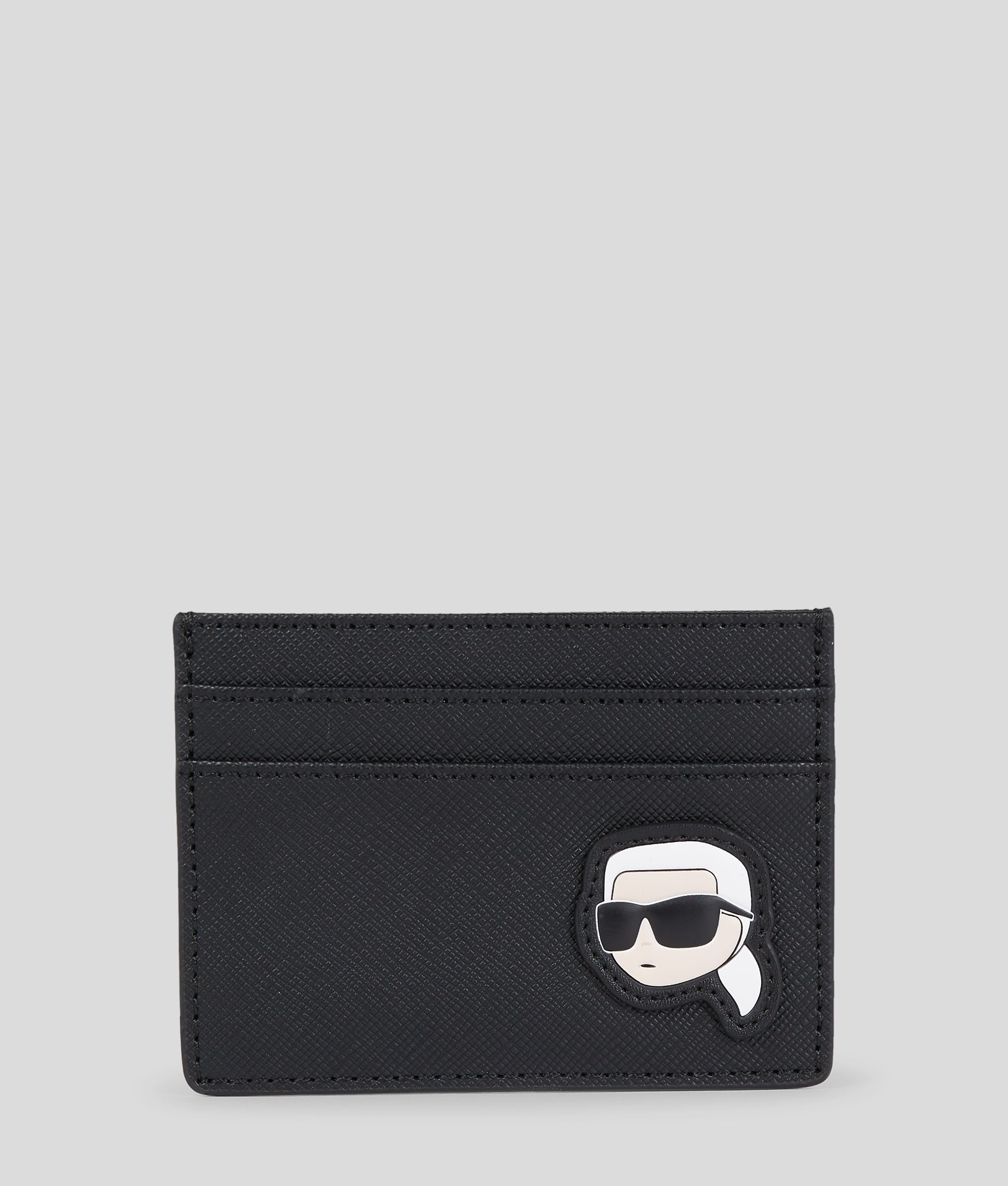 An ultra-sleek, technical leather cardholder crafted in a pocket-friendly silhouette. Standout KARL logo hardware and a playful IKON Karl artwork patch complete this everyday staple.