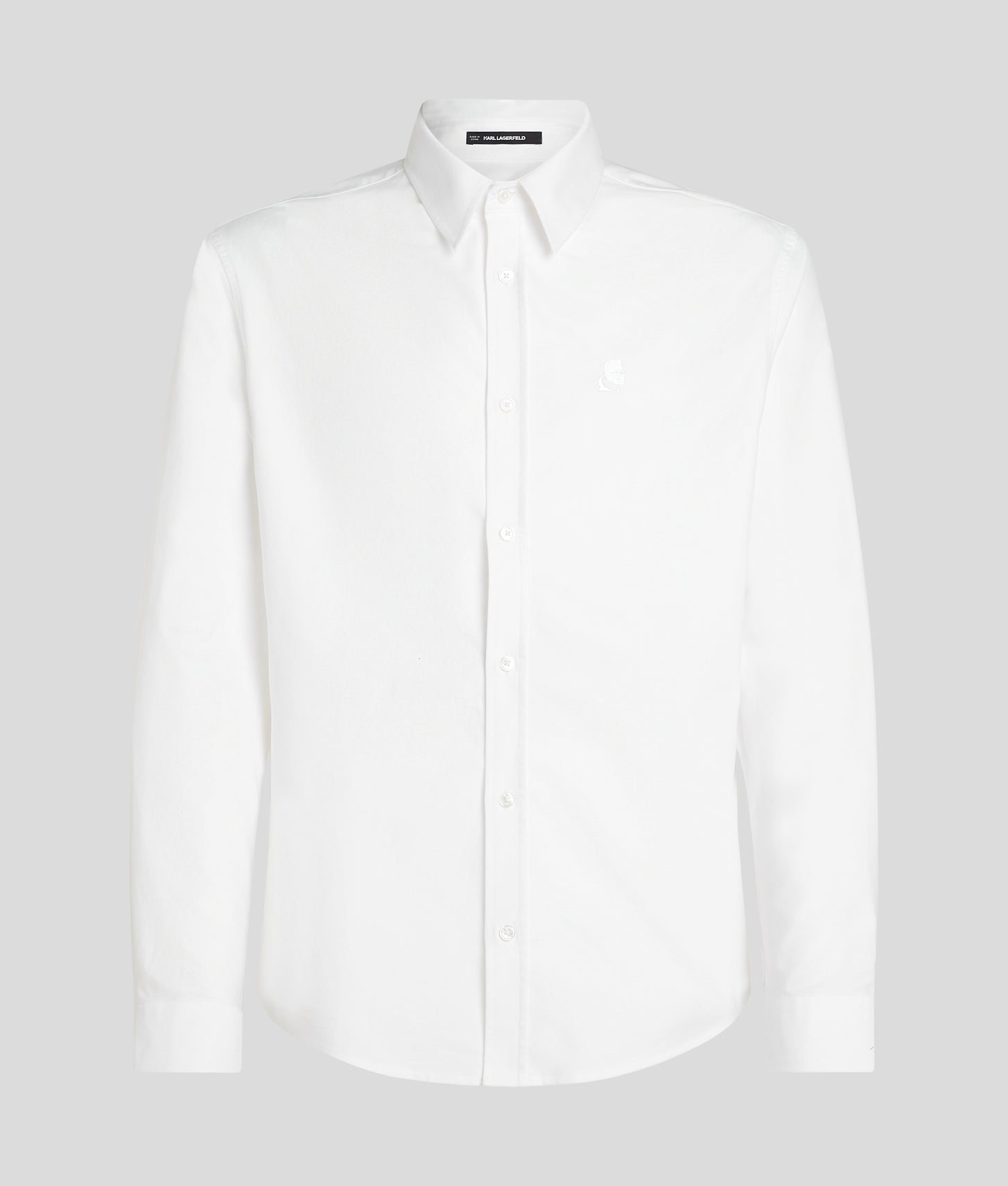 Crafted from crisp cotton, this shirt features a button-front fastening and a pointed collar. A tonal KARL Kameo motif adds a refined touch, perfect for elevating any day-to-night ensemble.