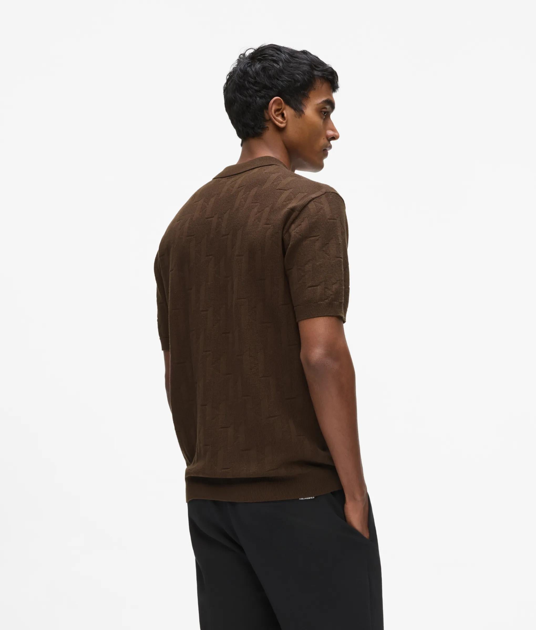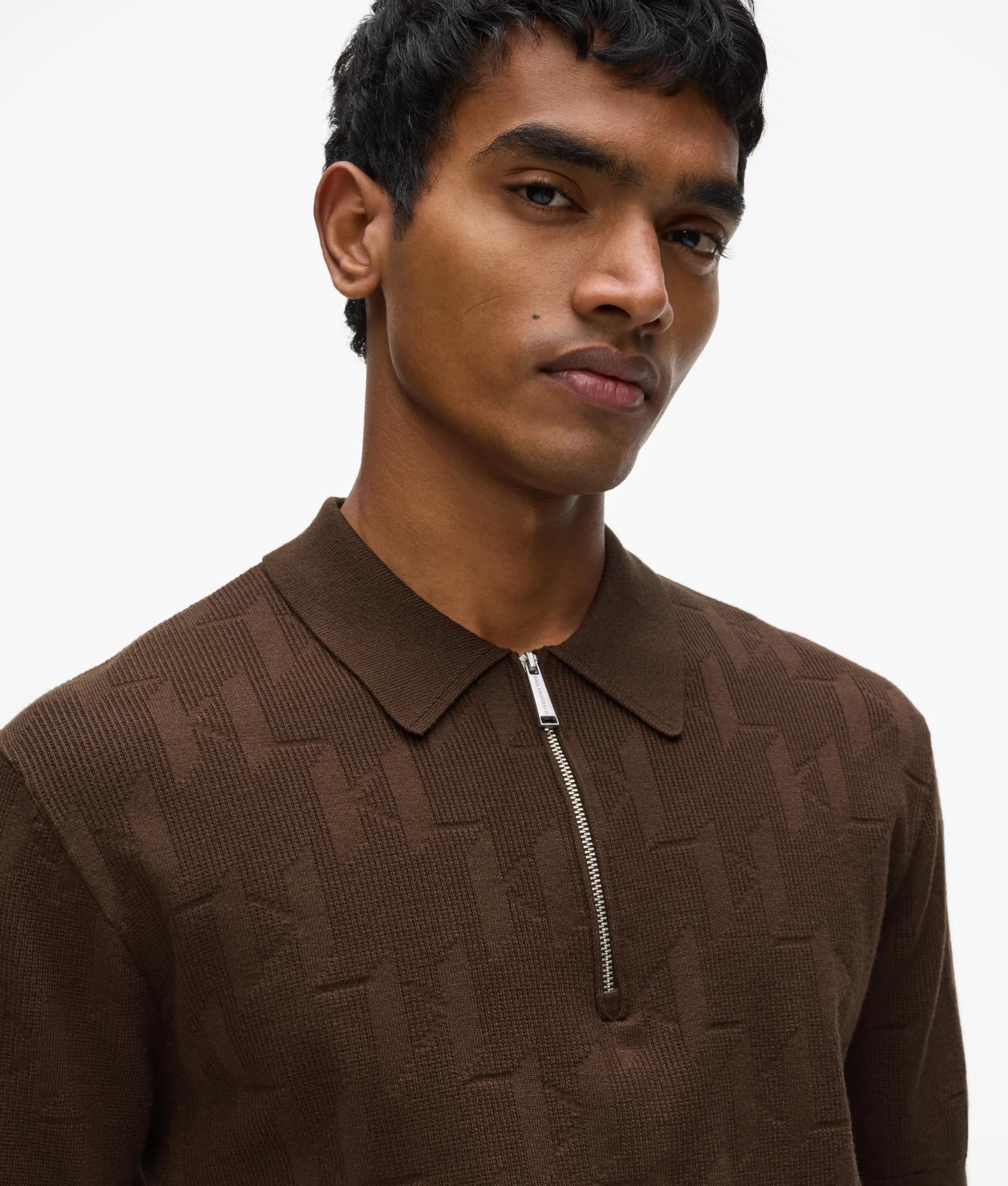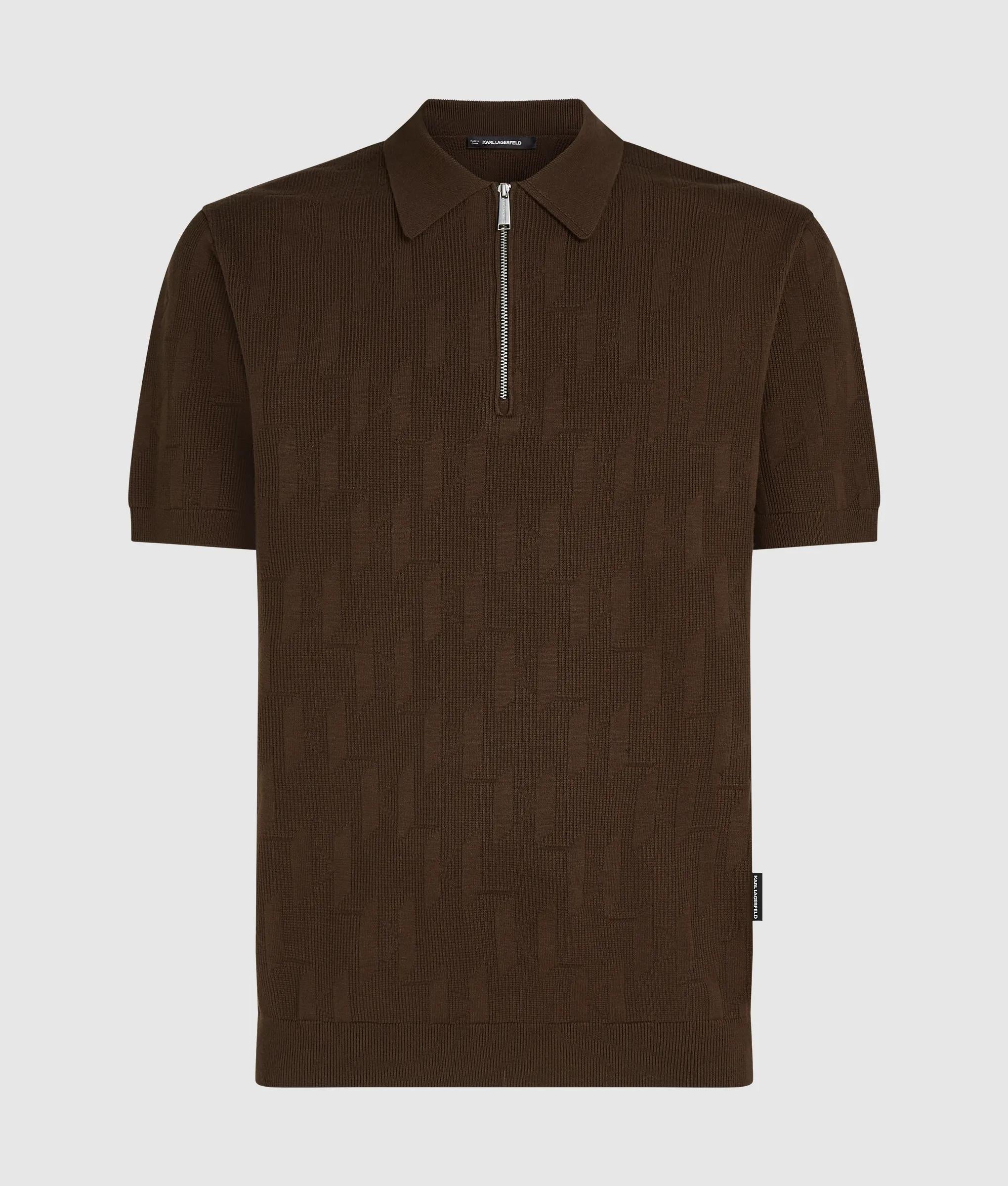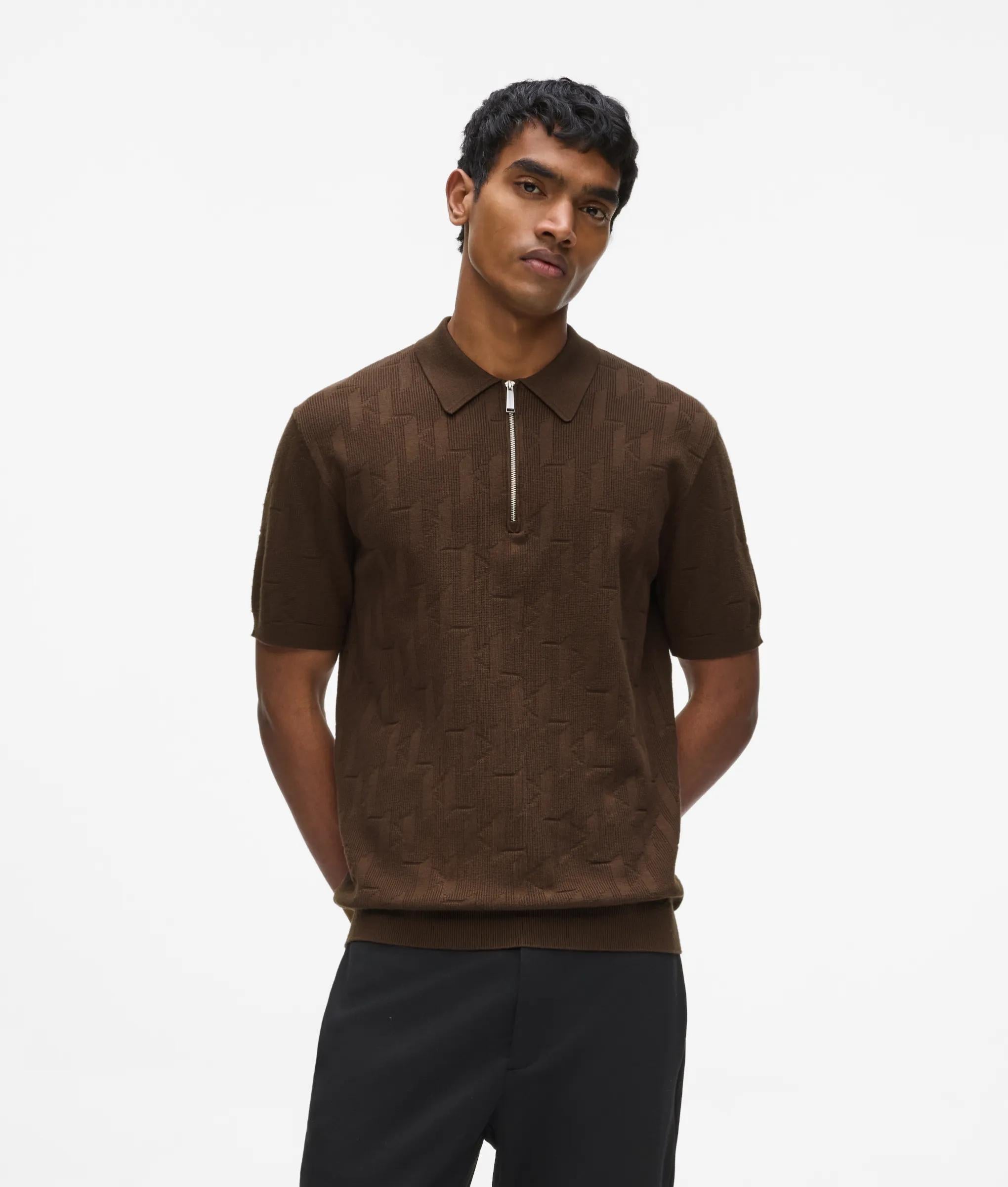 A preppy style staple refreshed by a zip-up closure at the chic pointed collar. An all-over KARL Monogram jacquard further enhances the modern flair of this elevated polo shirt.