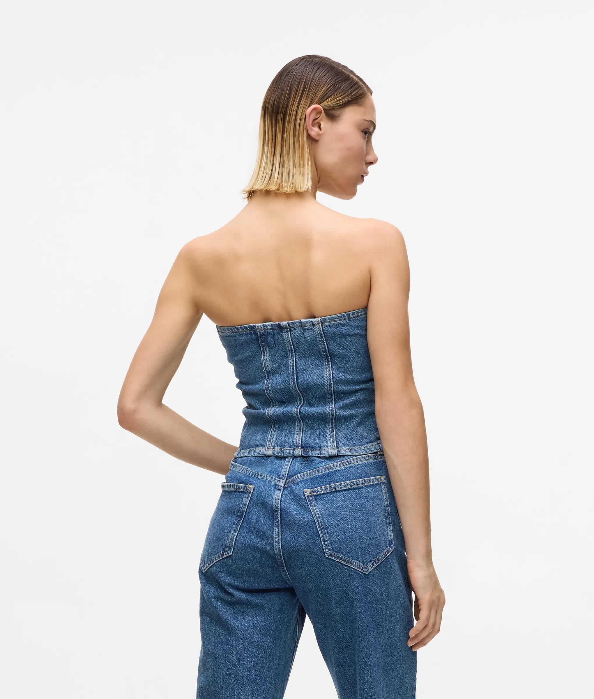 Featuring a lace-up front closure, this denim bustier lets you define the shape and the mood. Wear it with baggy jeans for Y2K energy or layer under a sharp blazer for evening polish.