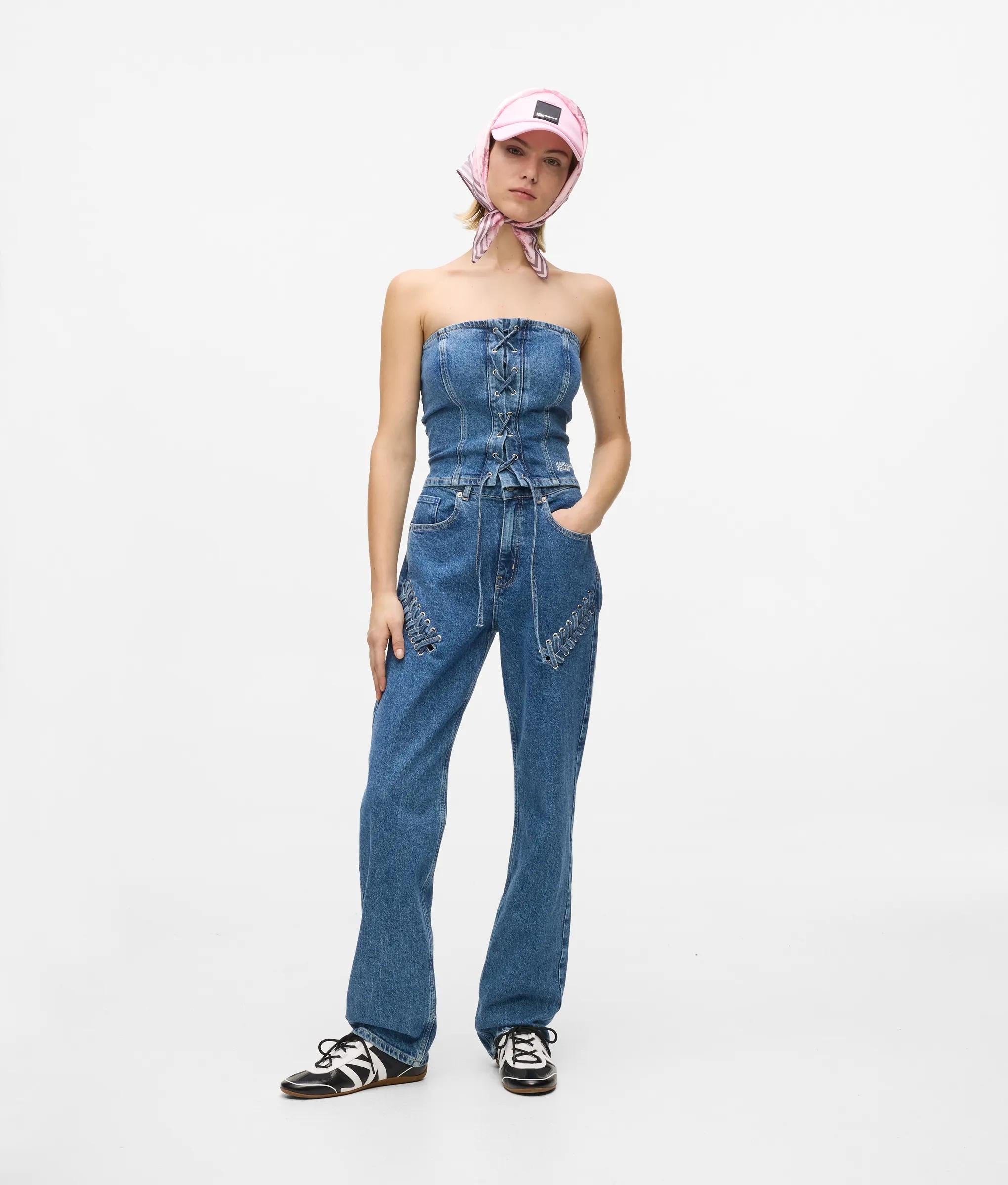 Lace-up denim bustier