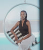 A halterneck swimsuit enhanced by a sharp collar detail at the plunging V-neck, echoing Karl Lagerfeld’s iconic style. High-cut and sleek, it is finished with gold-buttoned welt pockets for subtle luxury.