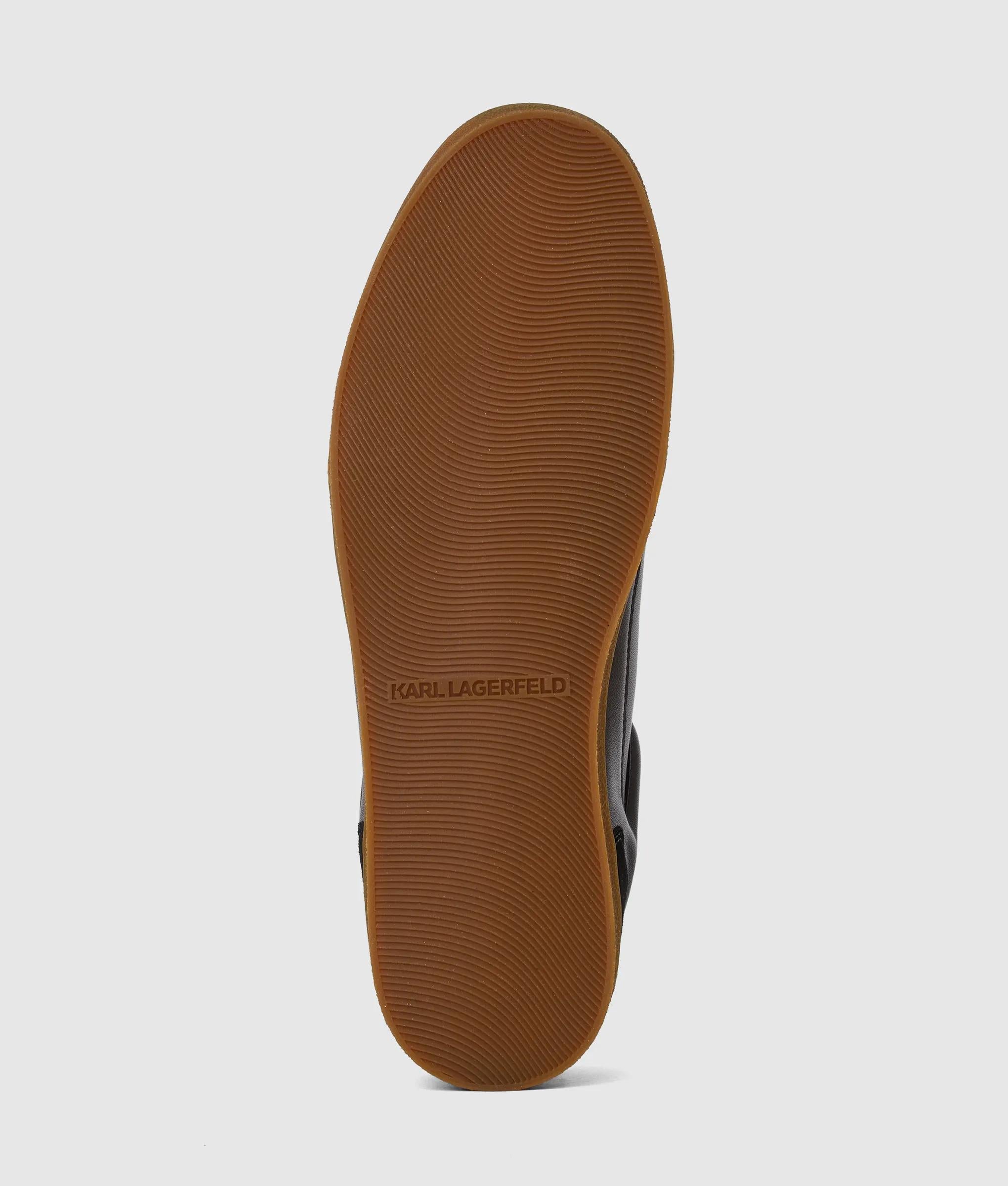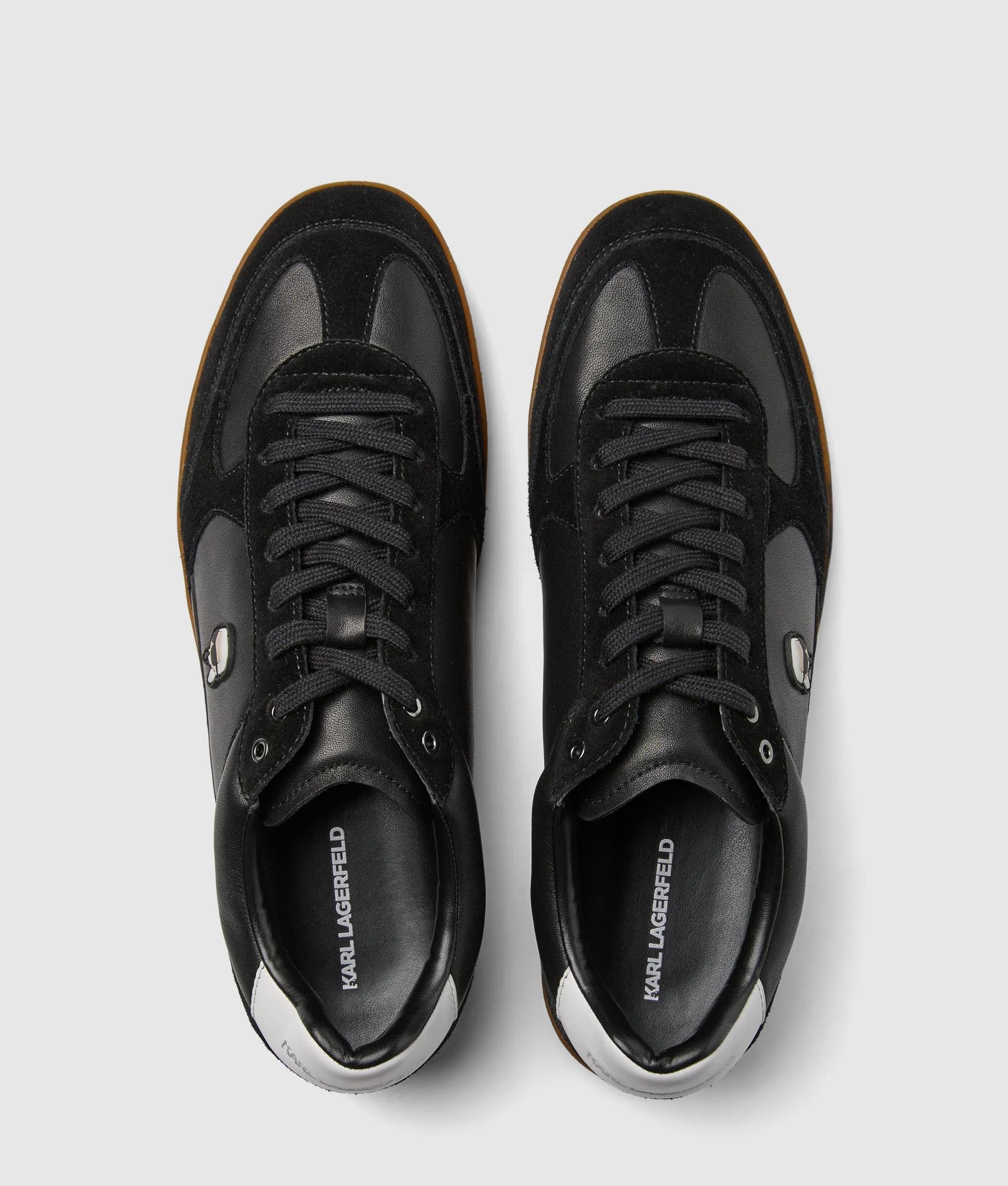 These versatile leather trainers are perfect for elevating casual looks or adding edge to tailored workwear. A statement Ikon Karl motif brings a playful touch.