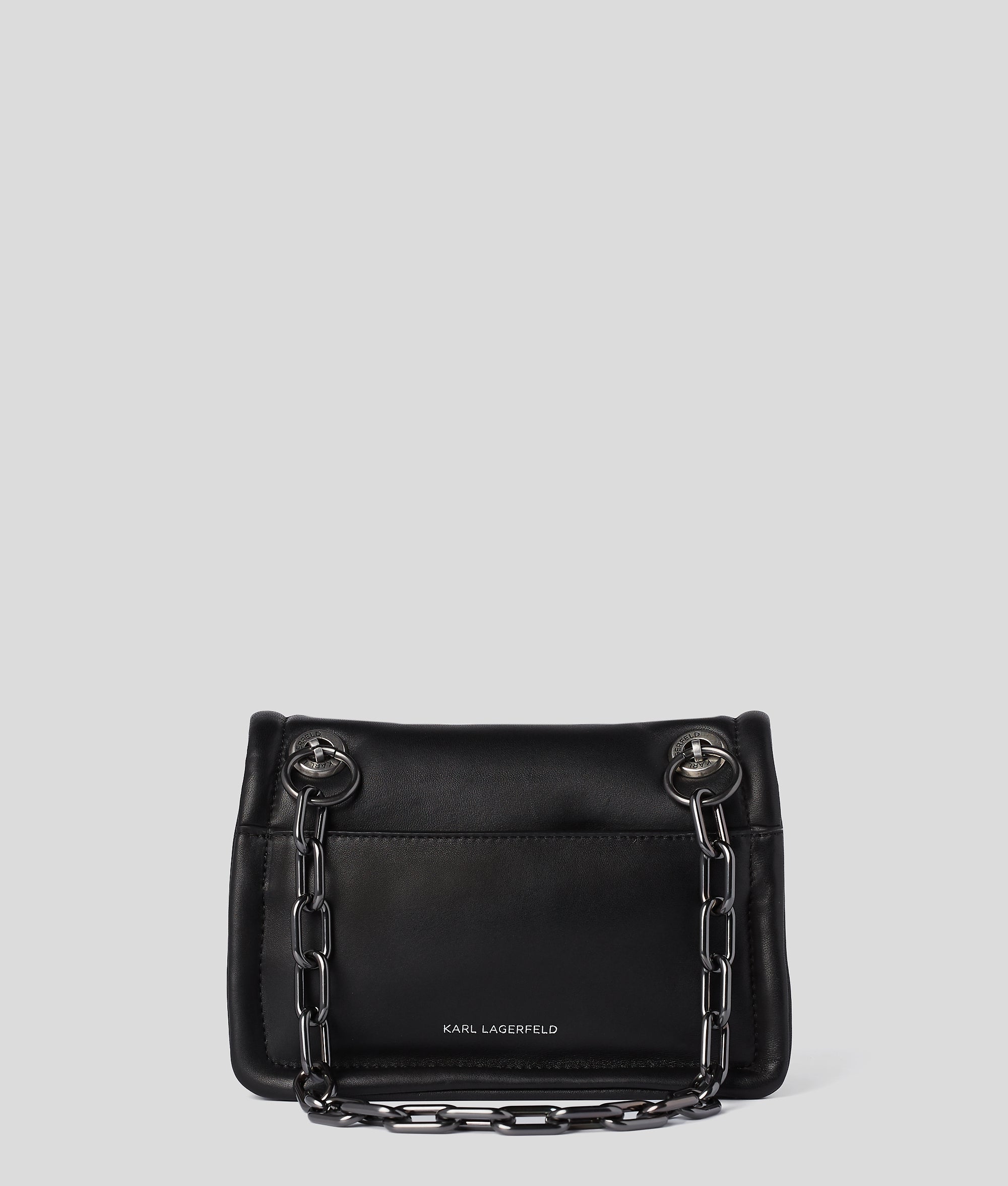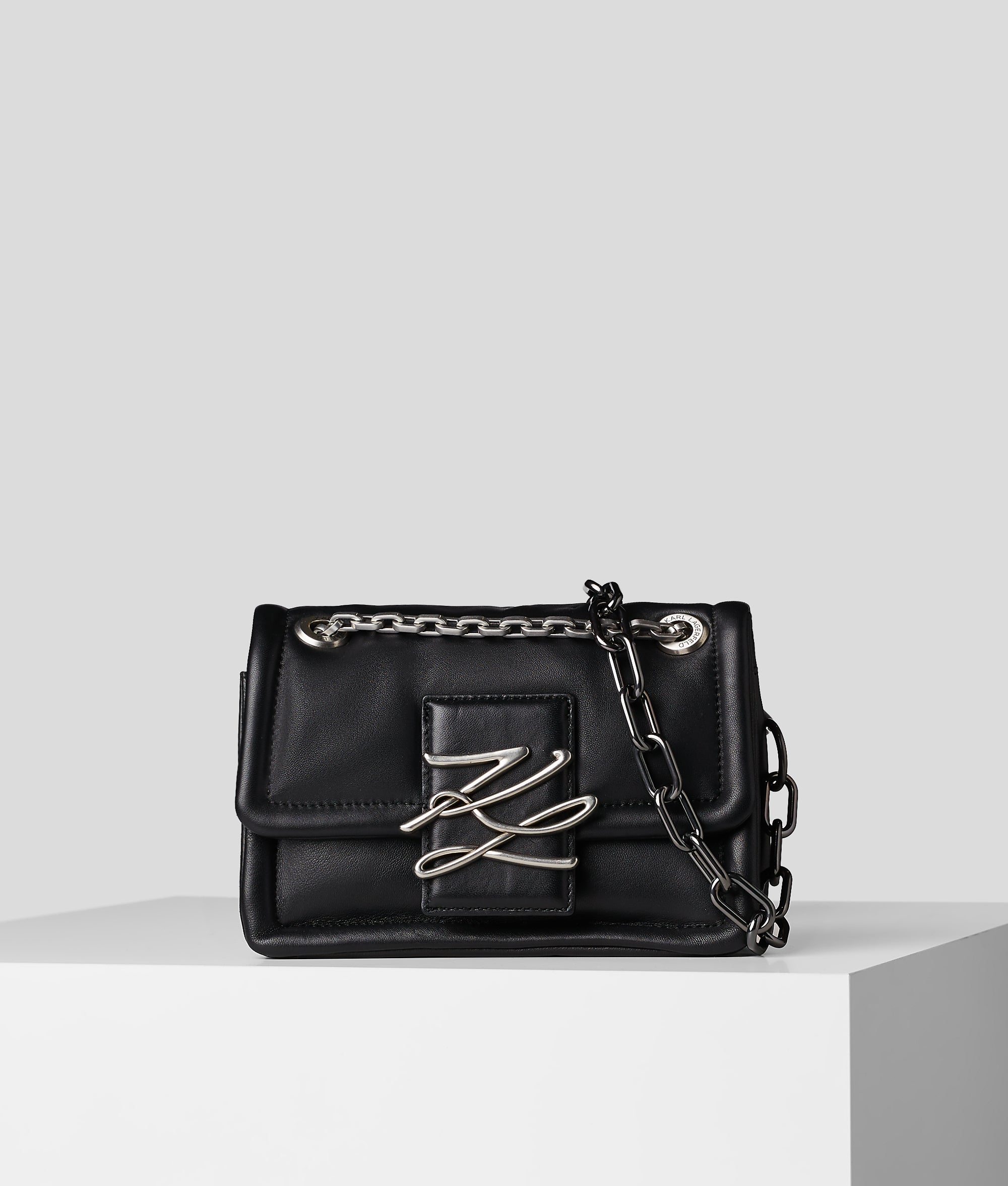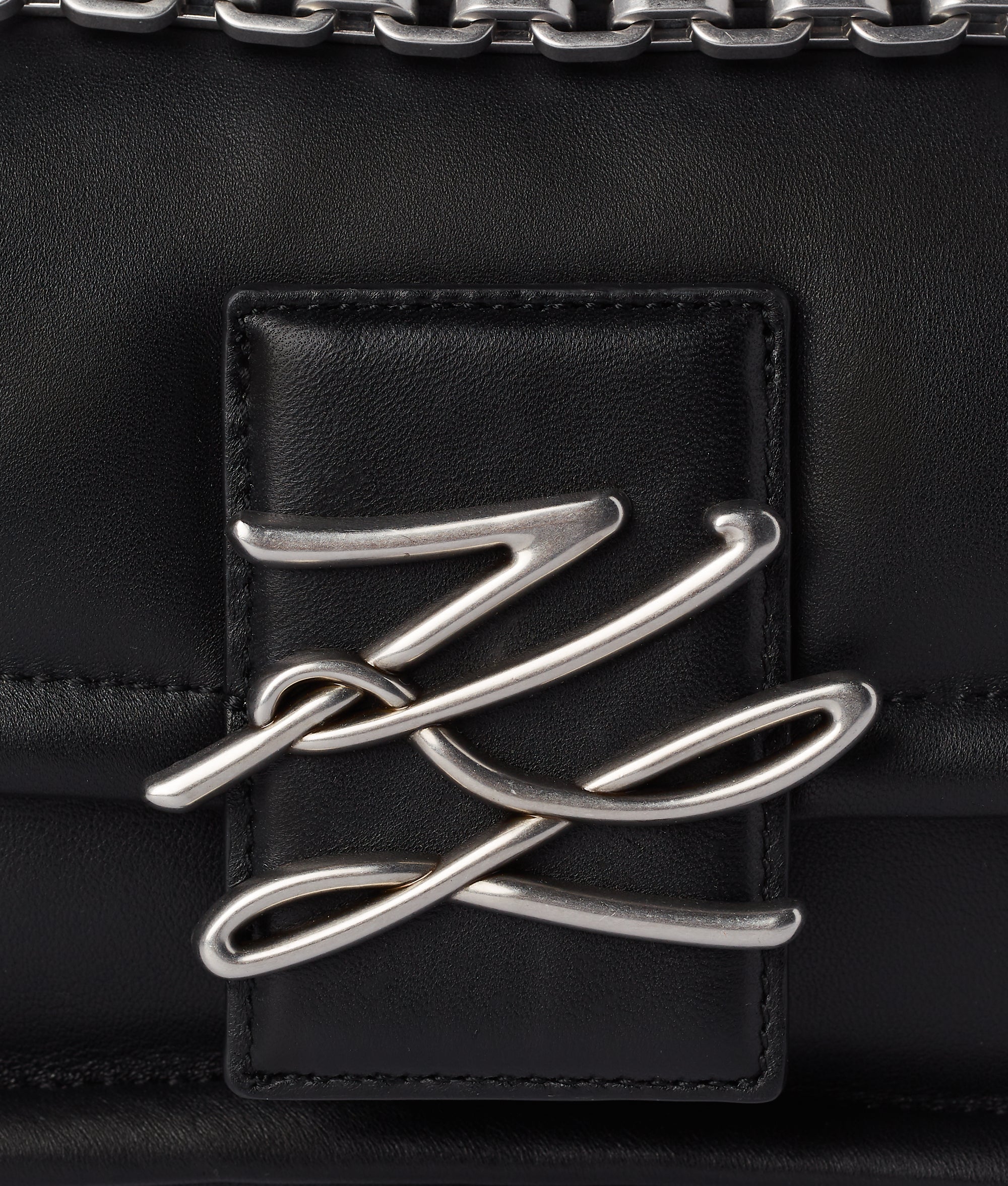 Making its debut, the K/Autograph Soft crossbody bag offers a cushioned silhouette crafted in soft lamb leather. The confident design is enhanced by contrasting chain detailing and the iconic KARL Autograph logo in polished hardware at the front.