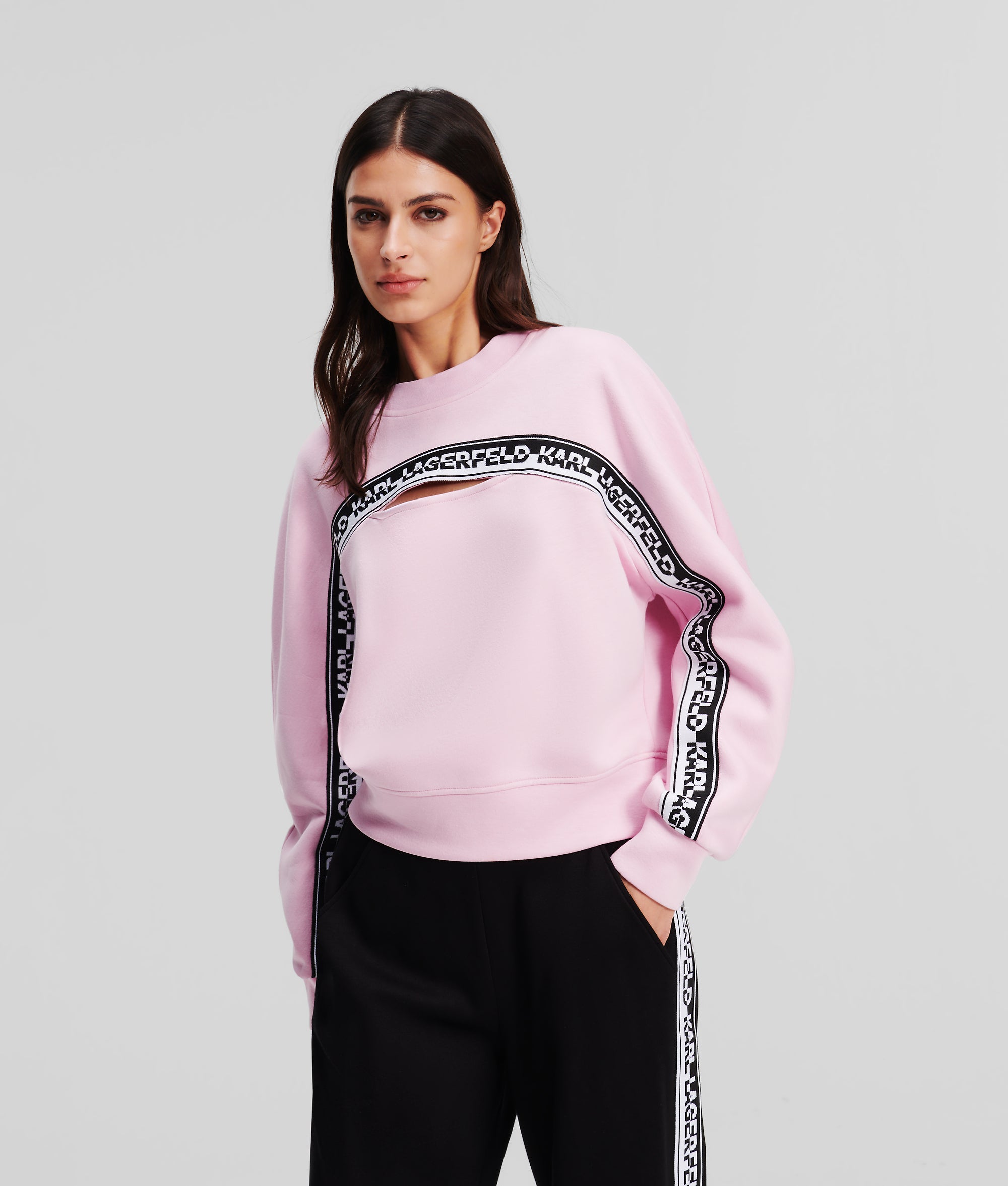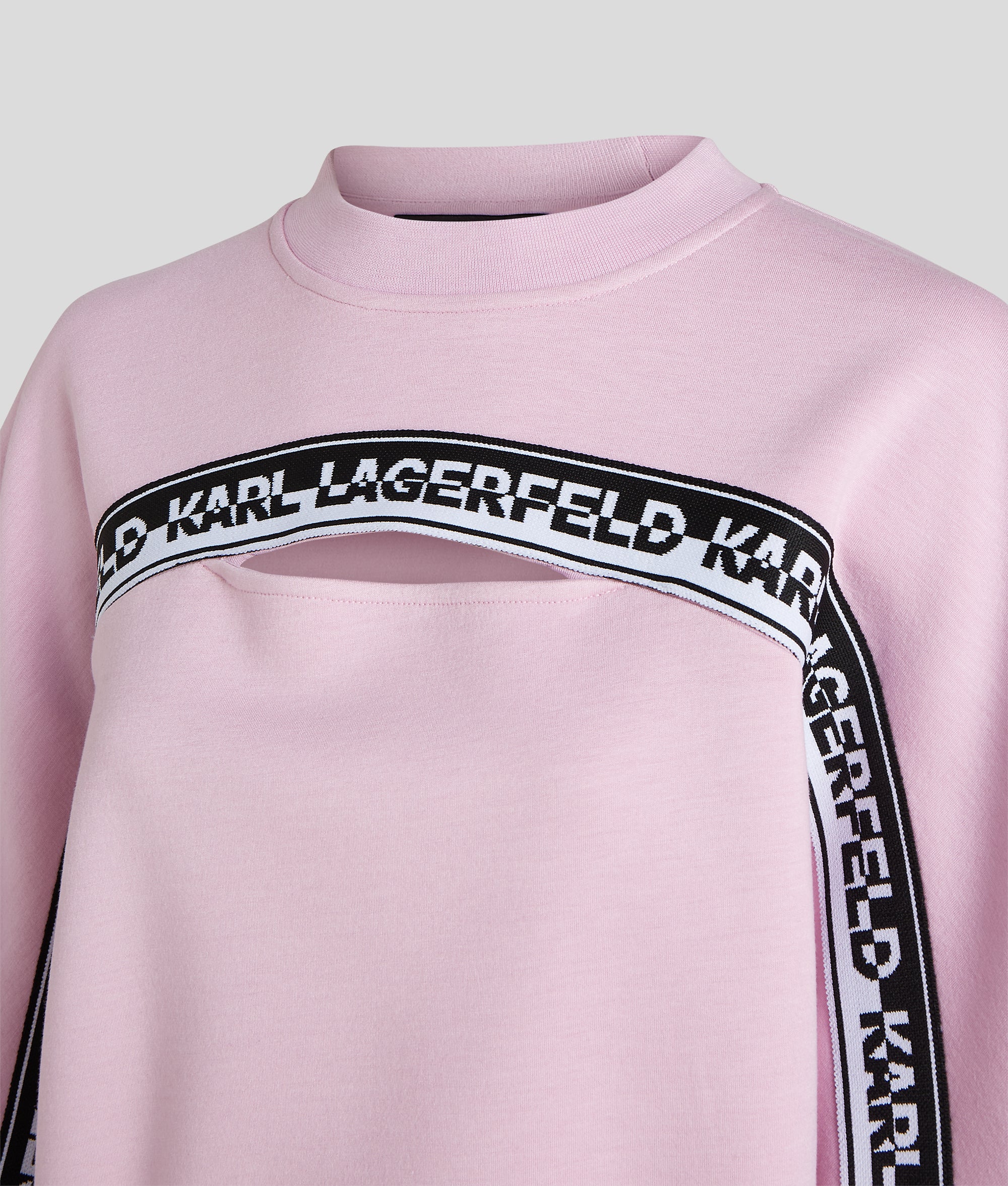 Add a playful yet refined touch to streetstyle looks with this statement sweatshirt. Crafted from ultra-soft bonded viscose, the athleisure favorite features a peephole cut-out at the chest highlighted by boldly contrasting KARL logo tape detailing.