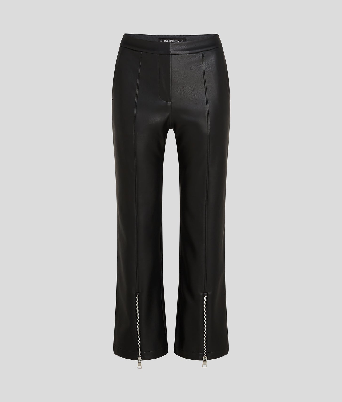 Command attention with these bold faux-leather pants, expertly designed for a rock-chic aesthetic. Practical front and back welt pockets bring style and function, while edgy zipper details at the ankle cuffs add a contemporary finish. Team them with the matching faux-leather gilet for an effortlessly cool, rebellious look.