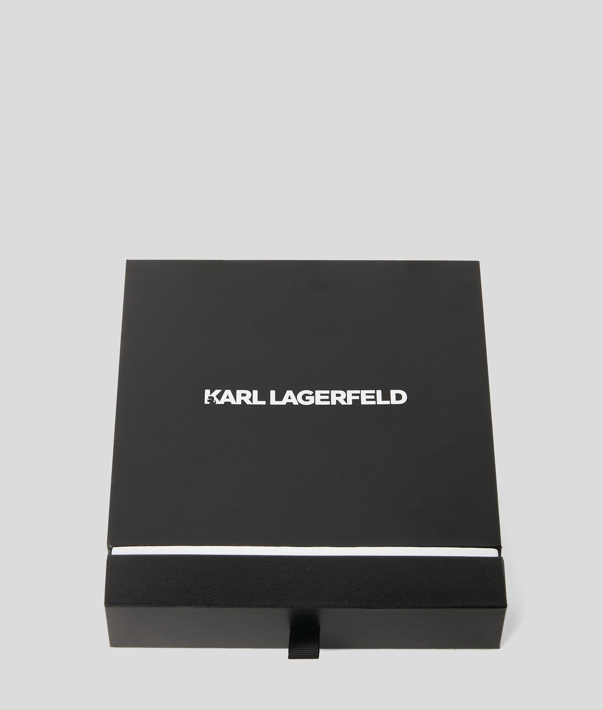 Adorn yourself with this elegant charm necklace, featuring a delicate chain with KARL Signature detailing. The pavé crystal-encrusted IKON charm adds a playful touch, while an adjustable lobster clasp fastening ensures a perfect fit.