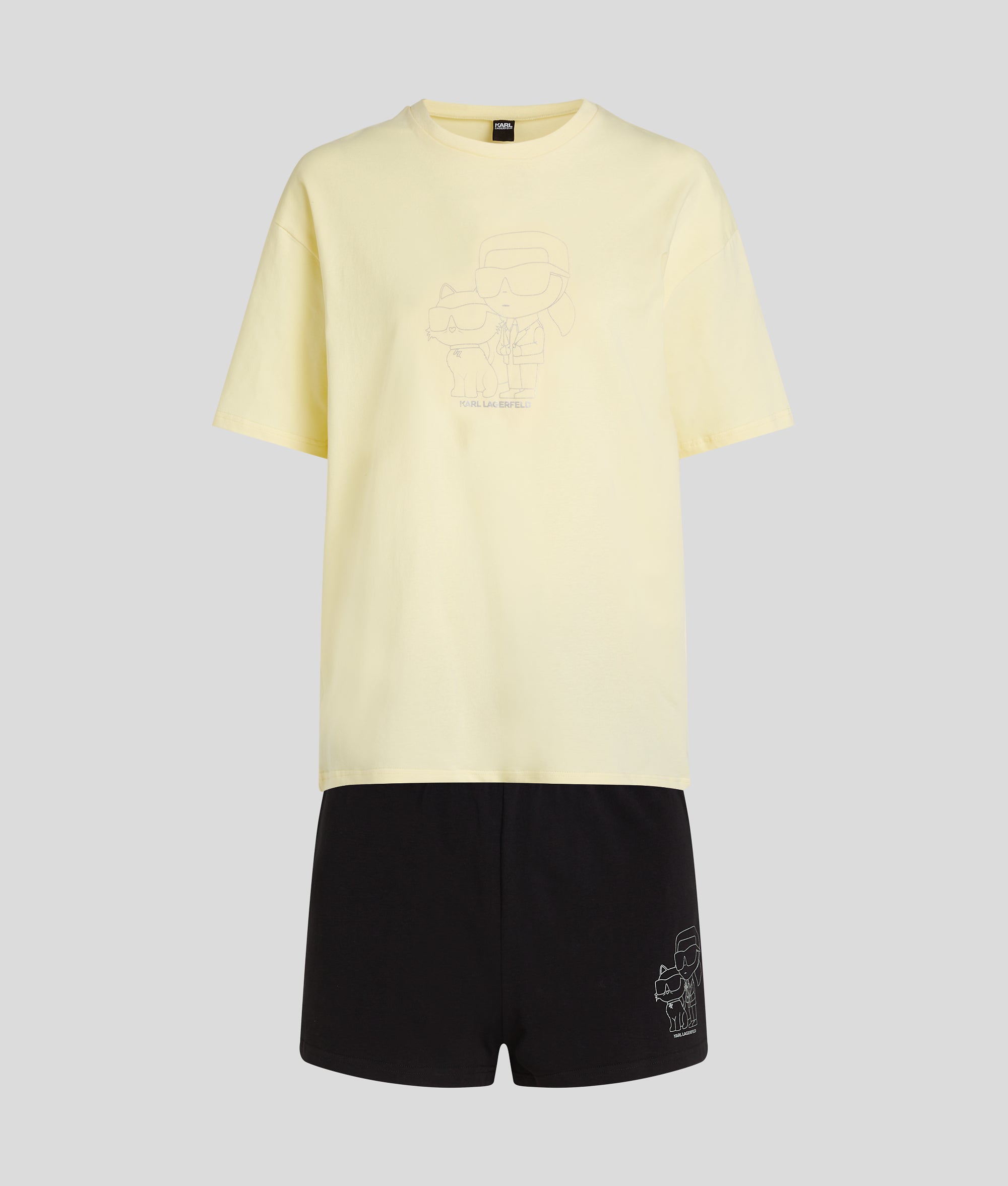A playful addition to any wardrobe, this organic cotton sleepwear set balances comfort with statement KARL style. The classic crew-neck T-shirt, adorned with IKON Karl and Choupette artwork, coordinate effortlessly with the elasticated-waist shorts for a luxurious night-time pairing.