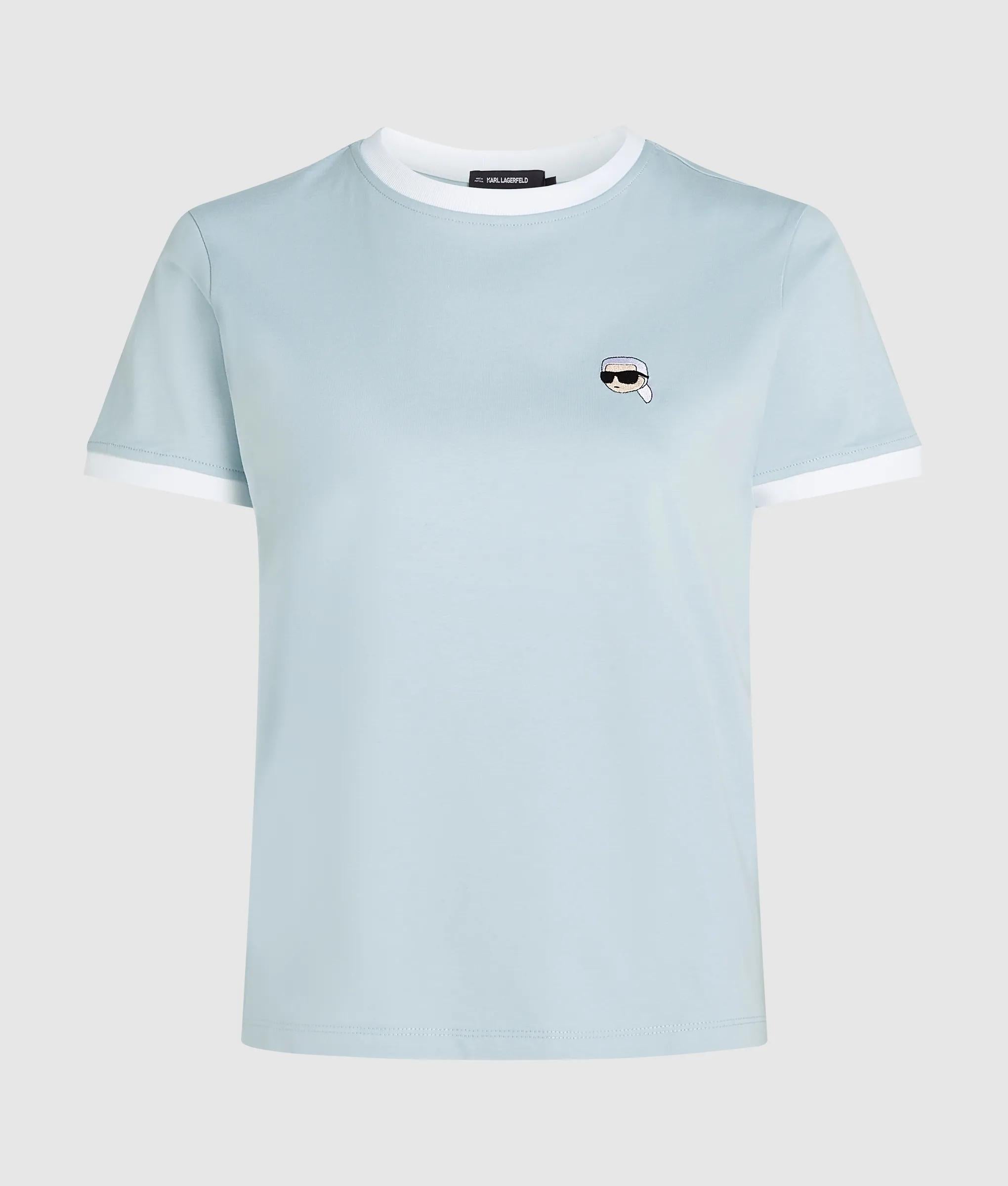 Elevate your casual wardrobe with this organic cotton T-shirt featuring a classic crew neck and short sleeves. The contrast piping adds a modern twist, while an embroidered Ikon patch at the chest brings a playful finish. Perfect for effortless everyday wear.