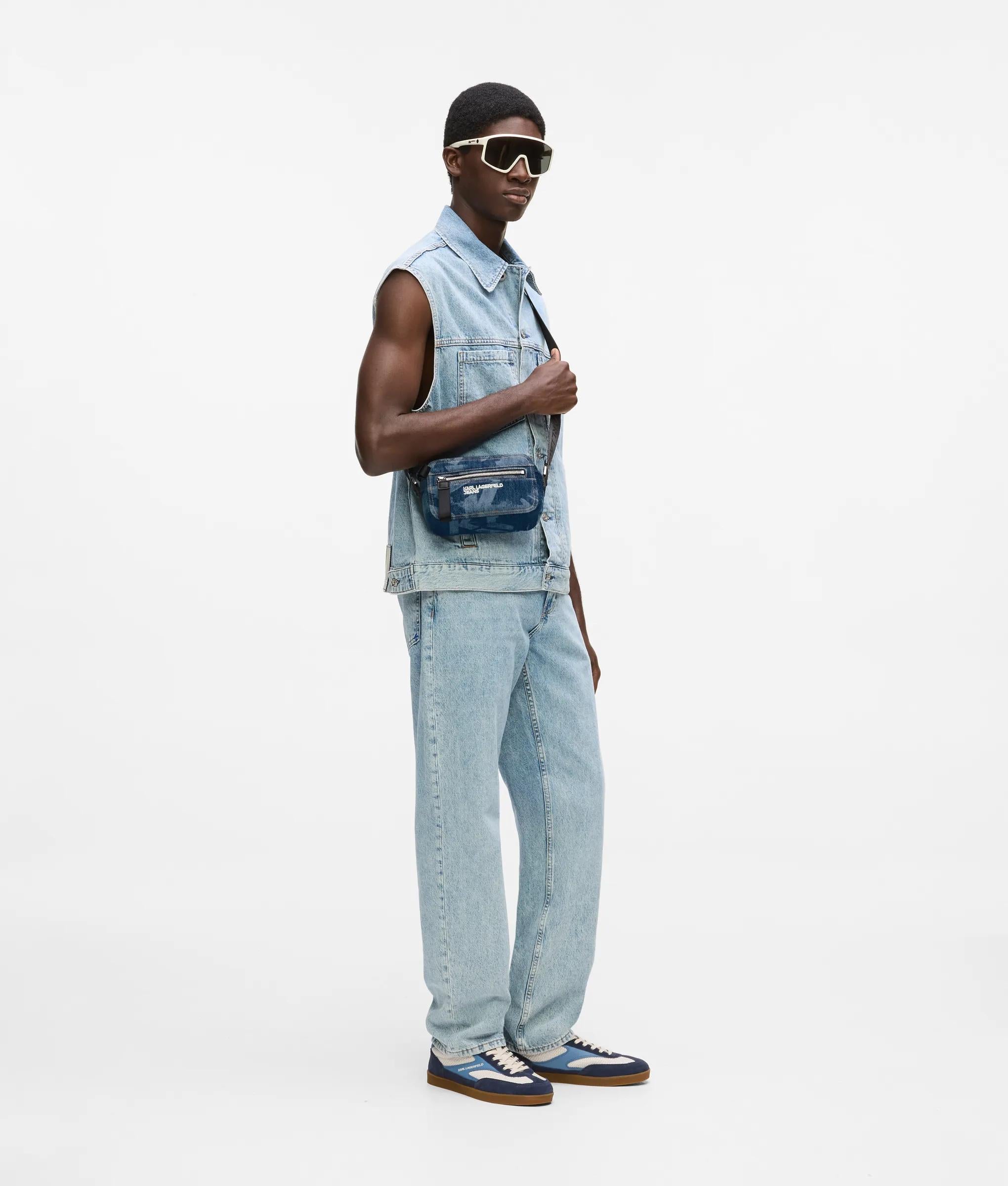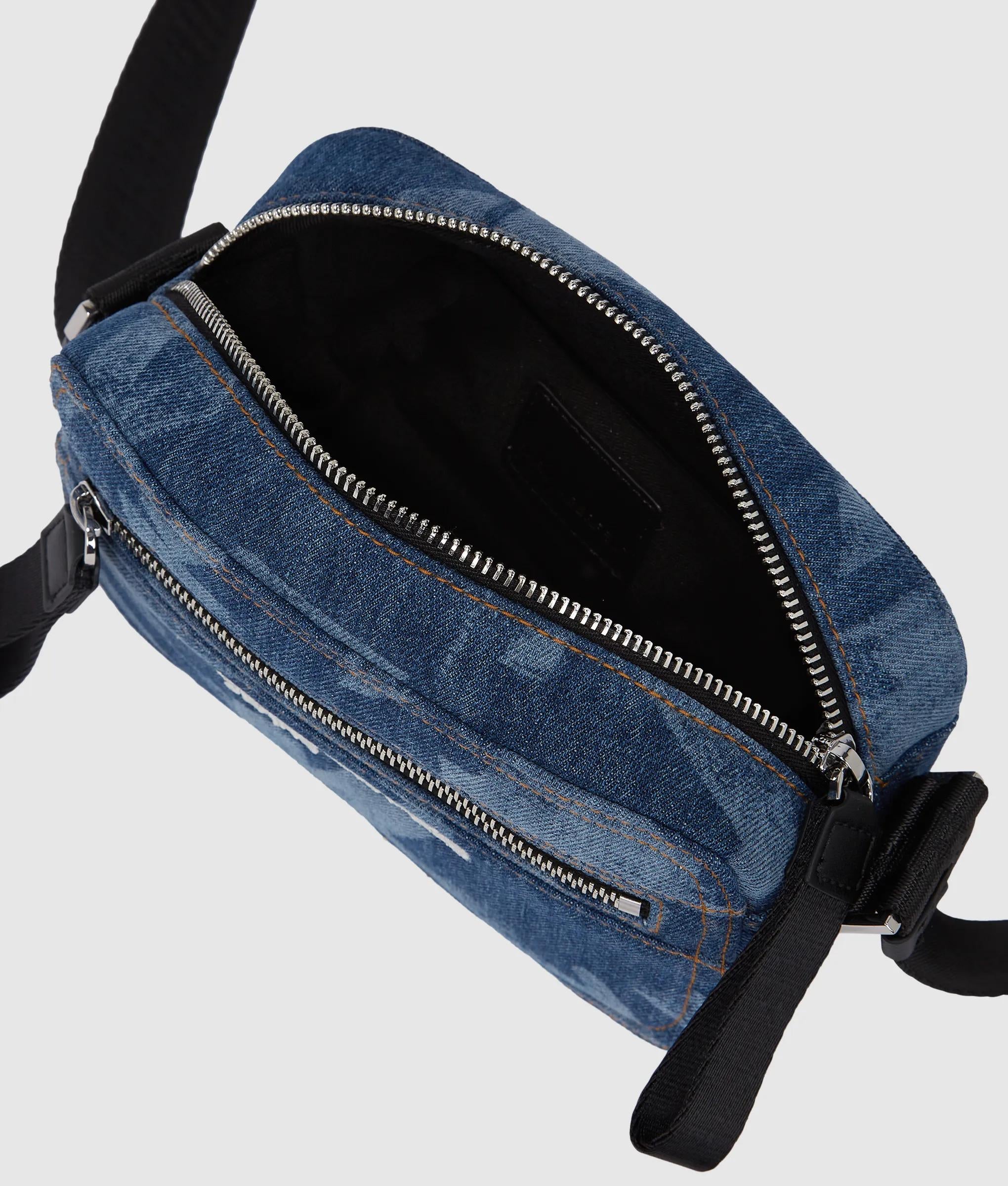 Monogram denim camera bag