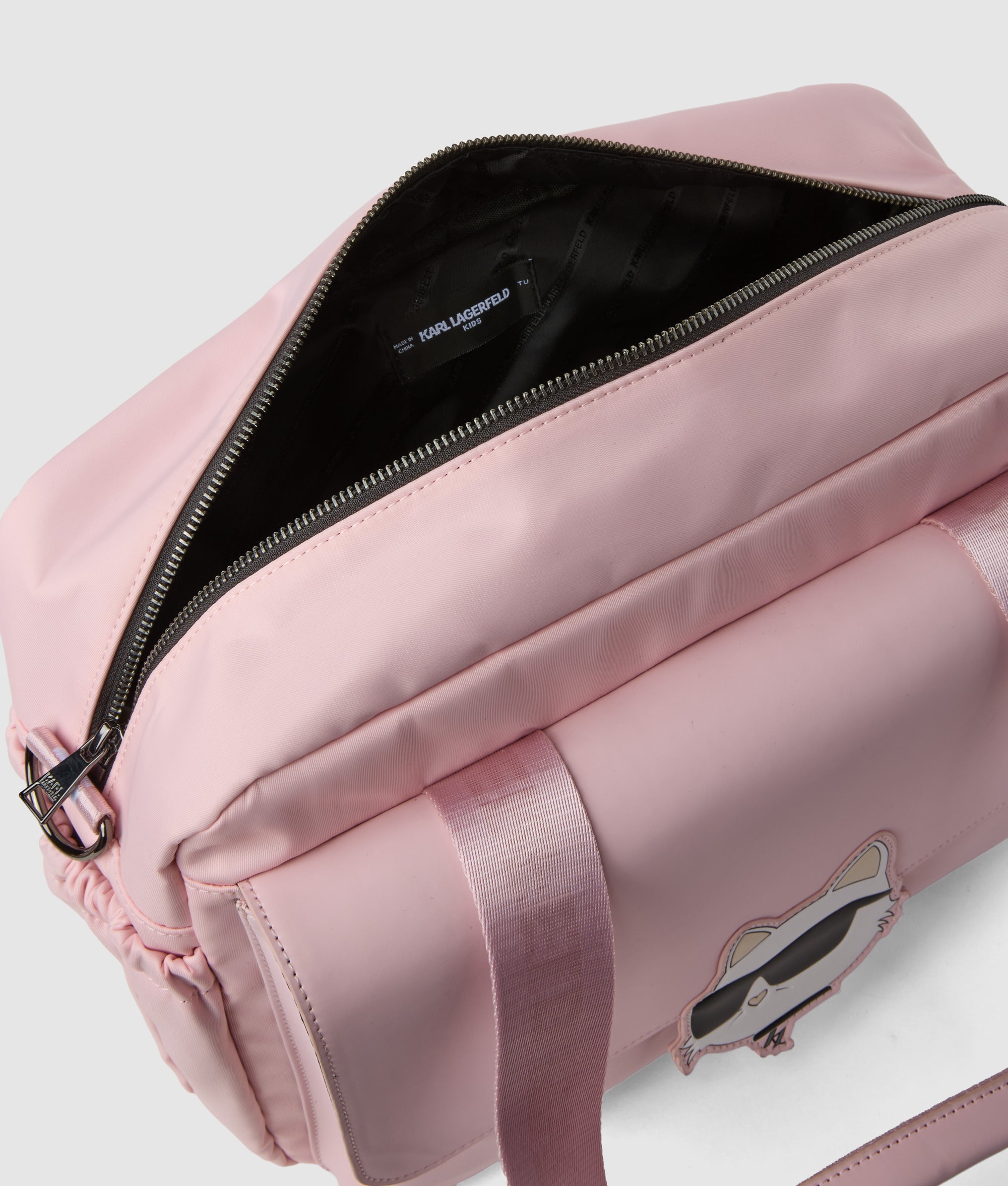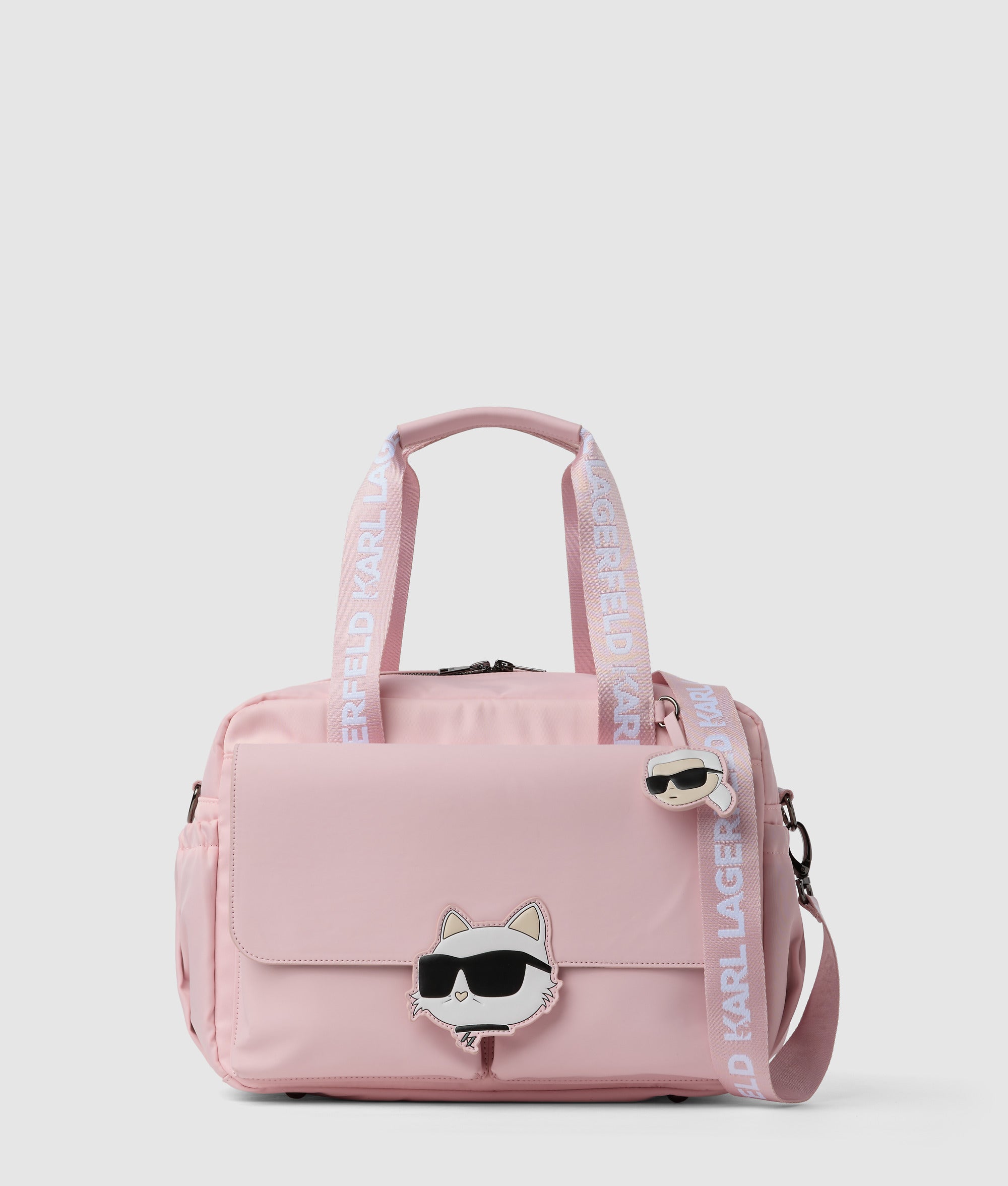 Polish meets practicality in this diaper bag. An interchangeable crossbody strap and stroller clips free up your hands, while multiple pockets keep essentials organized. Ikon Karl and Choupette charms add a playful finish.