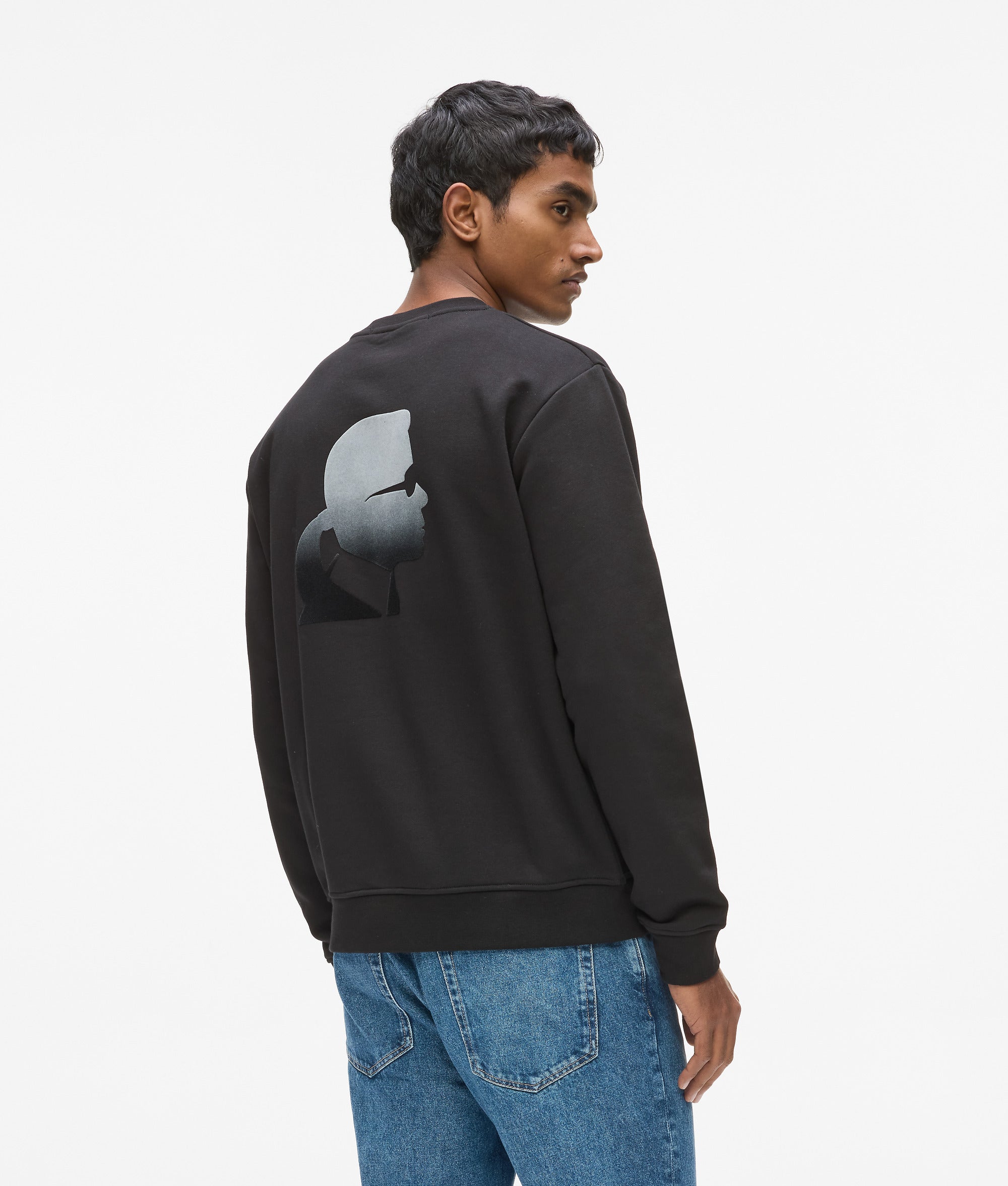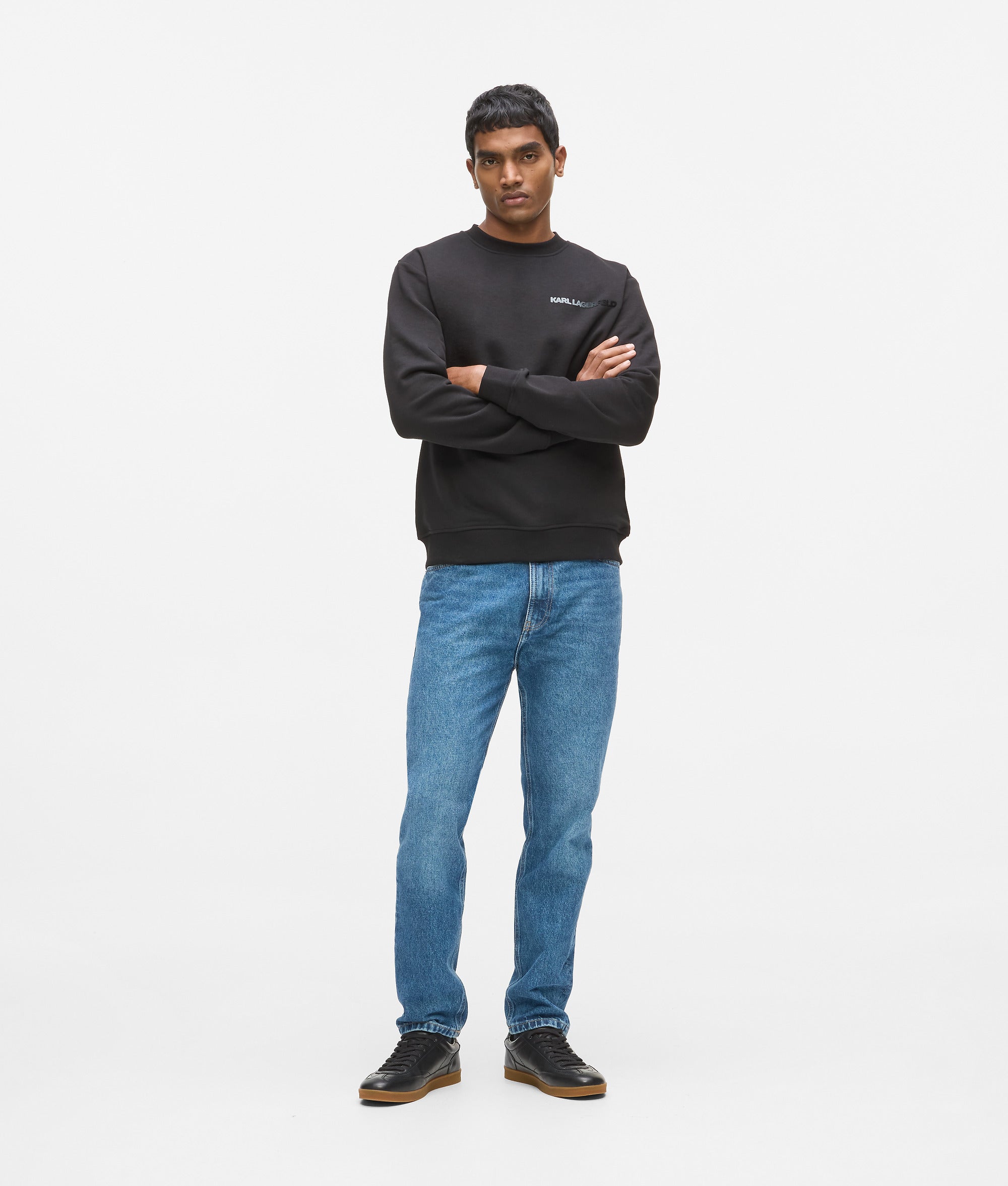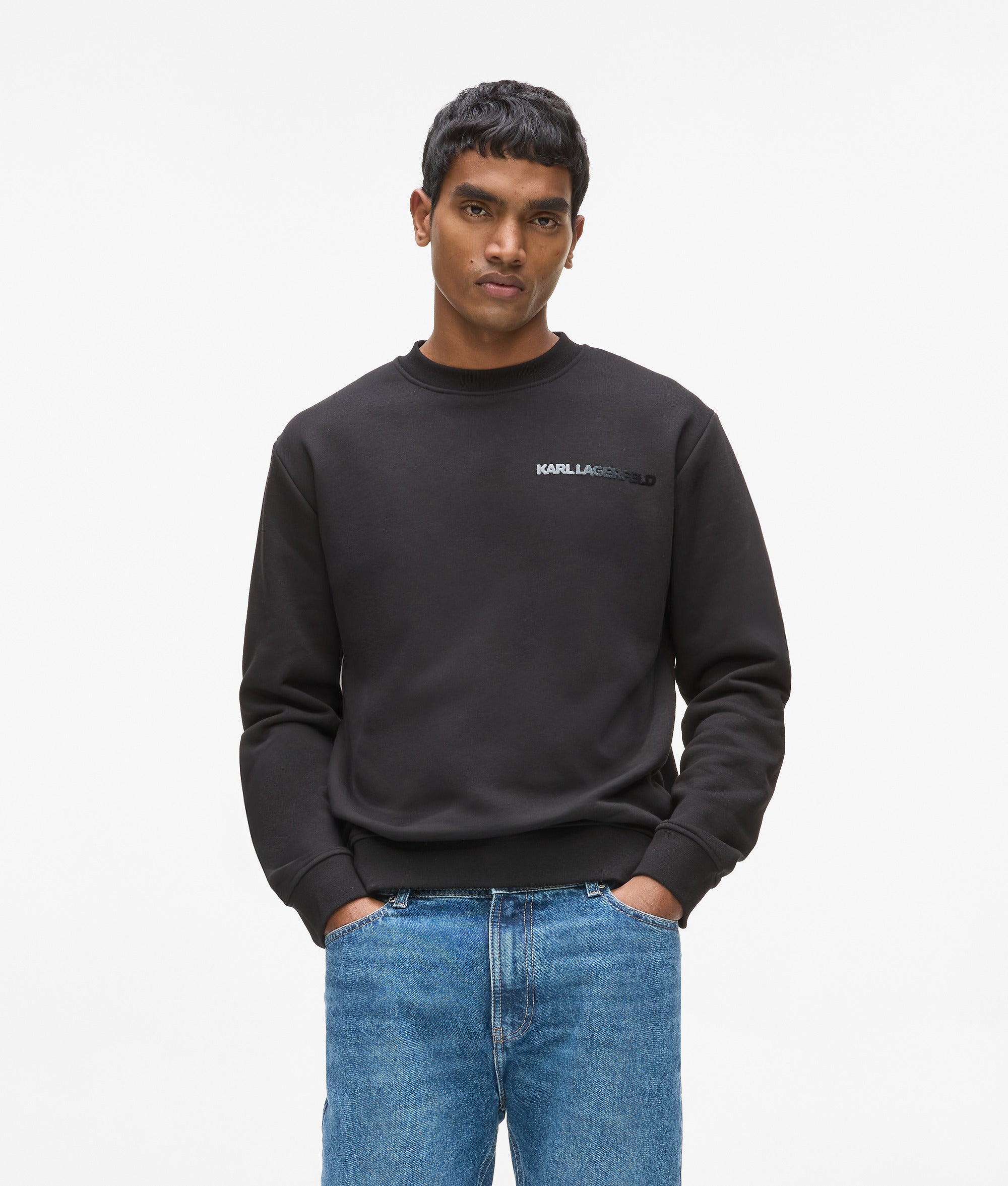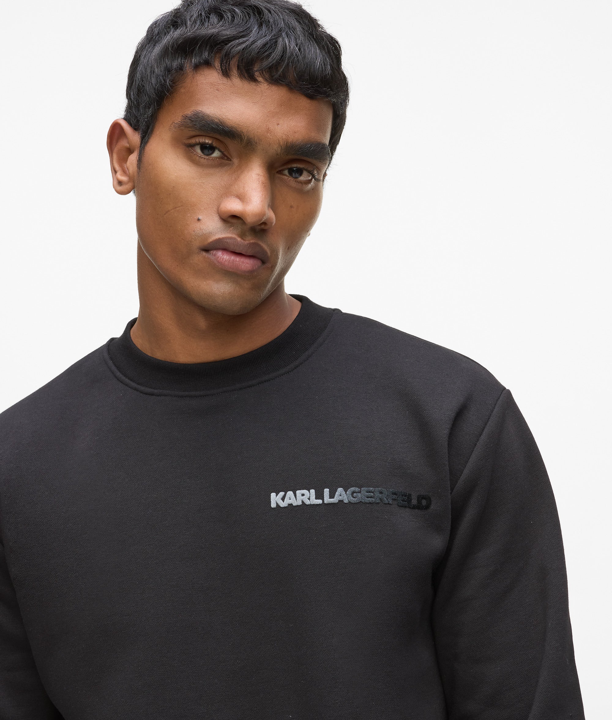 This crew-neck sweatshirt is topped with a velvet, gradient-effect Karl Lagerfeld logo across the chest, adding texture and depth to a casual favorite.