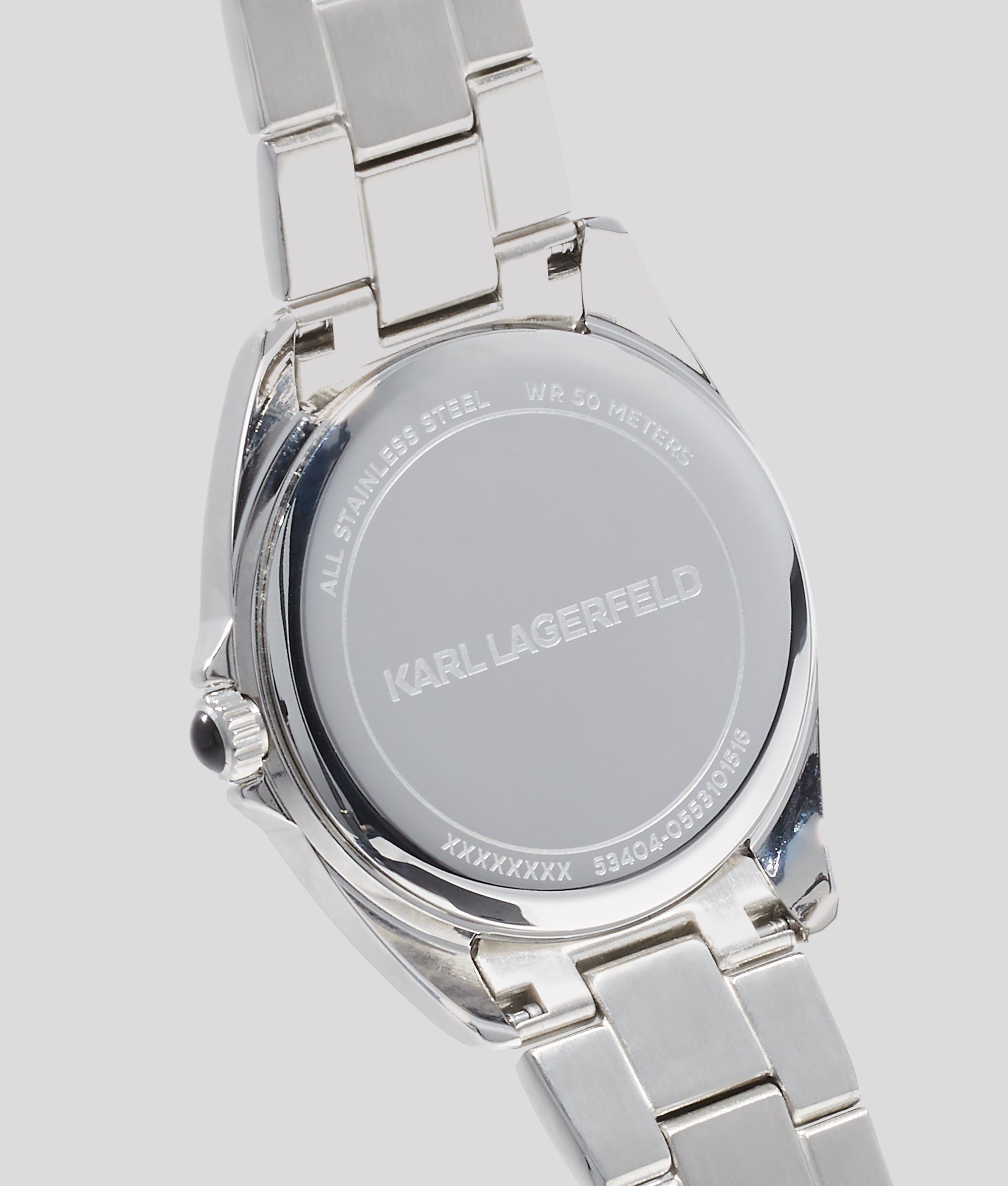 This two-piece watch and bracelet set combines statement style and versatility for a perfect gifting option. The watch features a polished silver strap and dazzling IKON artwork at the dial. Paired with a matching bracelet that exudes playful elegance with its IKON Karl and Choupette charms, this duo is designed to be worn together for a coordinated look - or separately, for effortless styling.