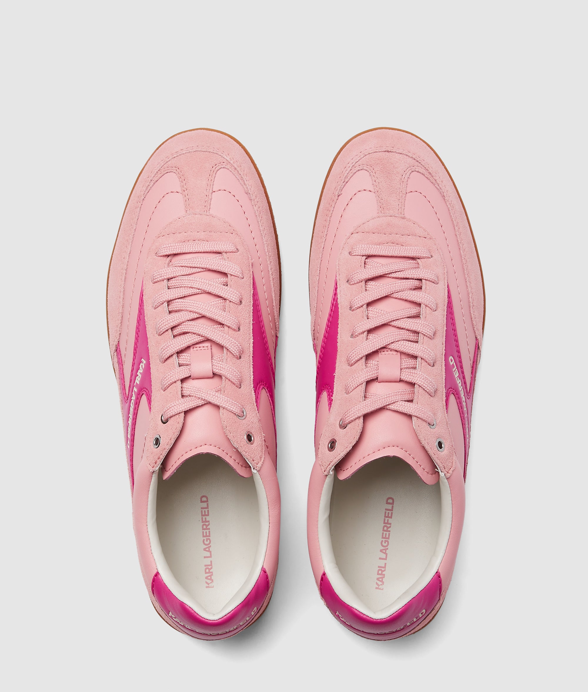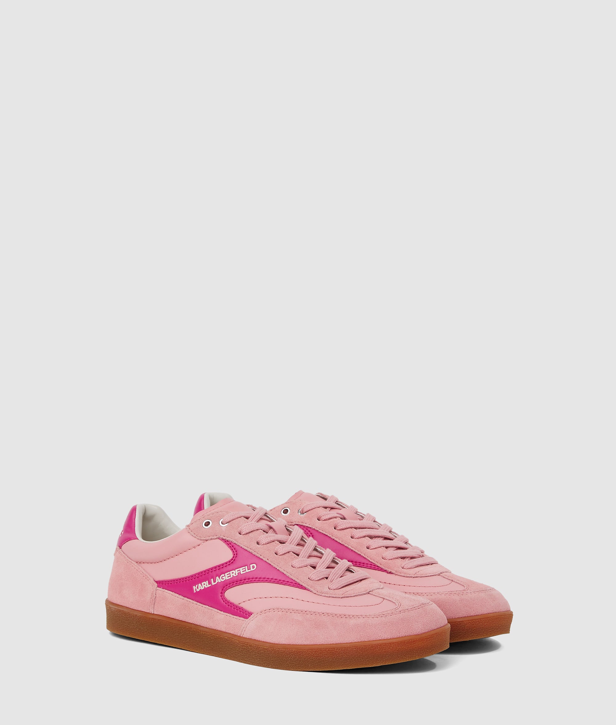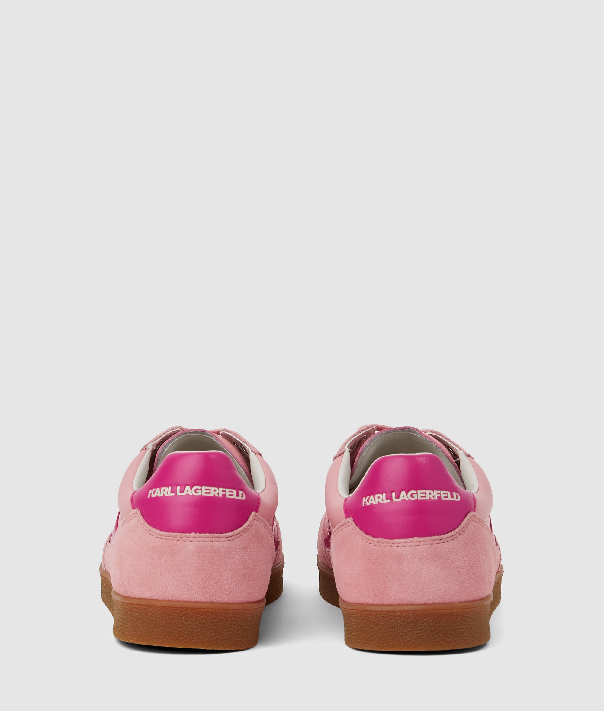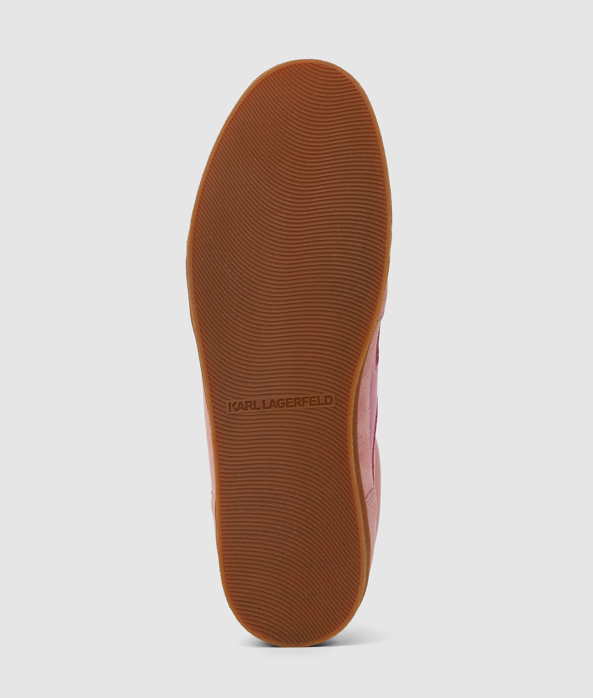 Step up your footwear with these sports-inspired sneakers, featuring a mixed leather and suede paneling fabrication for a luxurious yet athletic look. The lace-up design ensures a secure and comfortable fit, while the contrasting heel counter with the statement KARL LAGERFELD logo adds a striking detail.