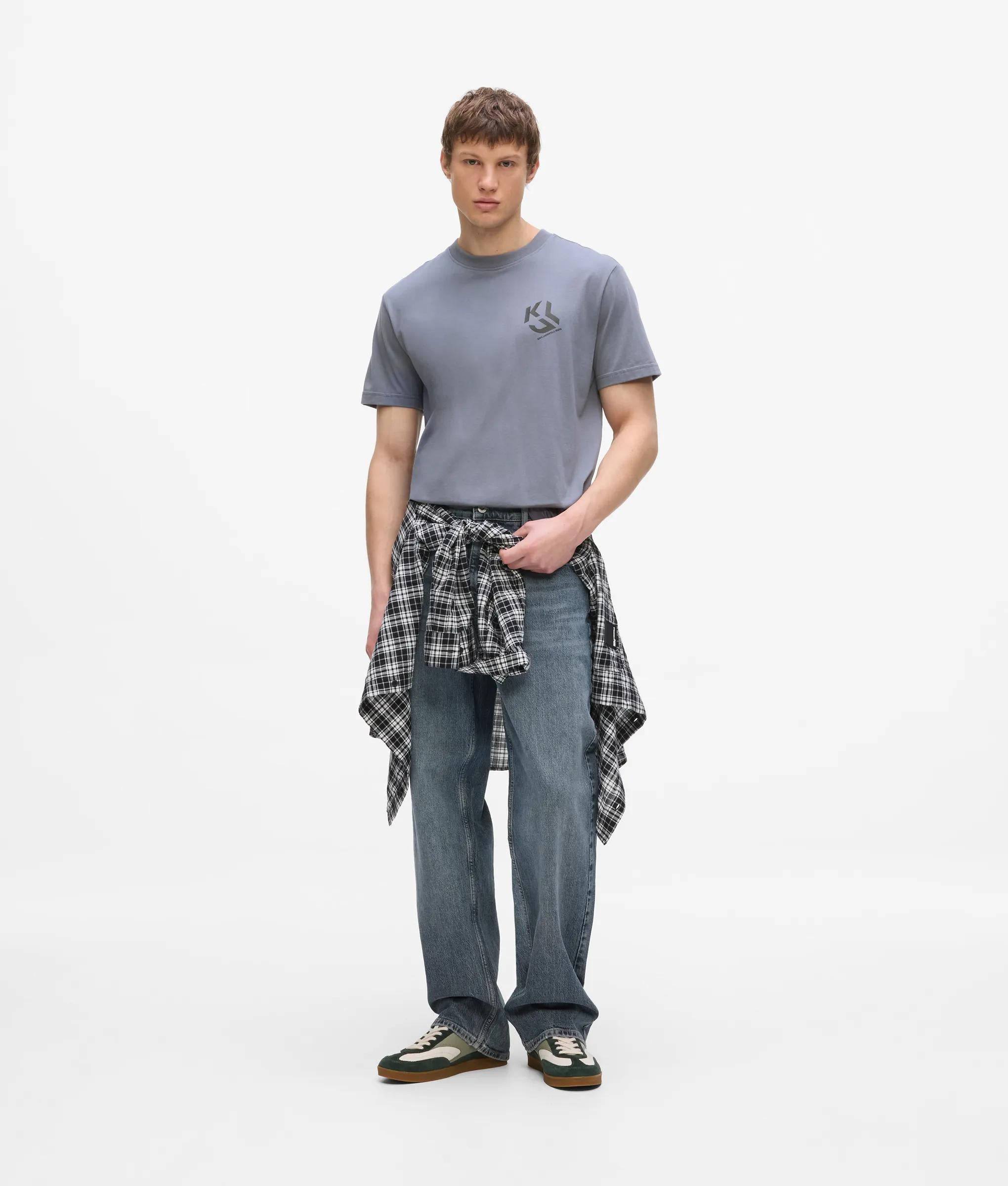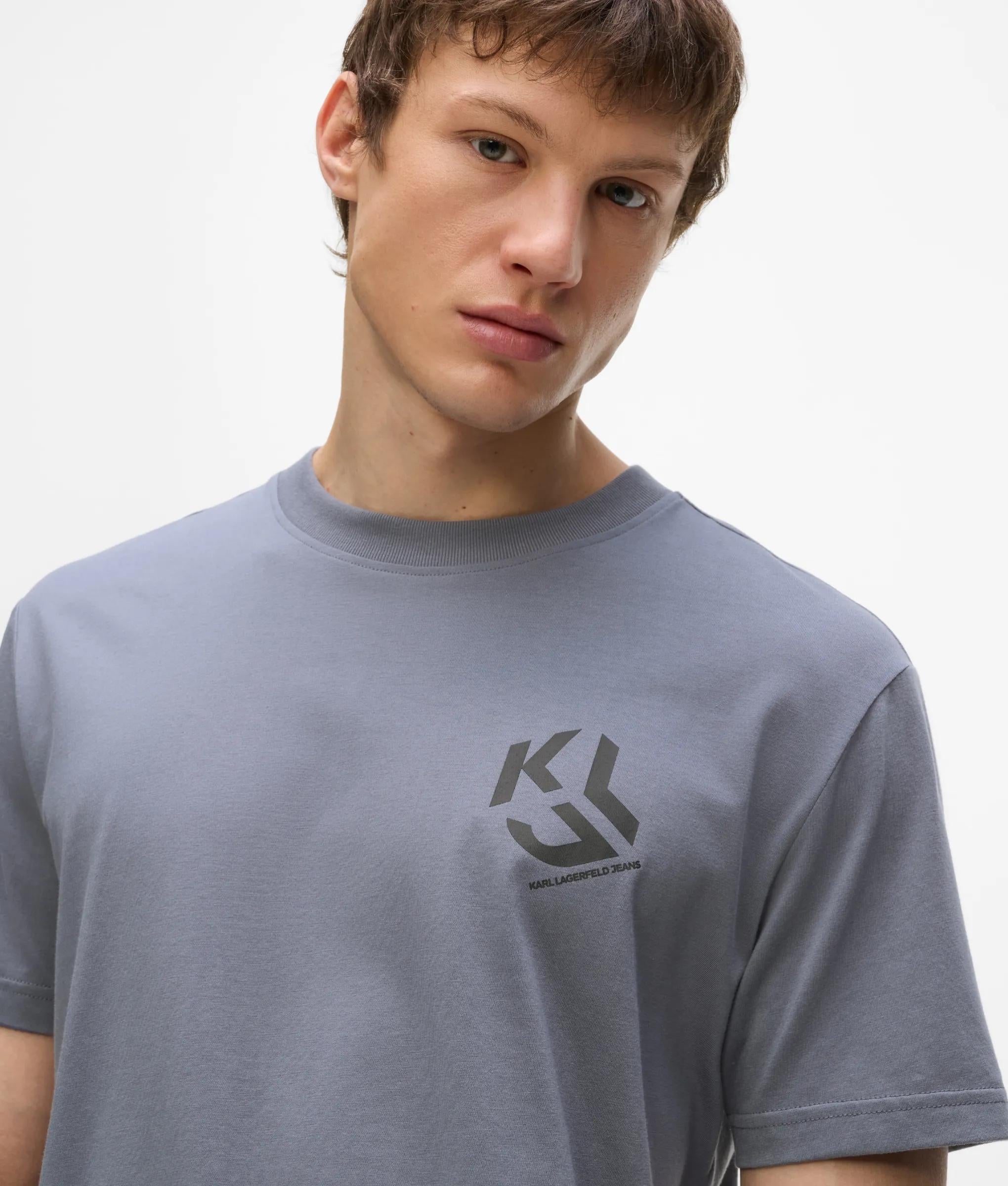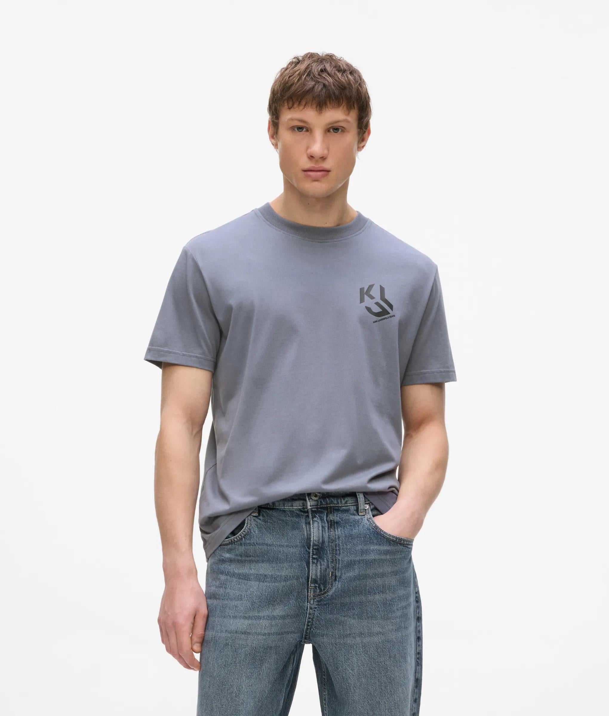 For casual vibes, this crew neck T-shirt offers a regular silhouette with bold KLJ Monogram artwork at the chest, turning this wardrobe classic into a standout piece. Short sleeves and a subtle KARL LAGERFELD JEANS logo complete the look.