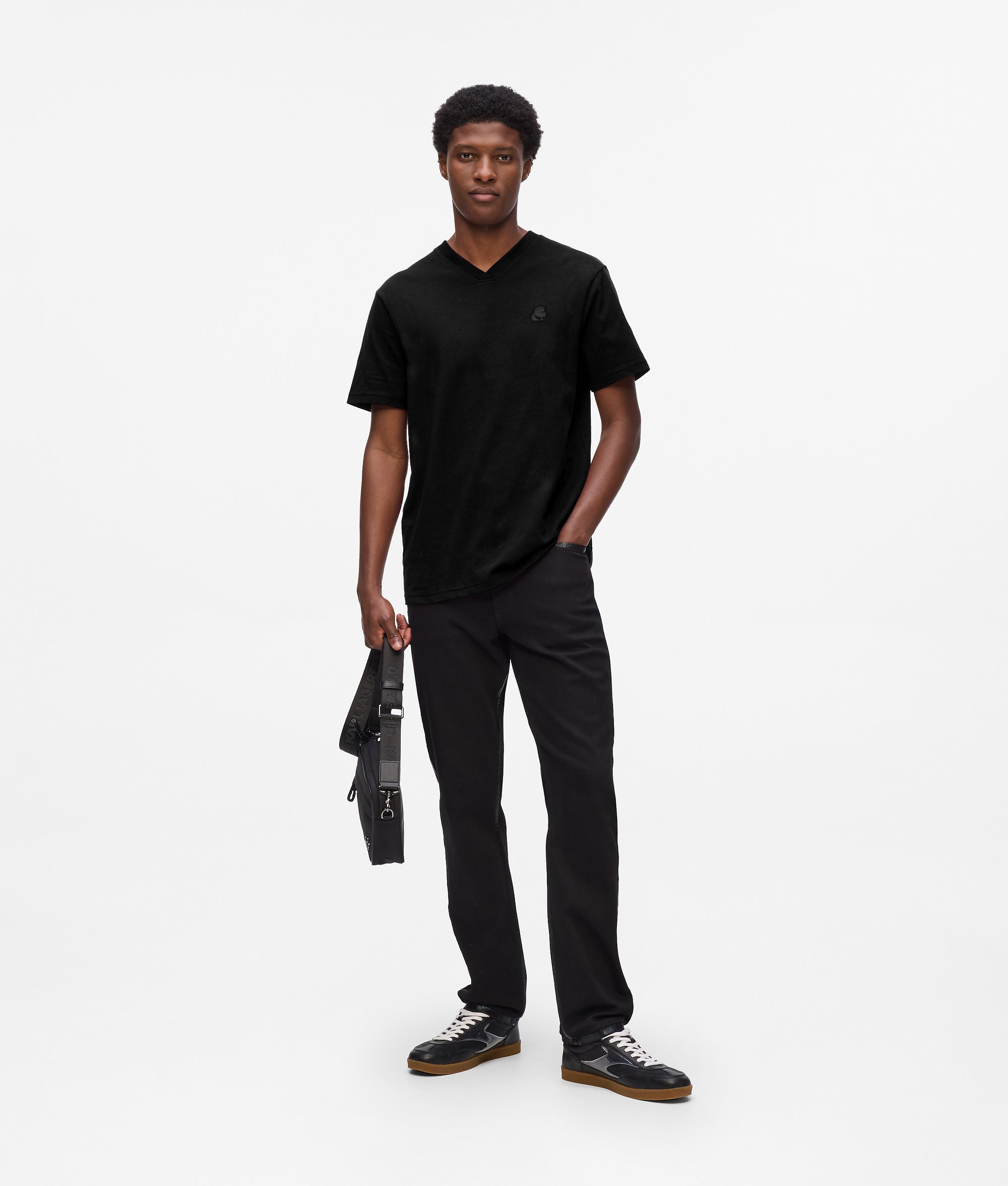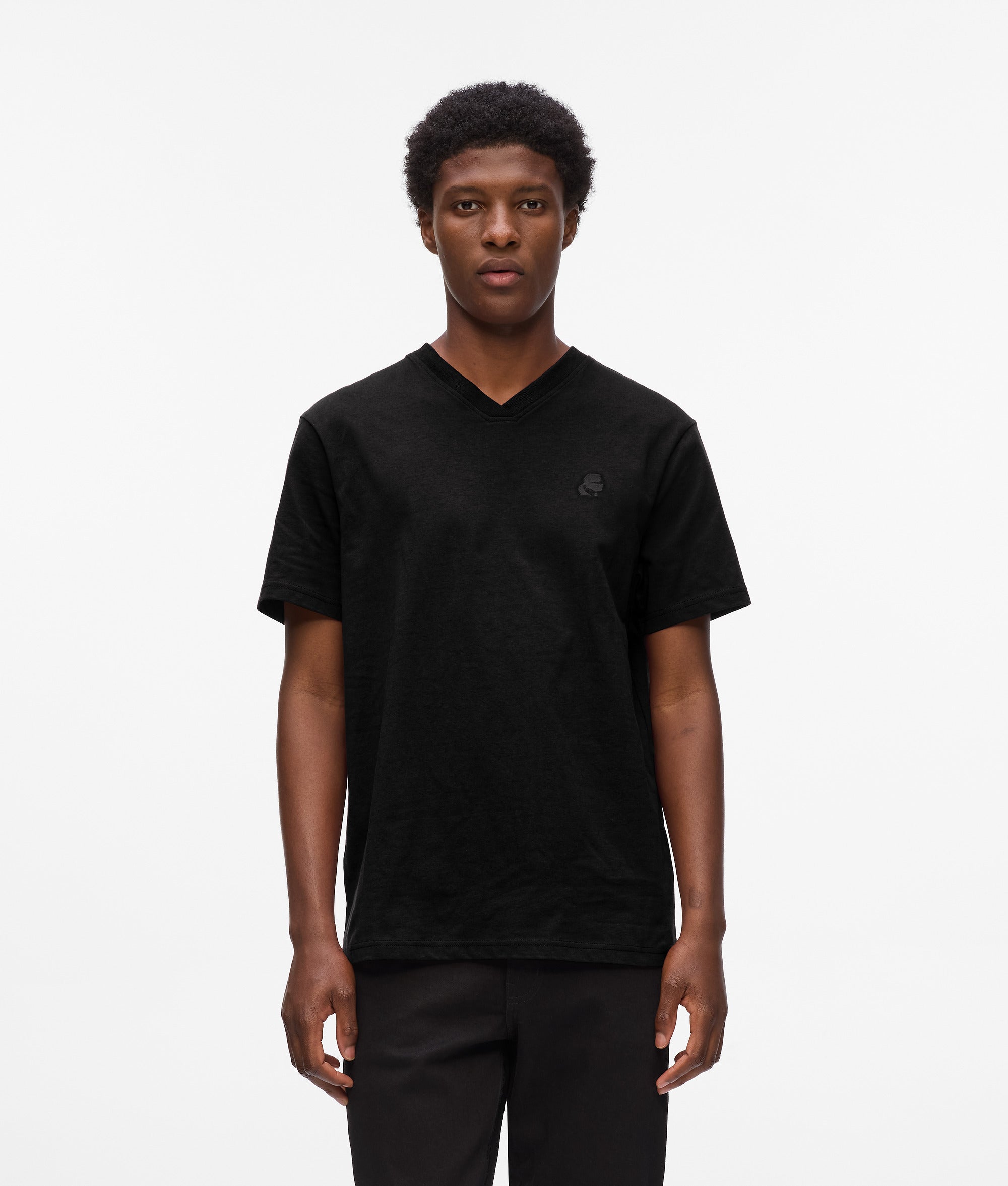 This T-shirt exudes sophistication through its refined V-neck silhouette. The clean, modern silhouette is enhanced by subtle Karl Kameo embroidery at the chest and KARL LAGERFELD logo detail at the back hem. Crafted for versatility, it pairs seamlessly with polished and casual looks.