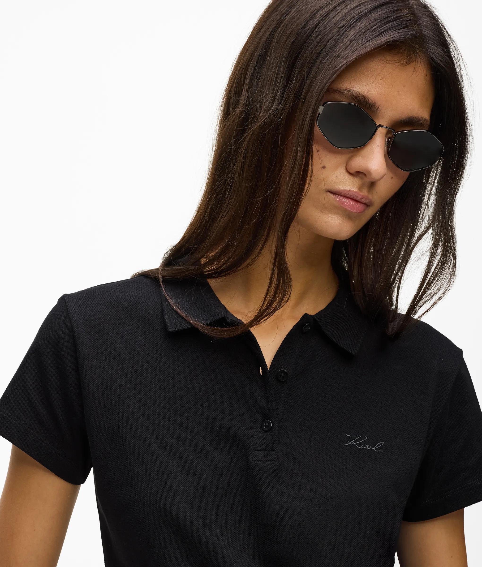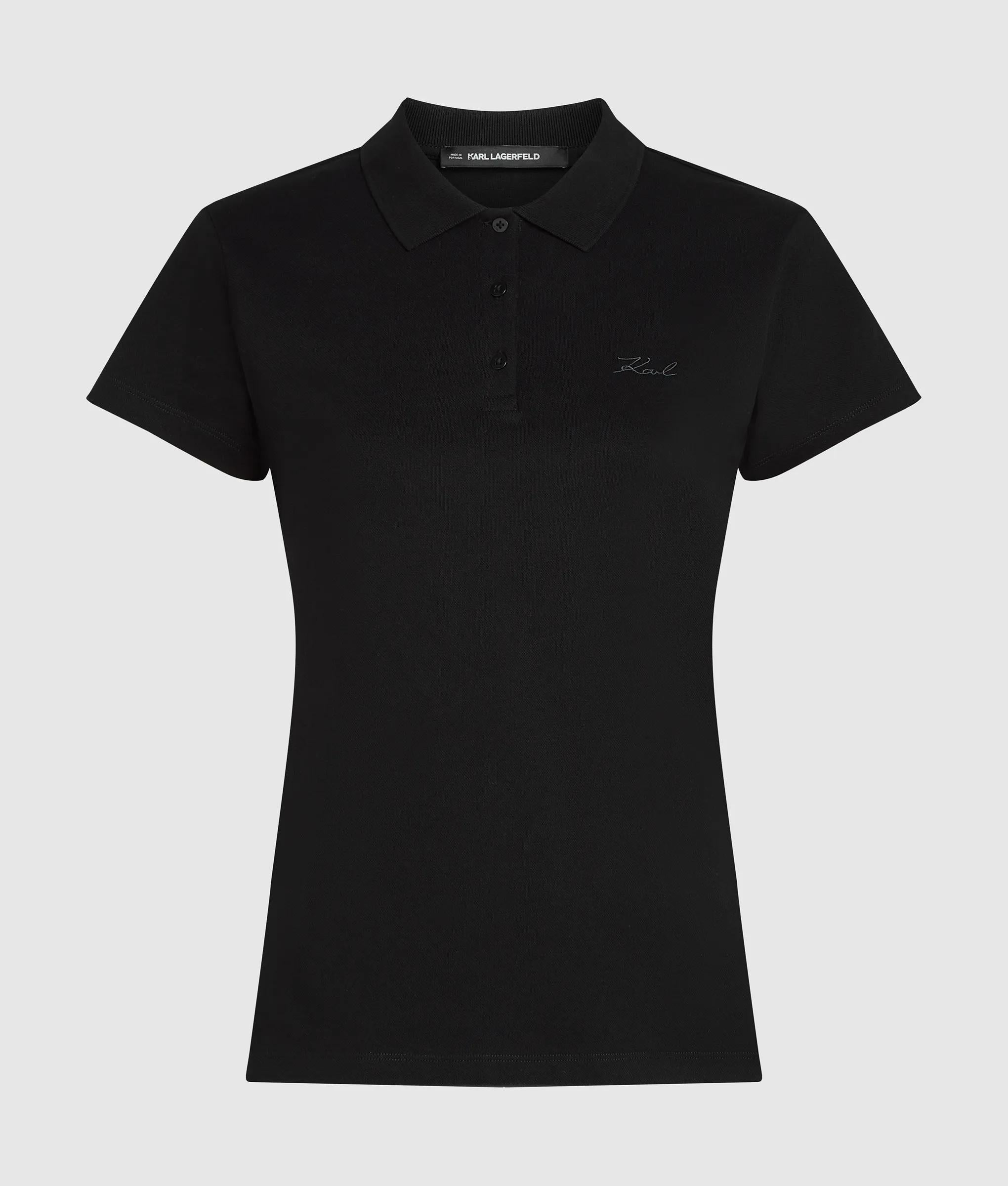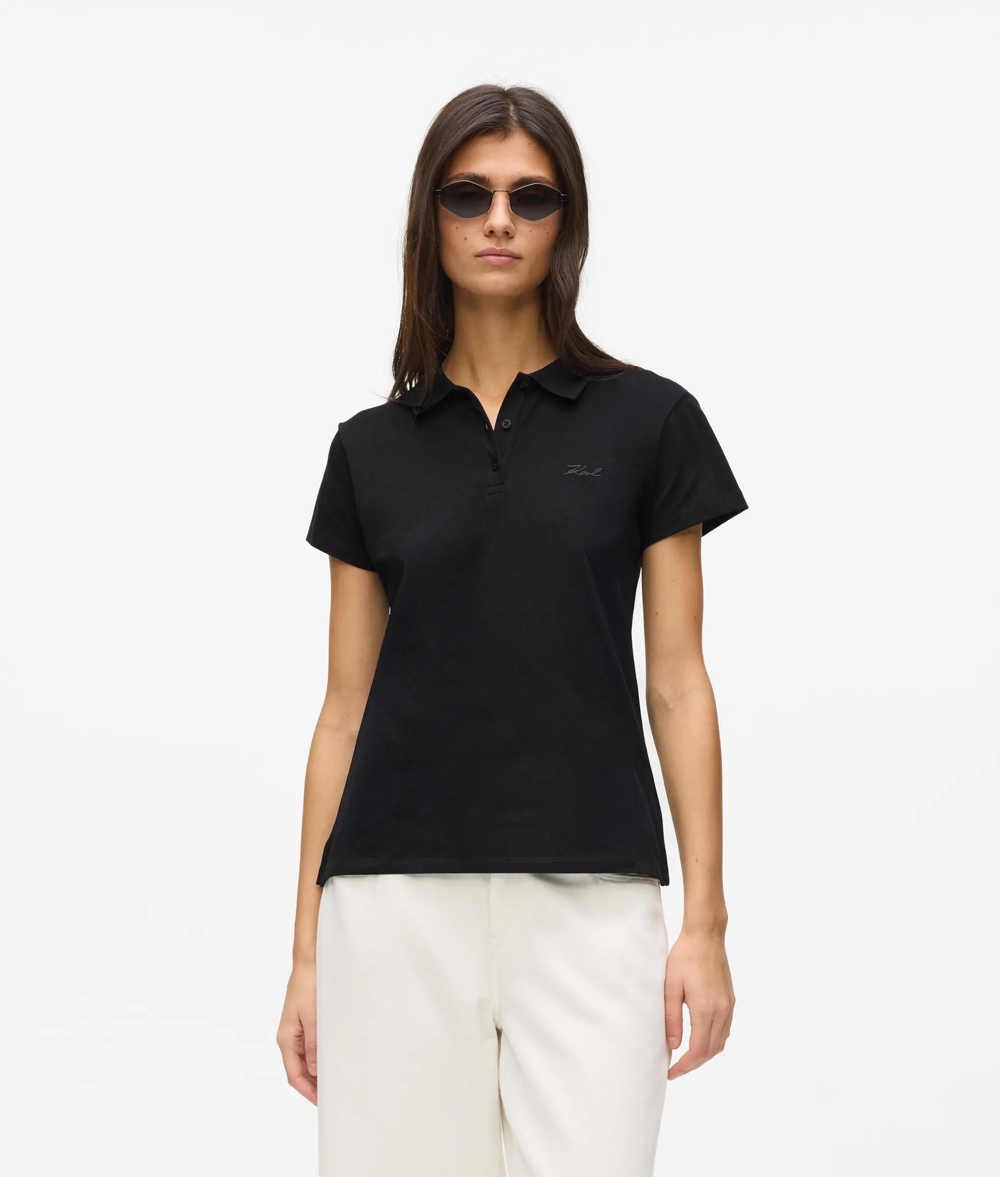 A textured piqué polo shirt shaped for a refined fit. The soft organic cotton blend offers breathable comfort while tonal Signature embroidery adds subtle detail.