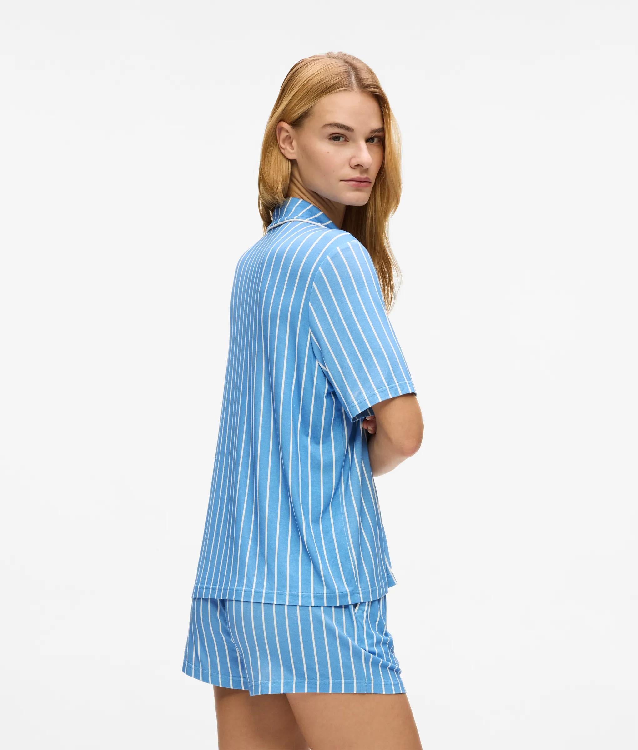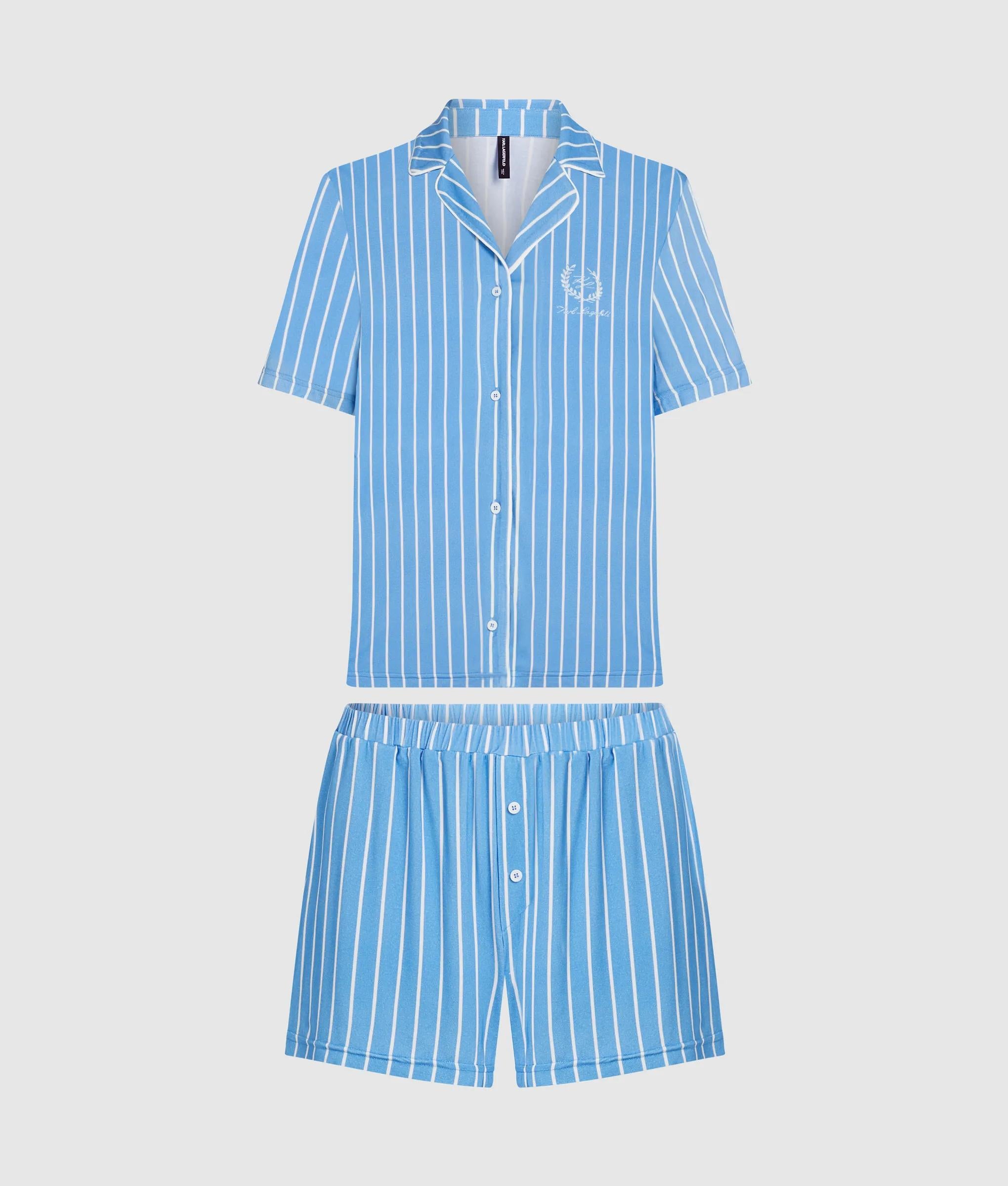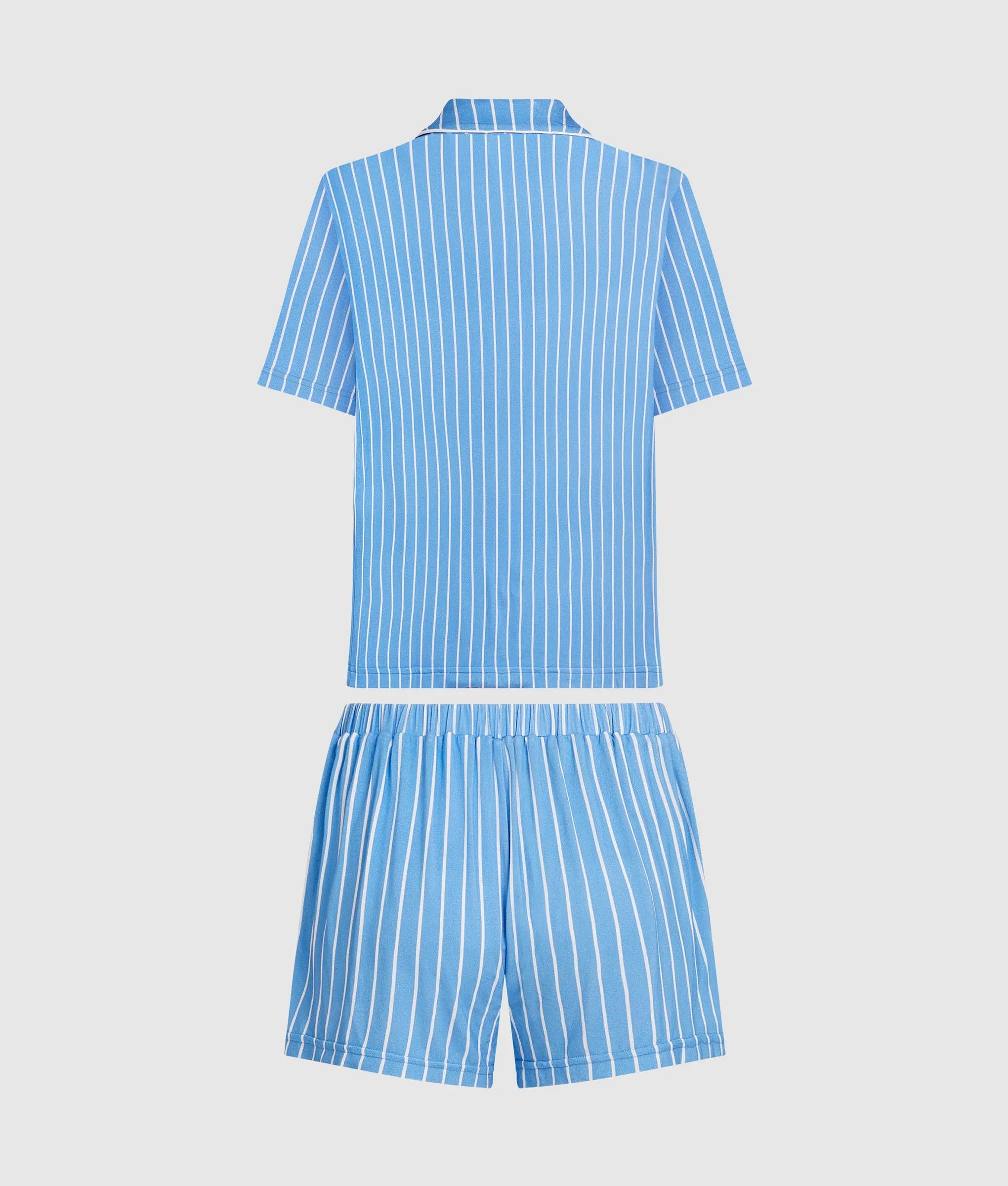 Quietly refined, this classic striped pajama set brings sophisticated ease to your downtime. The short-sleeved shirt pairs with elasticated-waist shorts for a relaxed yet polished fit — perfect for laid-back moments.