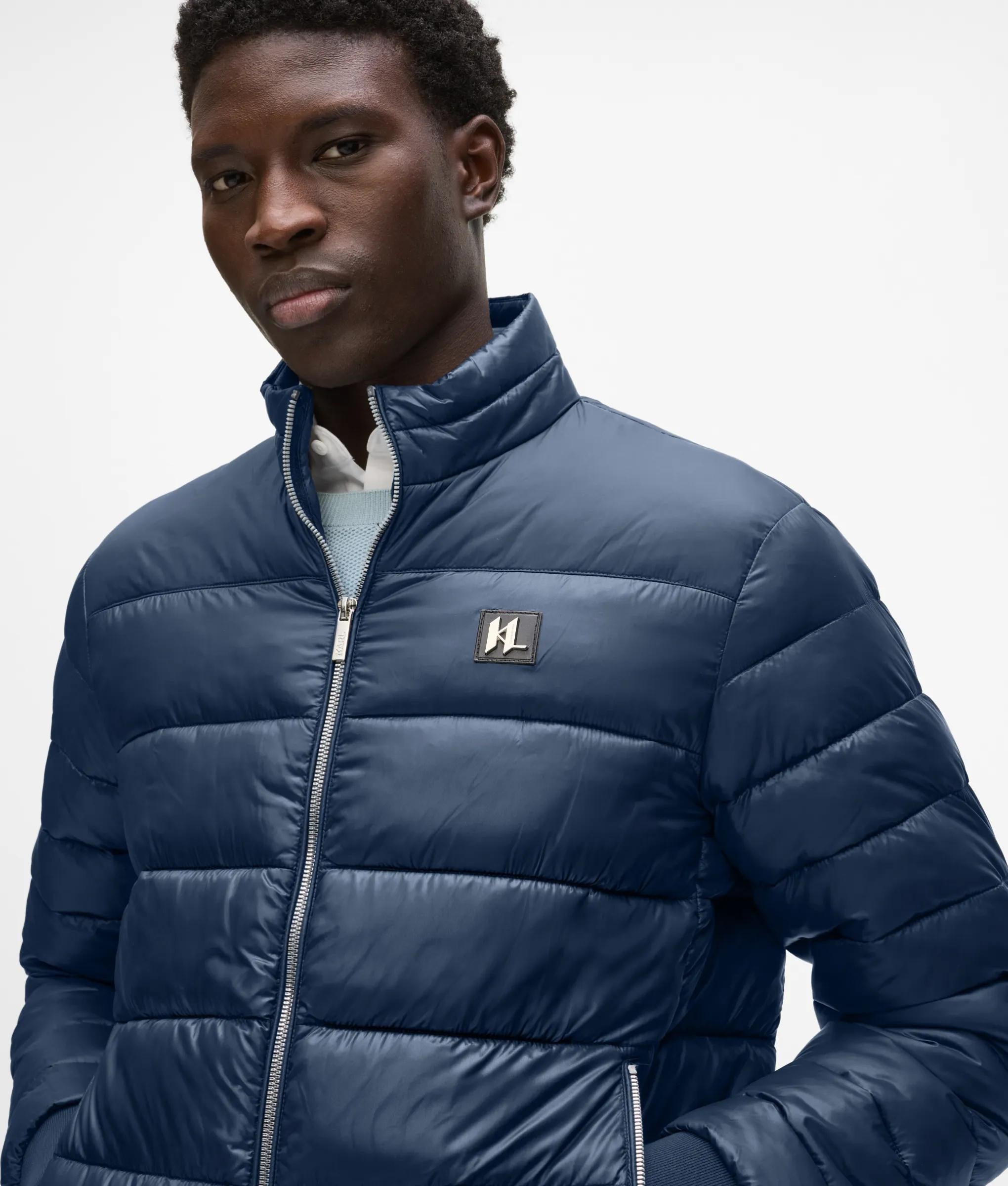 Glide through crisp days in this lightweight puffer jacket, where water-resistant padding meets a high neck and ribbed cuffs for a sleek approach to layering.