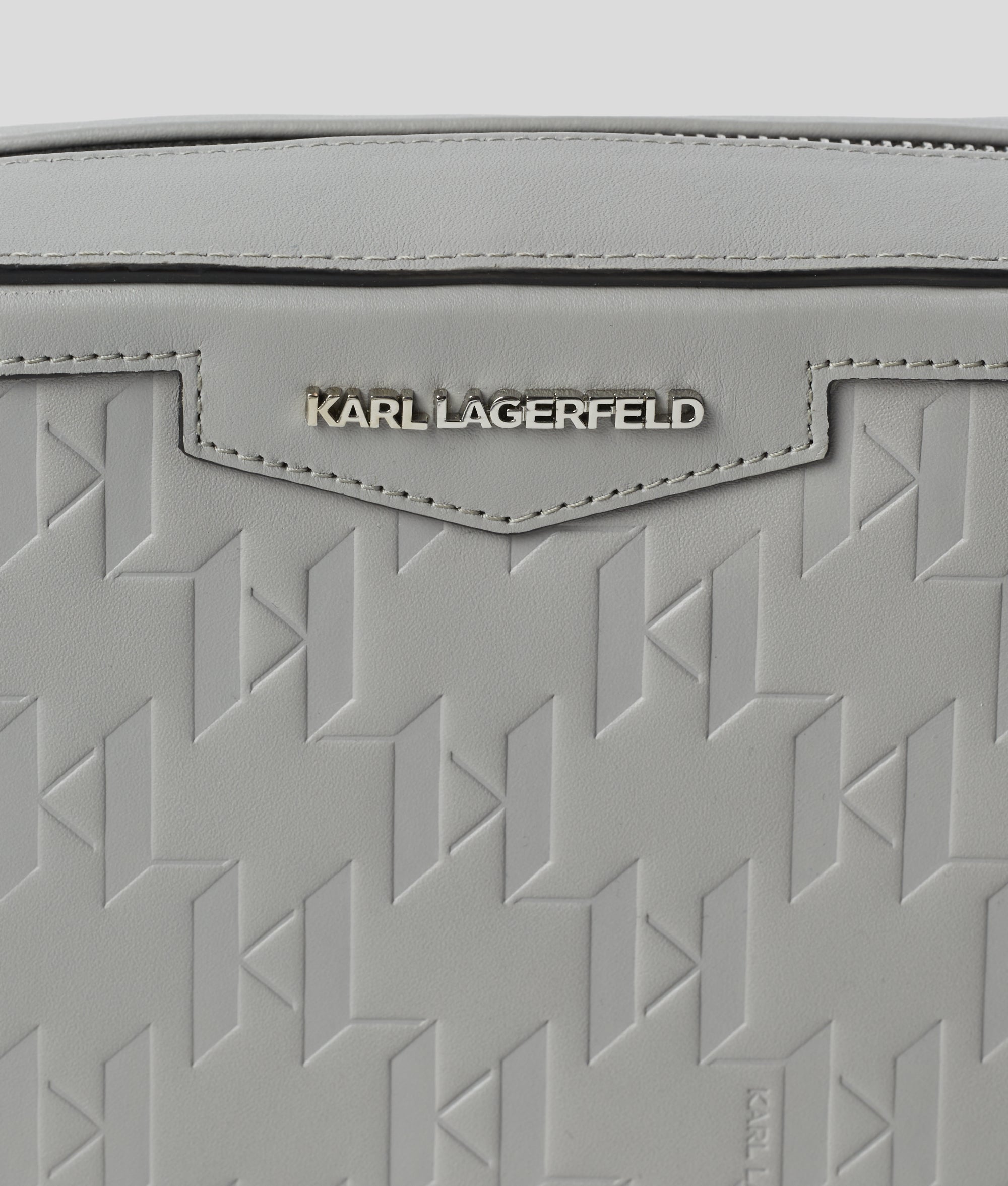 leather construction and all-over KARL Monogram embossed design.