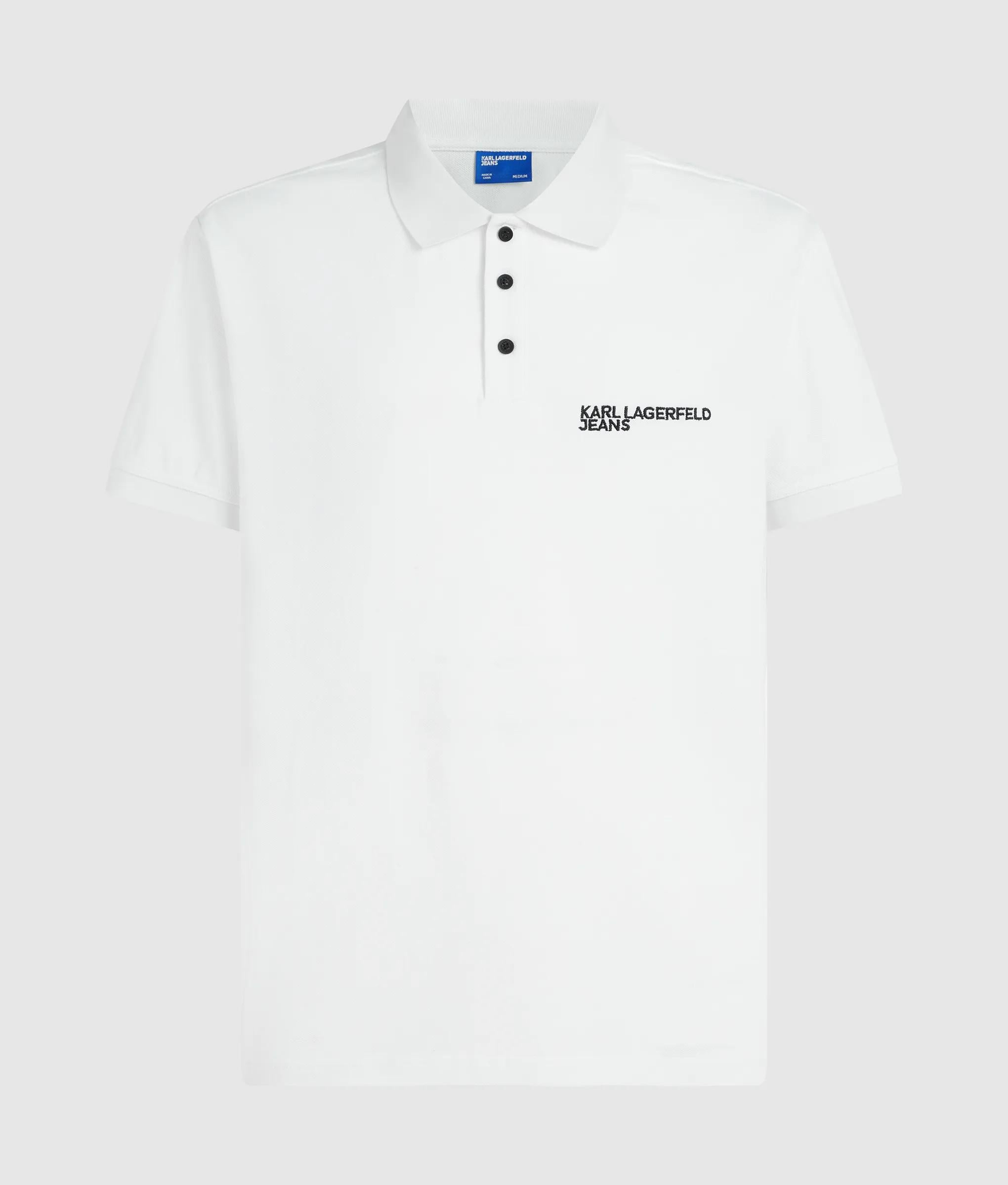 The cornerstone of a summer wardrobe, this organic cotton polo shirt offers effortless style and comfort. Featuring a traditional pointed collar and buttoned placket, anchored by a contrasting KARL LAGERFELD JEANS logo at the chest.