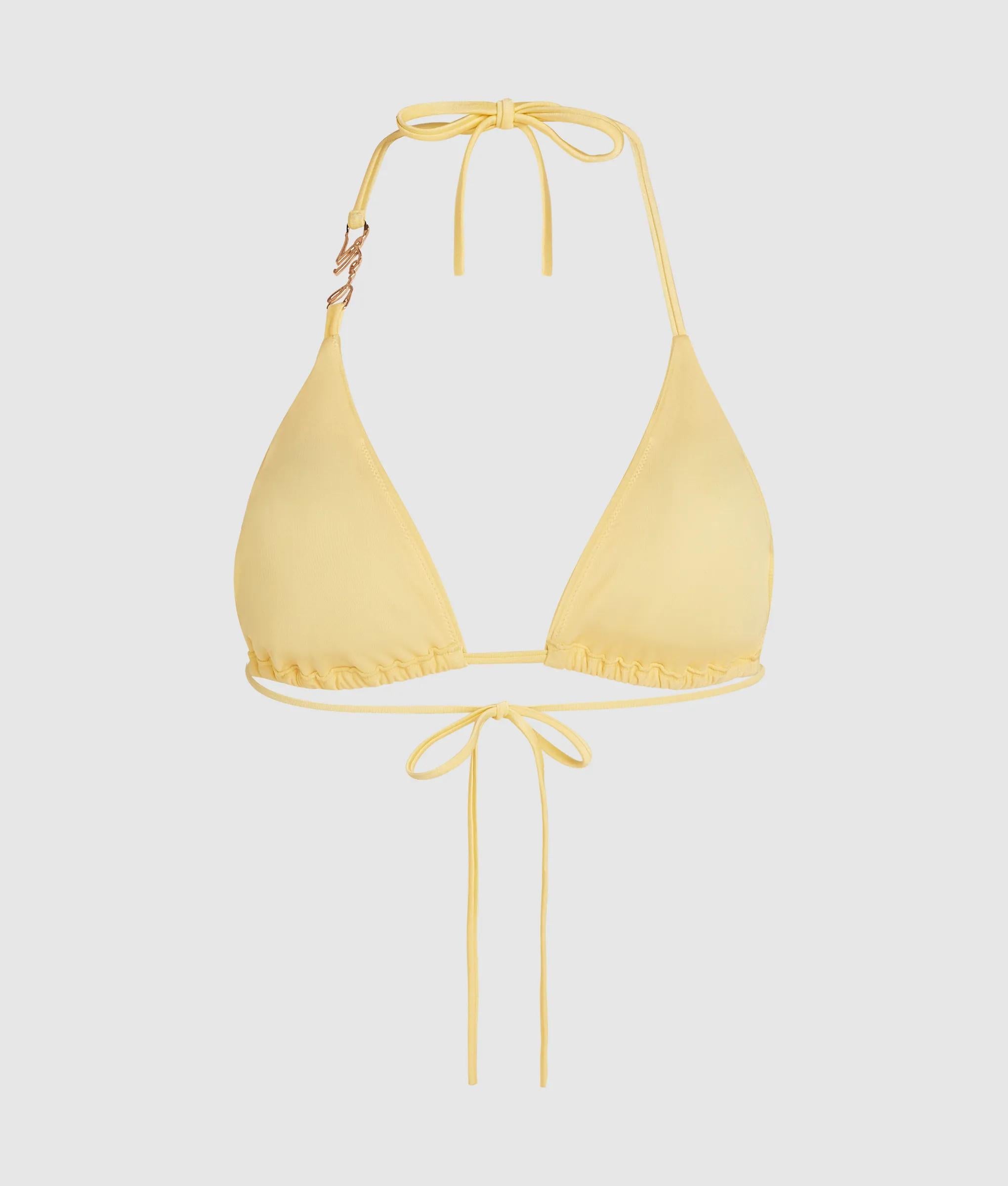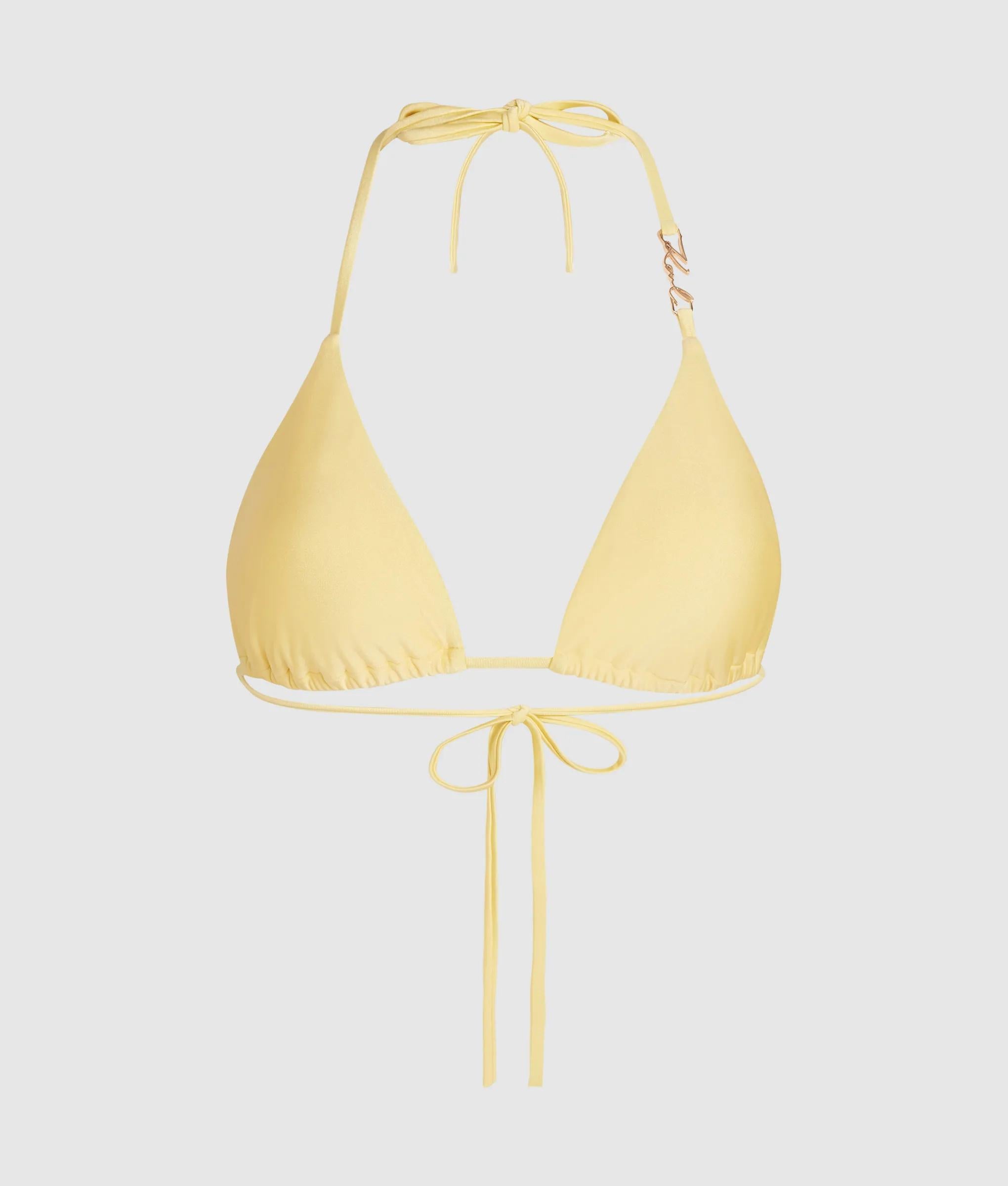Discover the allure of effortless beach style with this triangle bikini top. Featuring removable padding for a customizable fit and self-tie straps for versatile styling, this bikini top is a must-have for mixing and matching.