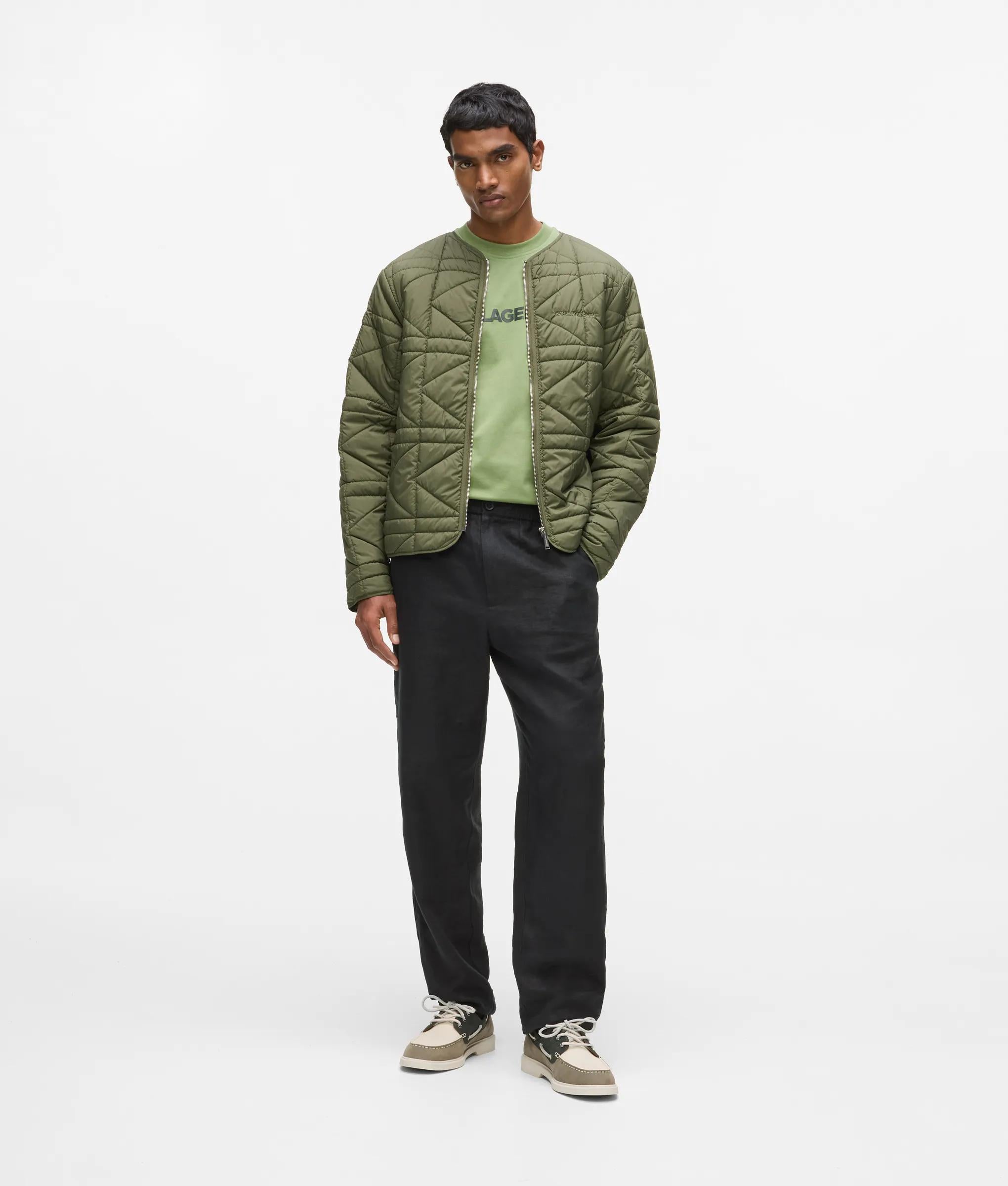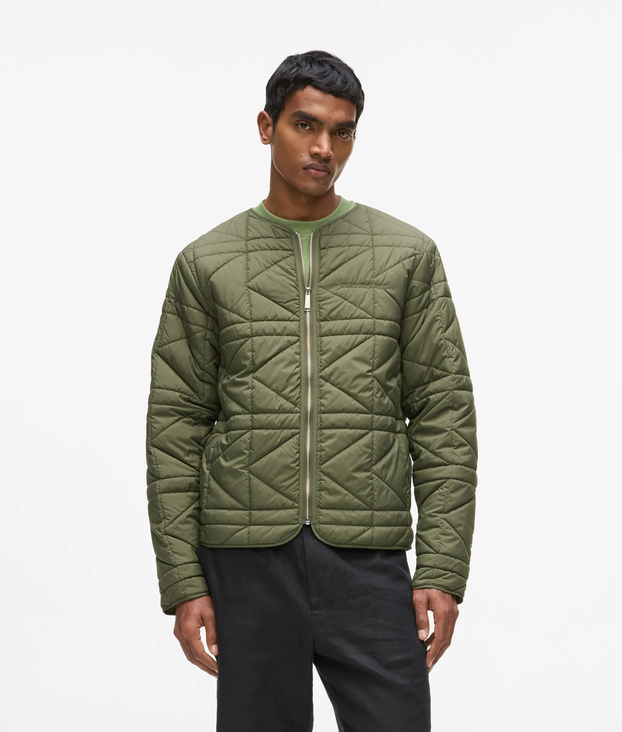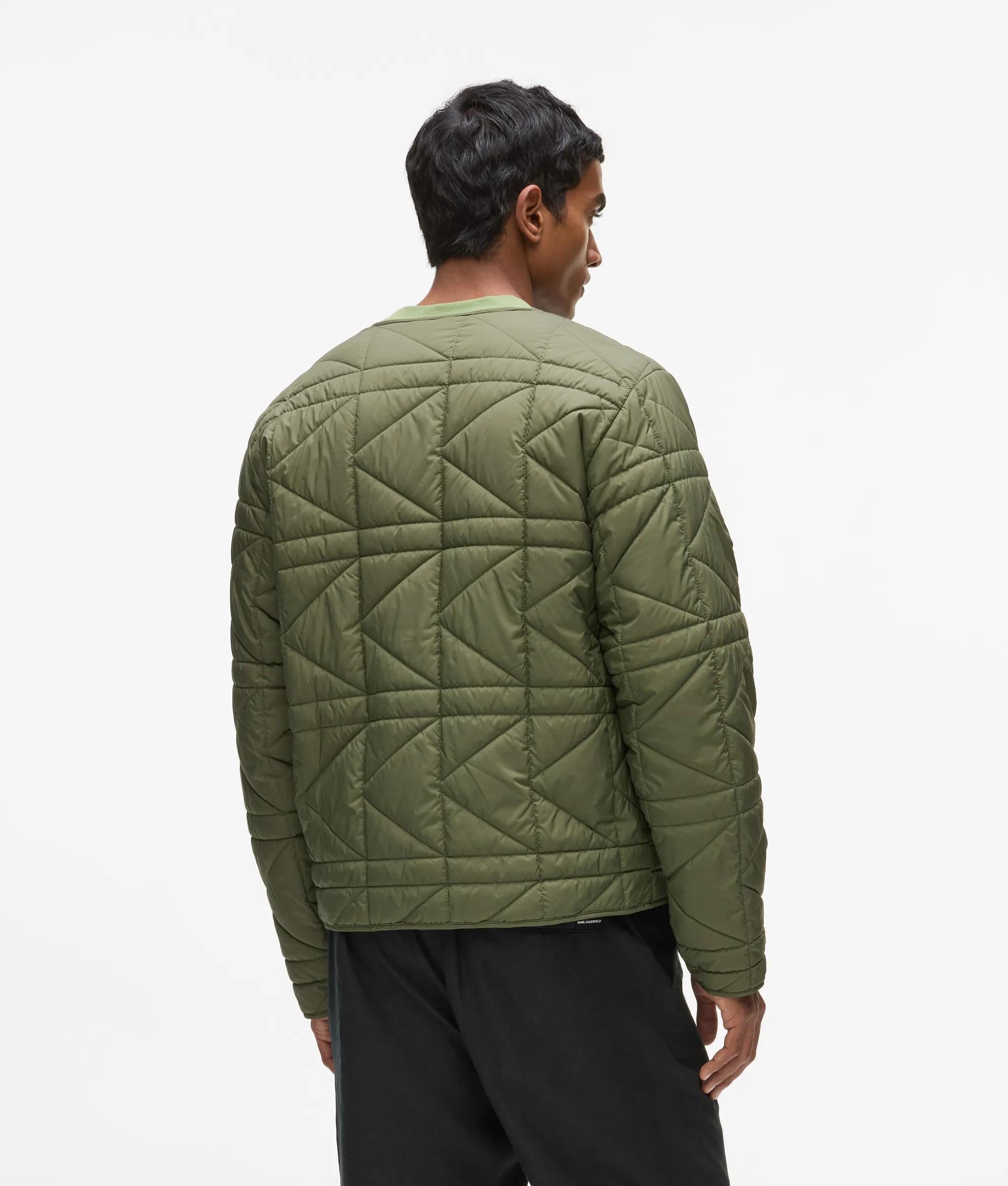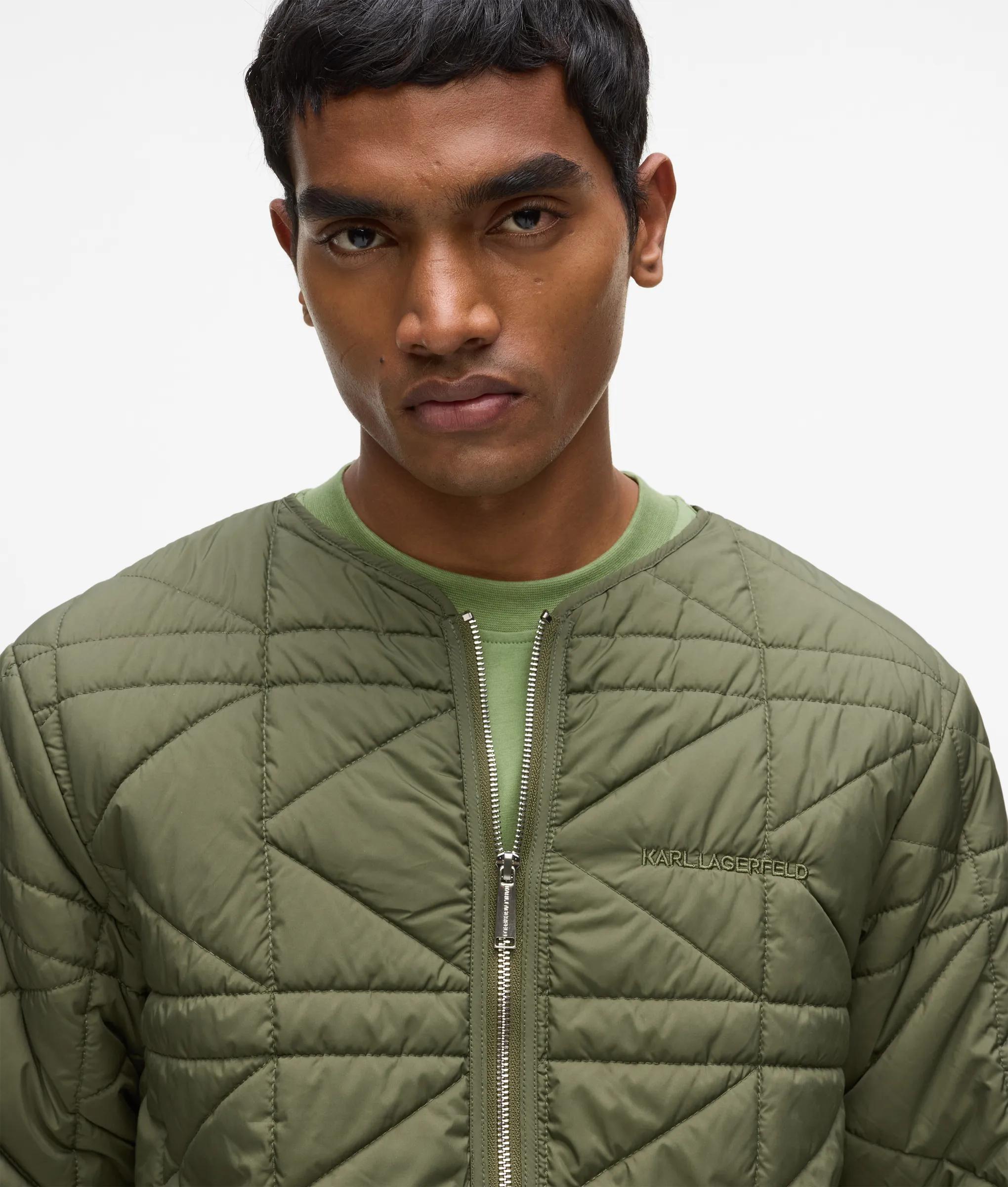 A sleek, packable jacket with a silver zip and quilted texture. The lightweight style folds into an inner pouch for effortless layering on the move.