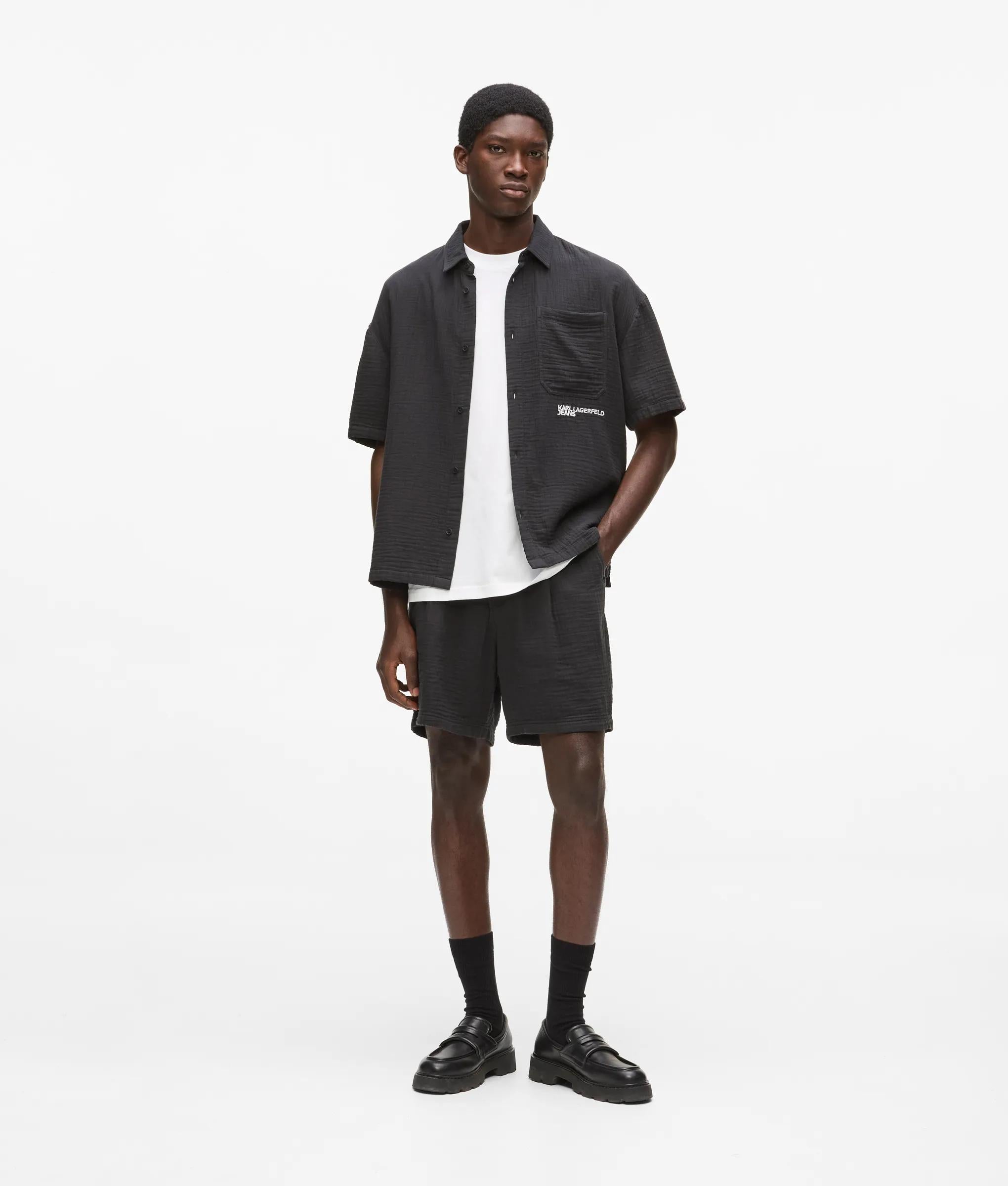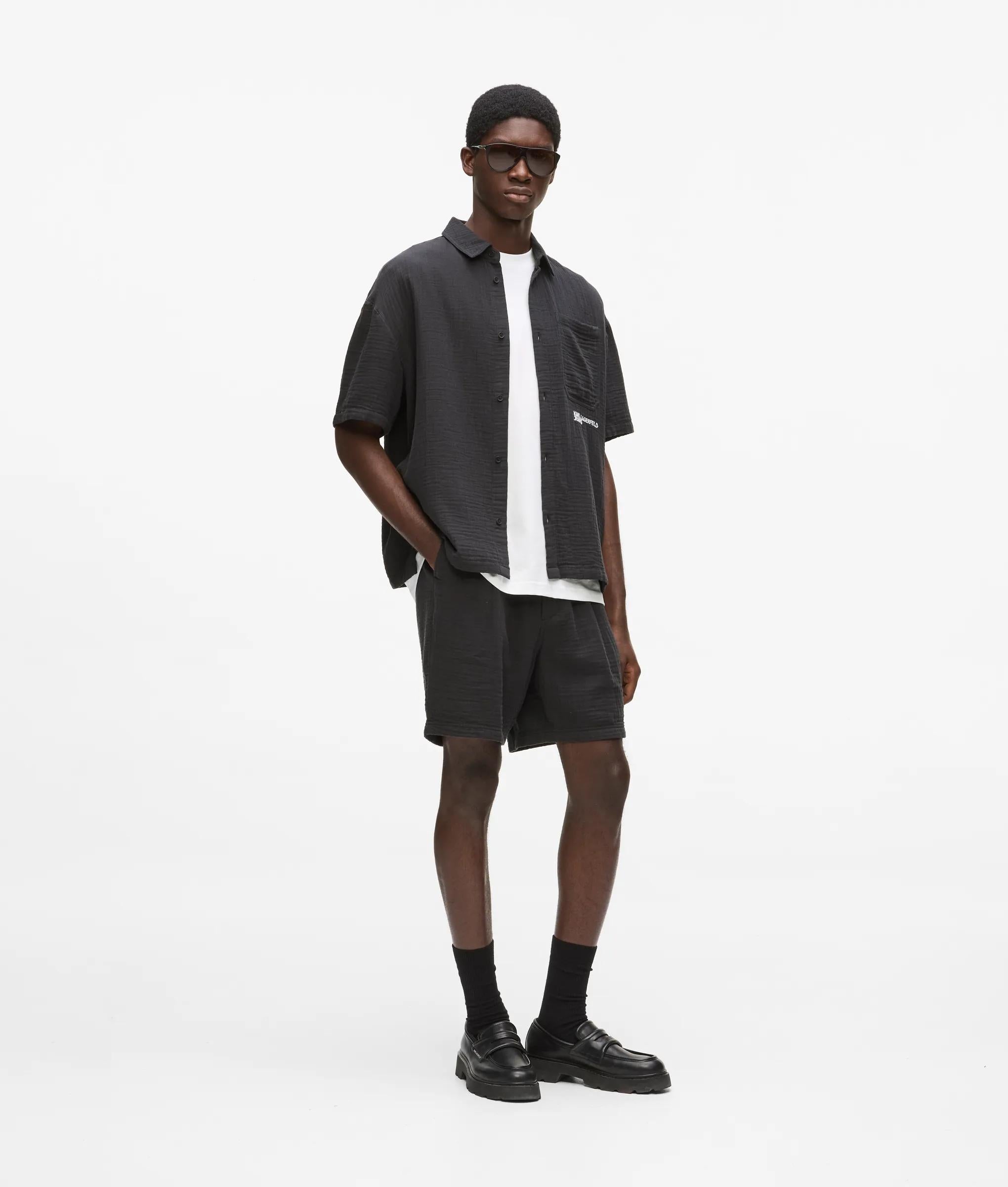 Textural crinkled shorts that bring a fresh twist to summer style. Designed with practical pockets and a clean zip-fly, they pair perfectly with the matching shirt for a standout look.
