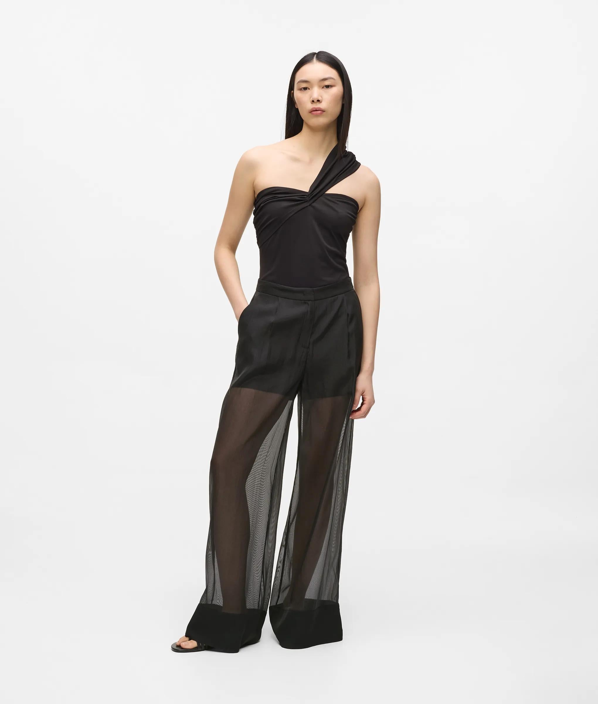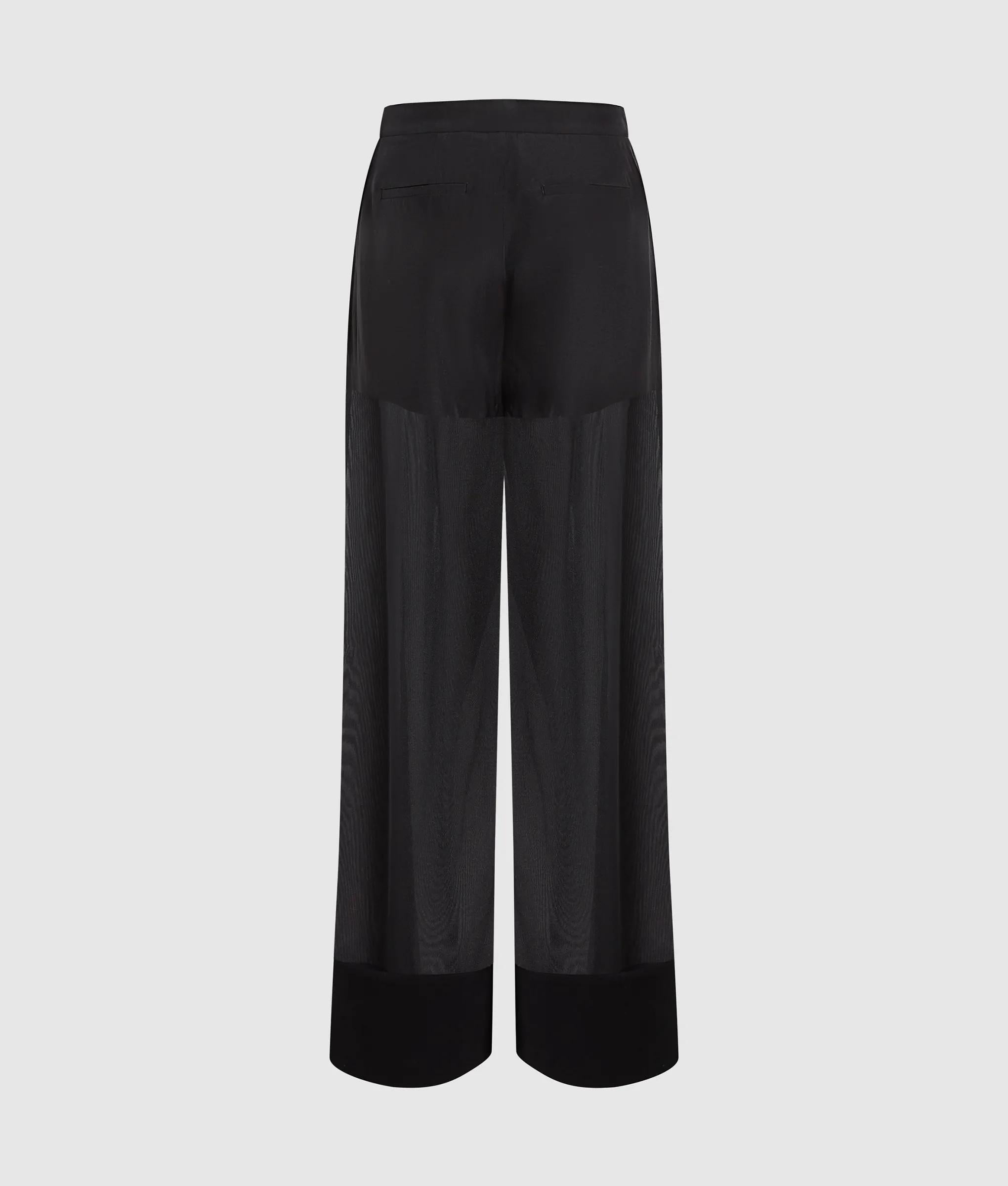 Crafted from sheer organza, these wide-leg pants move with a soft, airy fluidity, perfect for sunlit summer moments. The opaque top panel provides structure for a confident and contemporary tailored look.