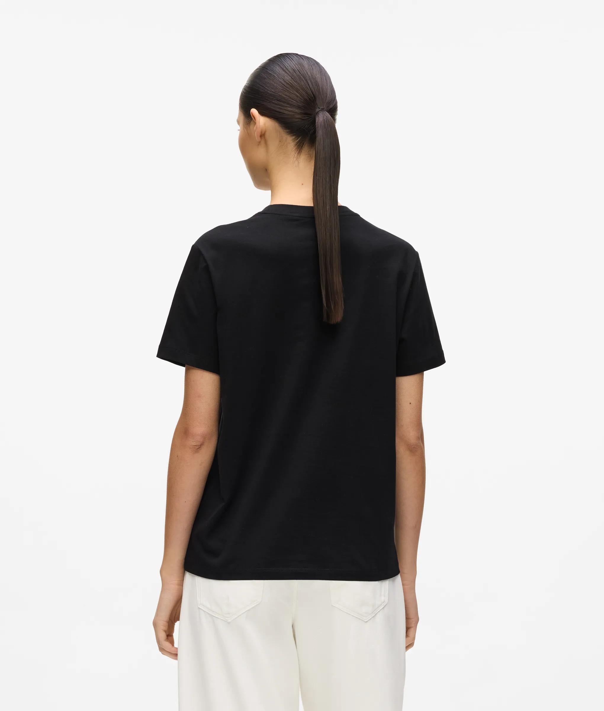 Soft organic cotton shapes this regular T-shirt with a clean crew neck and short sleeves. Tonal embroidery adds subtle detail, making it an understated essential.