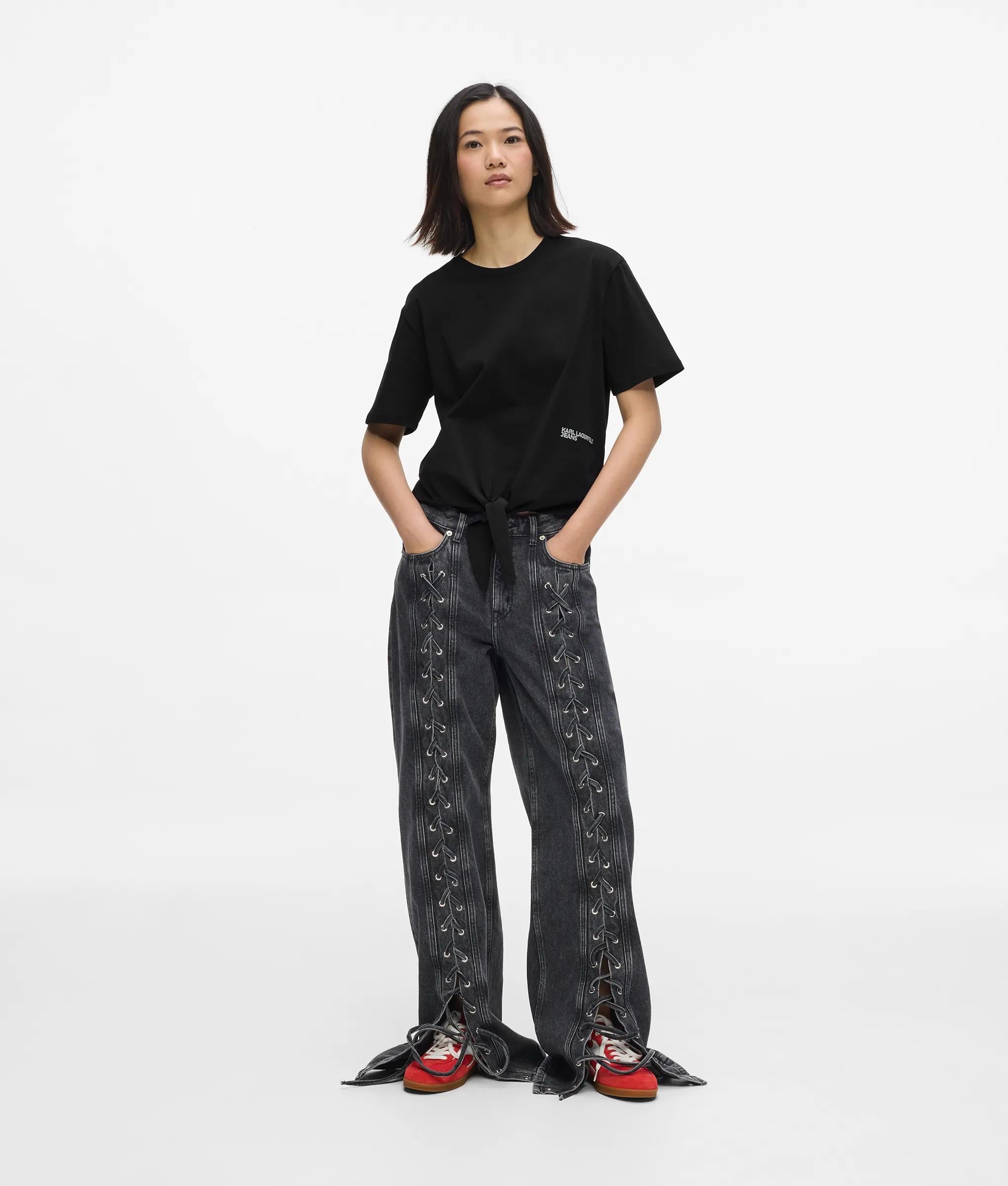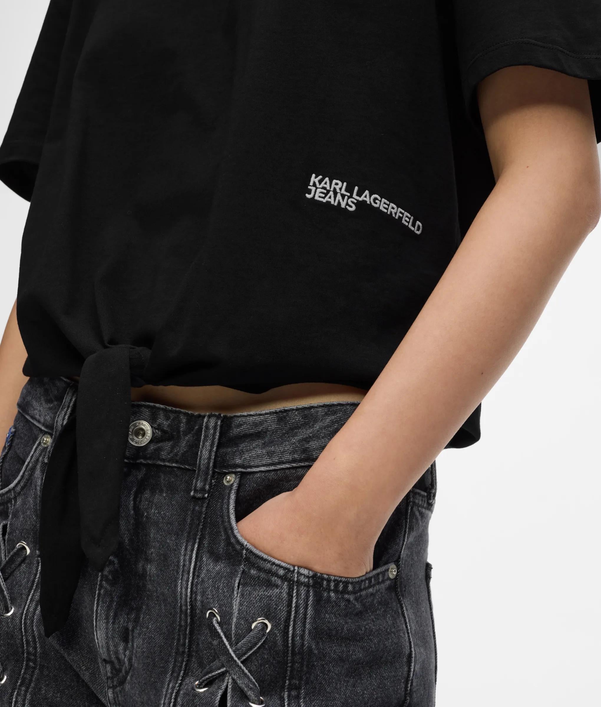 A fresh spin on the classic crew neck, this organic cotton tee balances regular fit with a front tie, punctuated by a contrasting logo for a subtle edge.