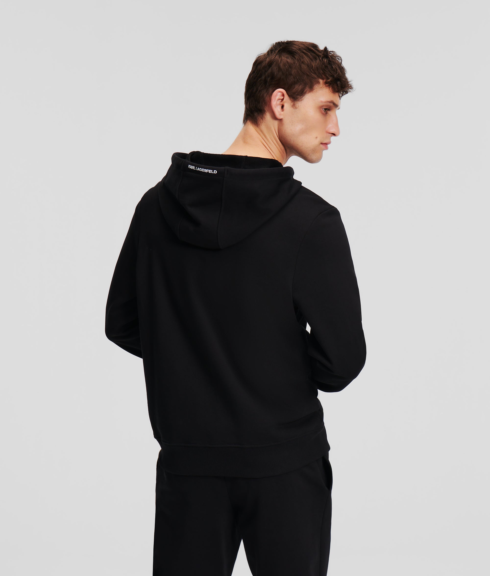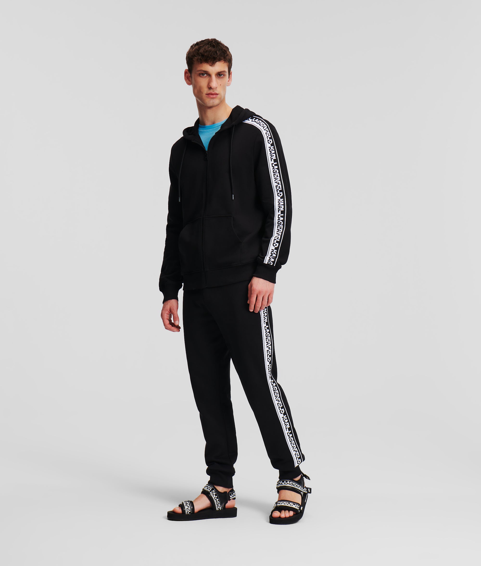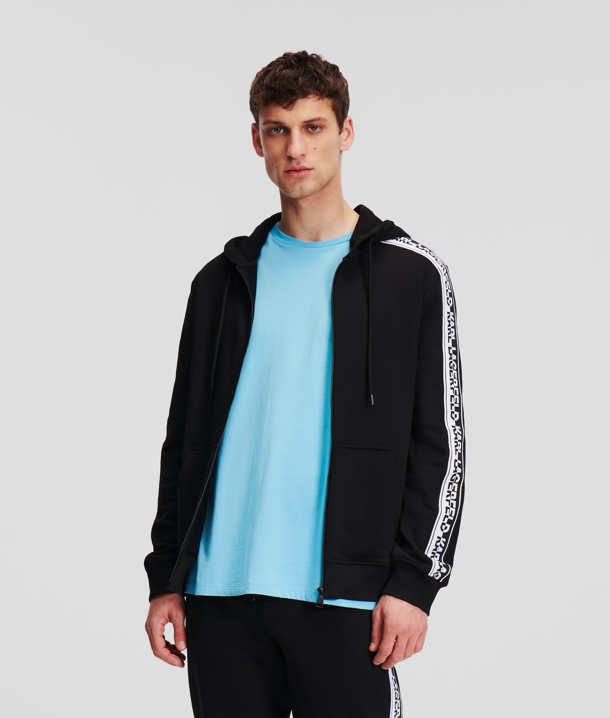 Knitted KARL logo tape elevates this zip-up hoodie, featuring a drawcord hood and practical front kangaroo pocket.