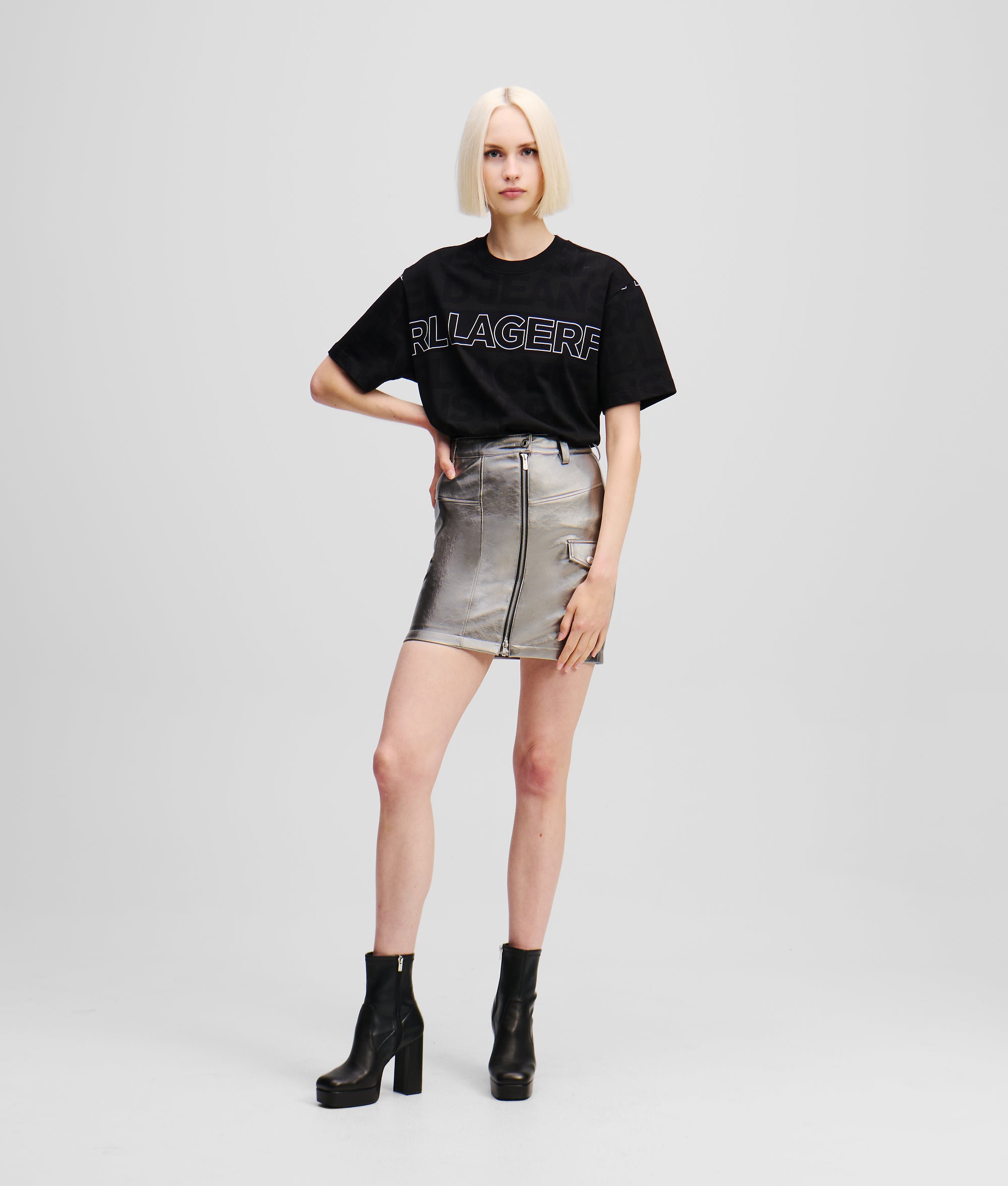 Command attention with this striking miniskirt featuring an eye-catching high-shine finish and an asymmetric zip-front closure. Complete the look with the matching metallic biker jacket for double the attitude.