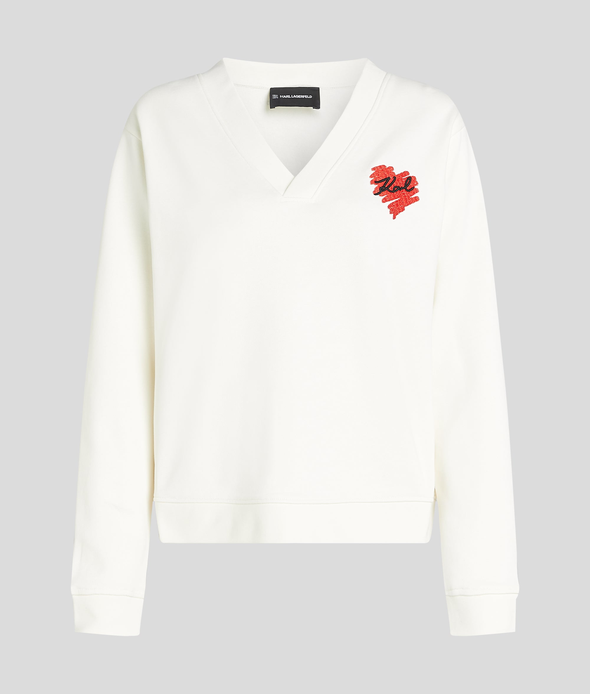 A playful twist on a classic silhouette, this v-neck sweatshirt showcases a scribble-effect heart design that captures a youthful spirit. Soft and breathable, it's perfect for casual outings, ensuring comfort without compromising on style.