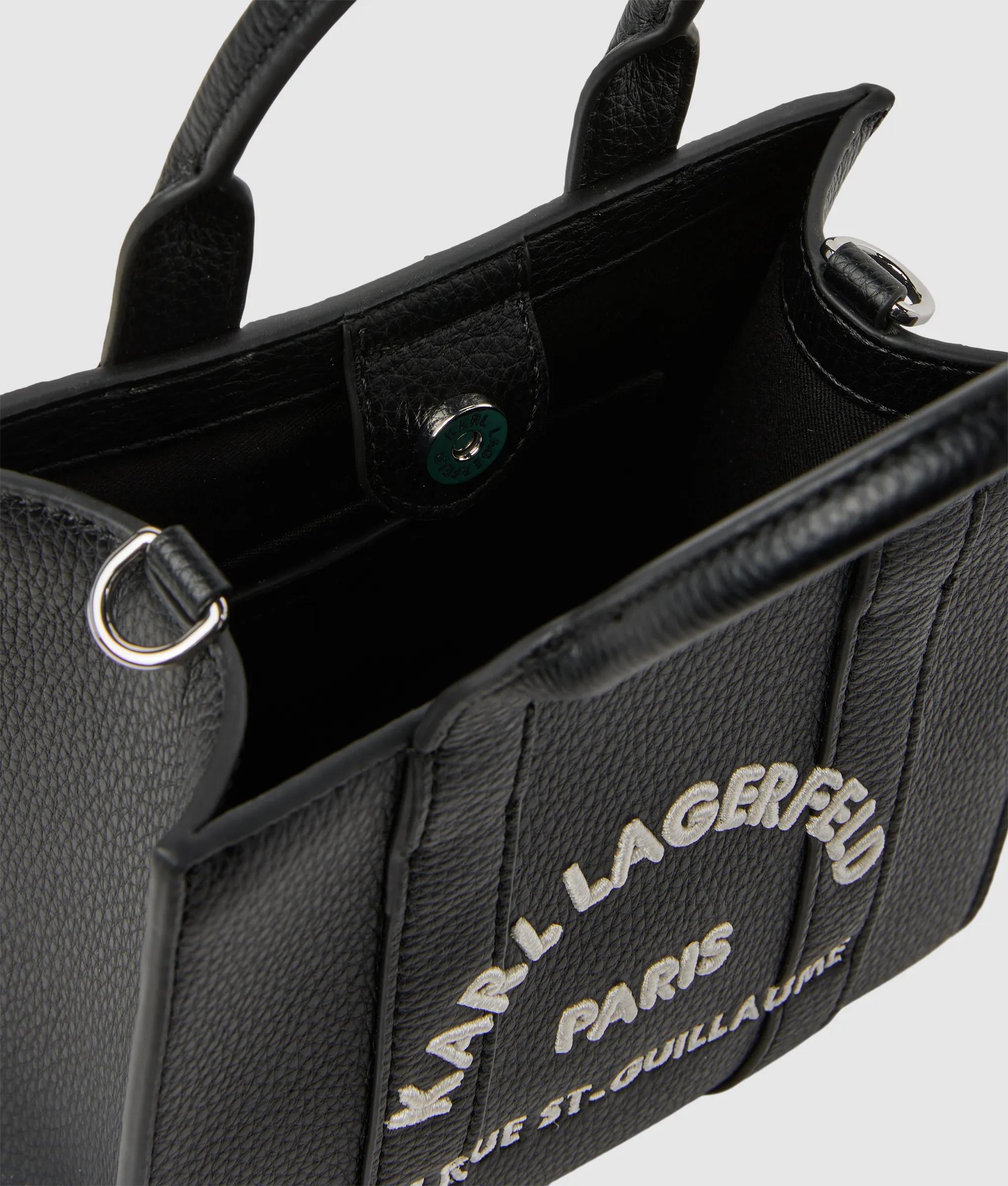 Elevate your accessories with this mini tote bag, showcasing a contemporary square silhouette and textured technical leather finish. Tonal Rue St-Guillaume embroidery adds a touch of refinement.