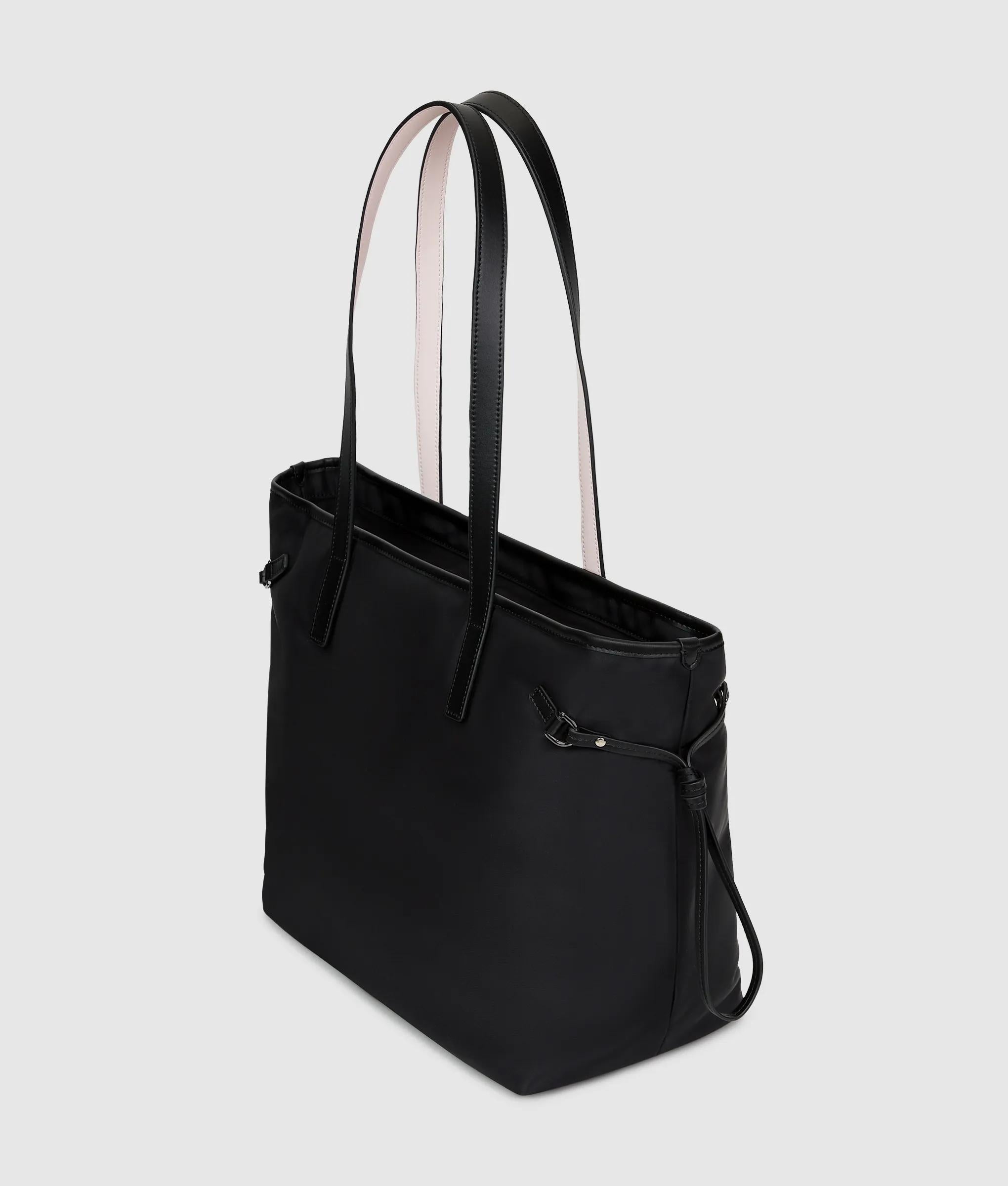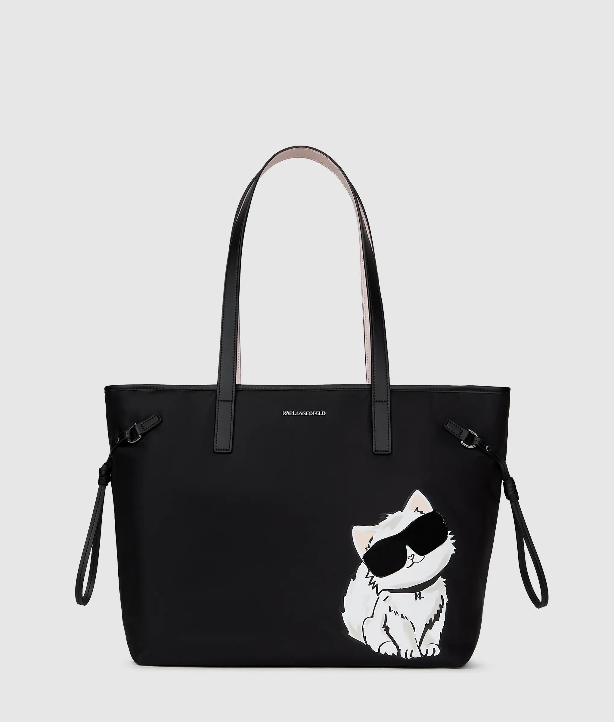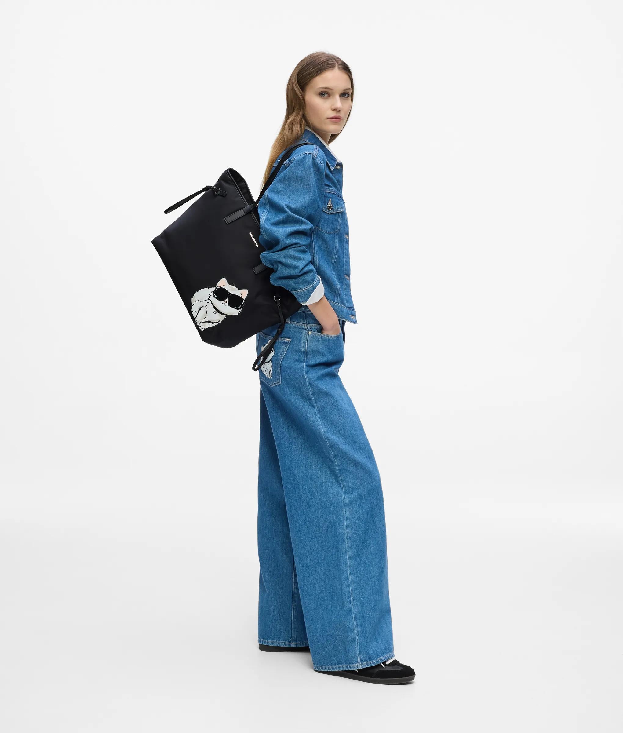Effortless utility meets playful Parisian flair in this drawstring tote. The spacious silhouette fits a 14” laptop, while bold Ikon Choupette artwork and pink-accented handles add a chic edge.