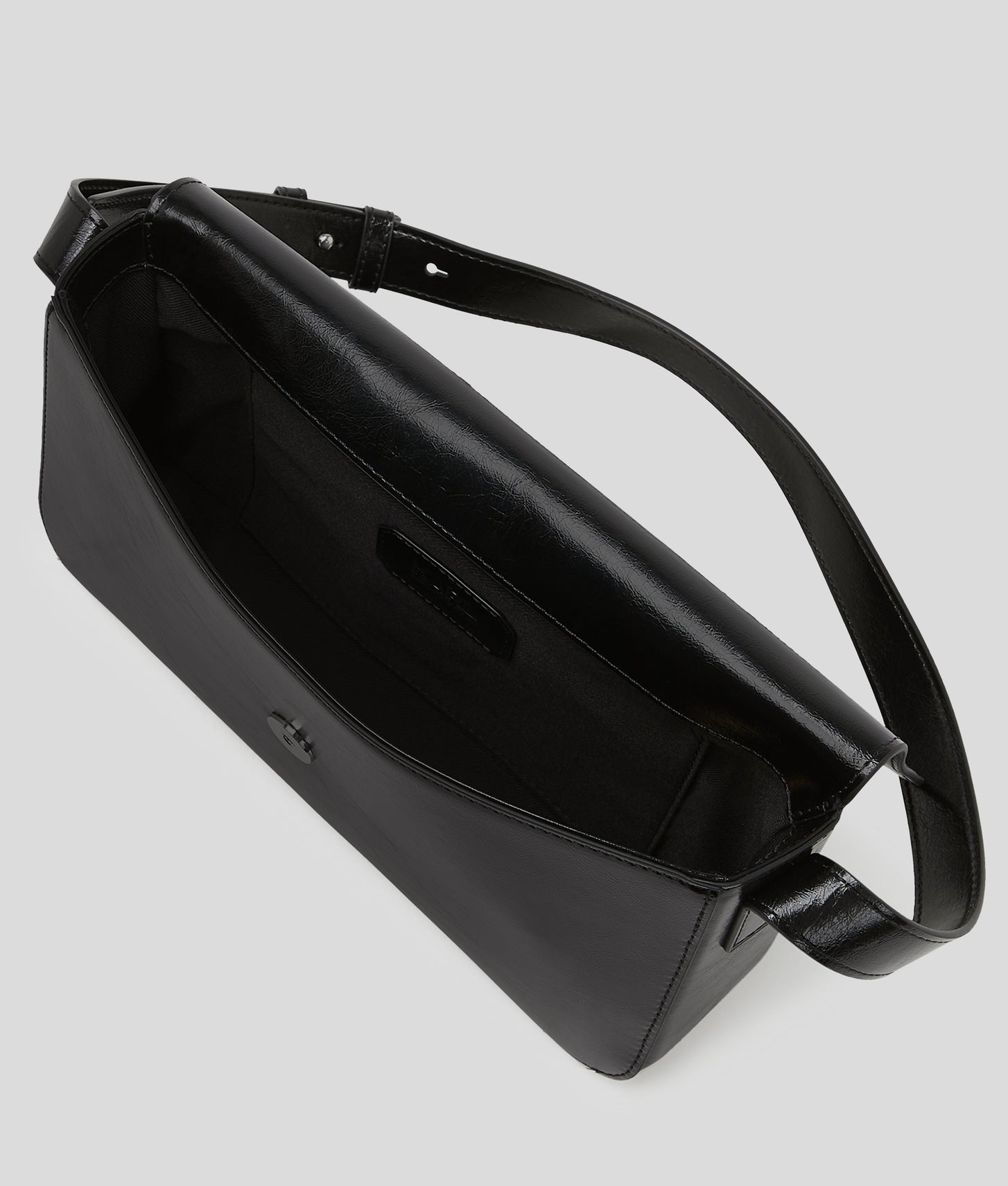 A statement staple, this shoulder bag features a chic flap top closure and an adjustable strap for versatile wear. Adorned with a bold stacked KARL LAGERFELD logo, it effortlessly combines style and practicality, making it a must-have accessory.