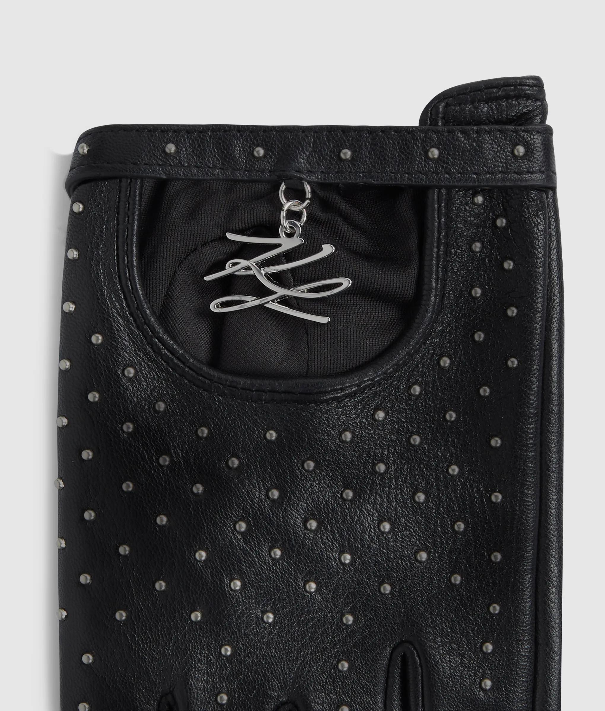 Studded with attitude, these fingerless gloves fuse rock-chic edge with buttery soft leather. Elasticated cuffs ensure a sleek fit, while Autograph charms add refined finishing touches.