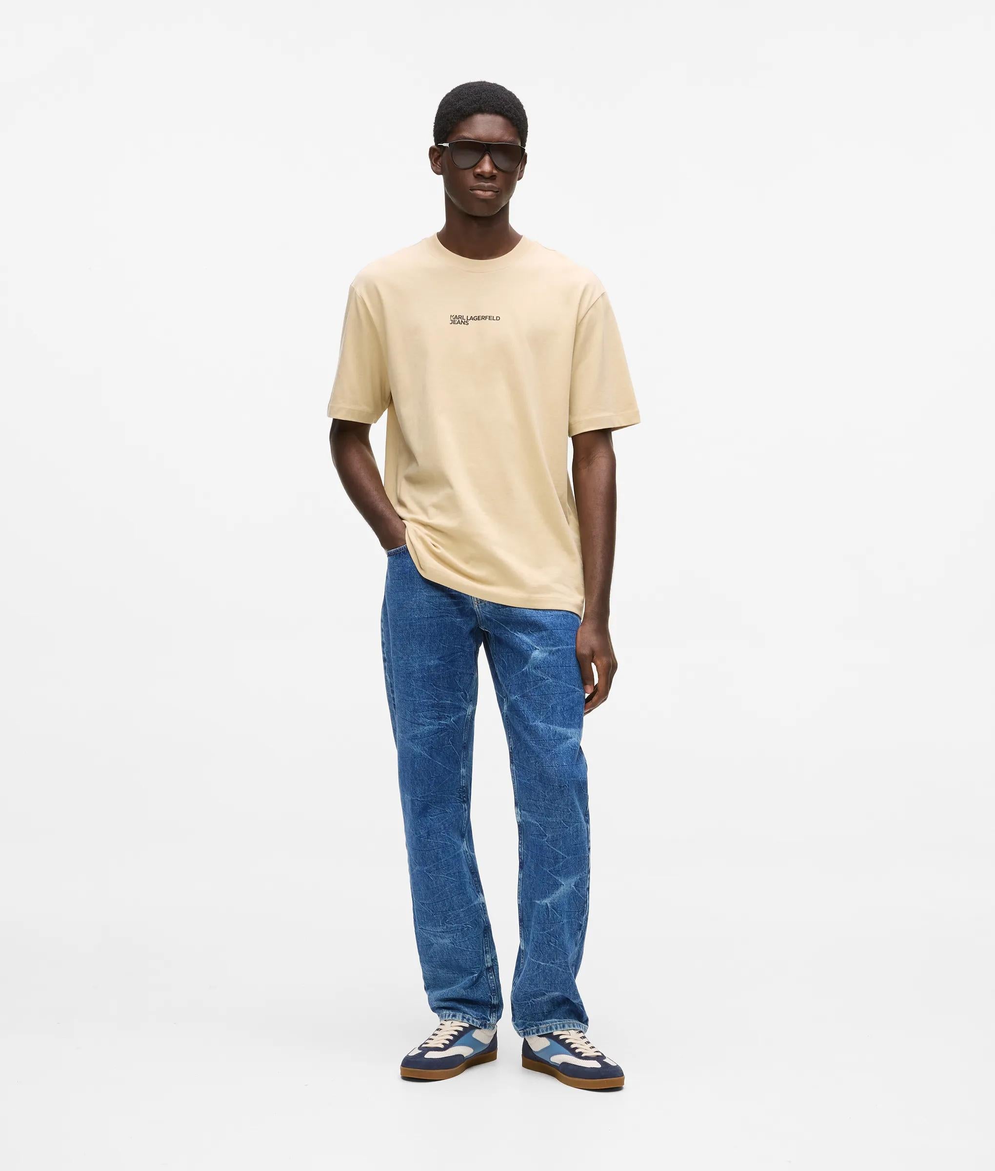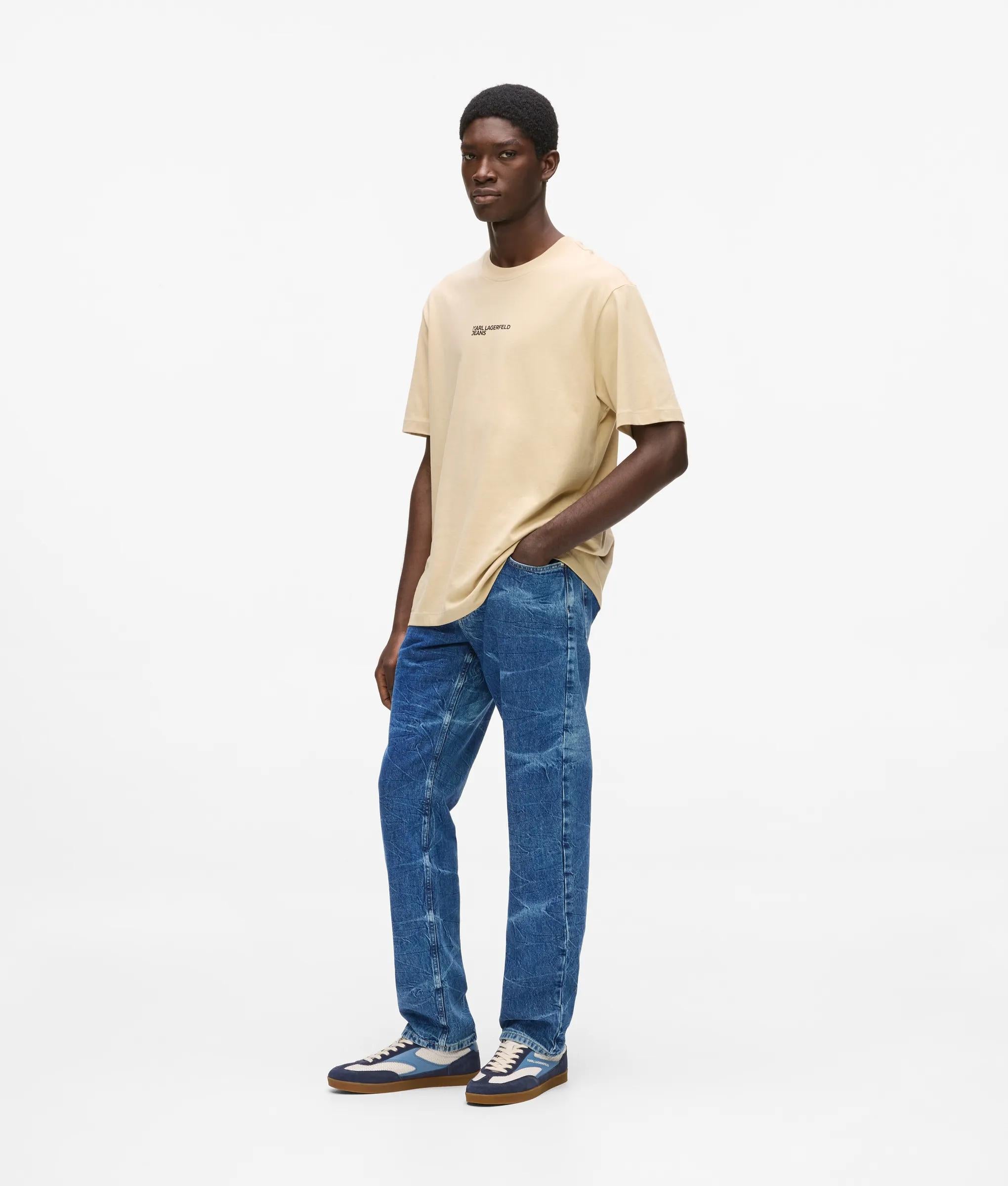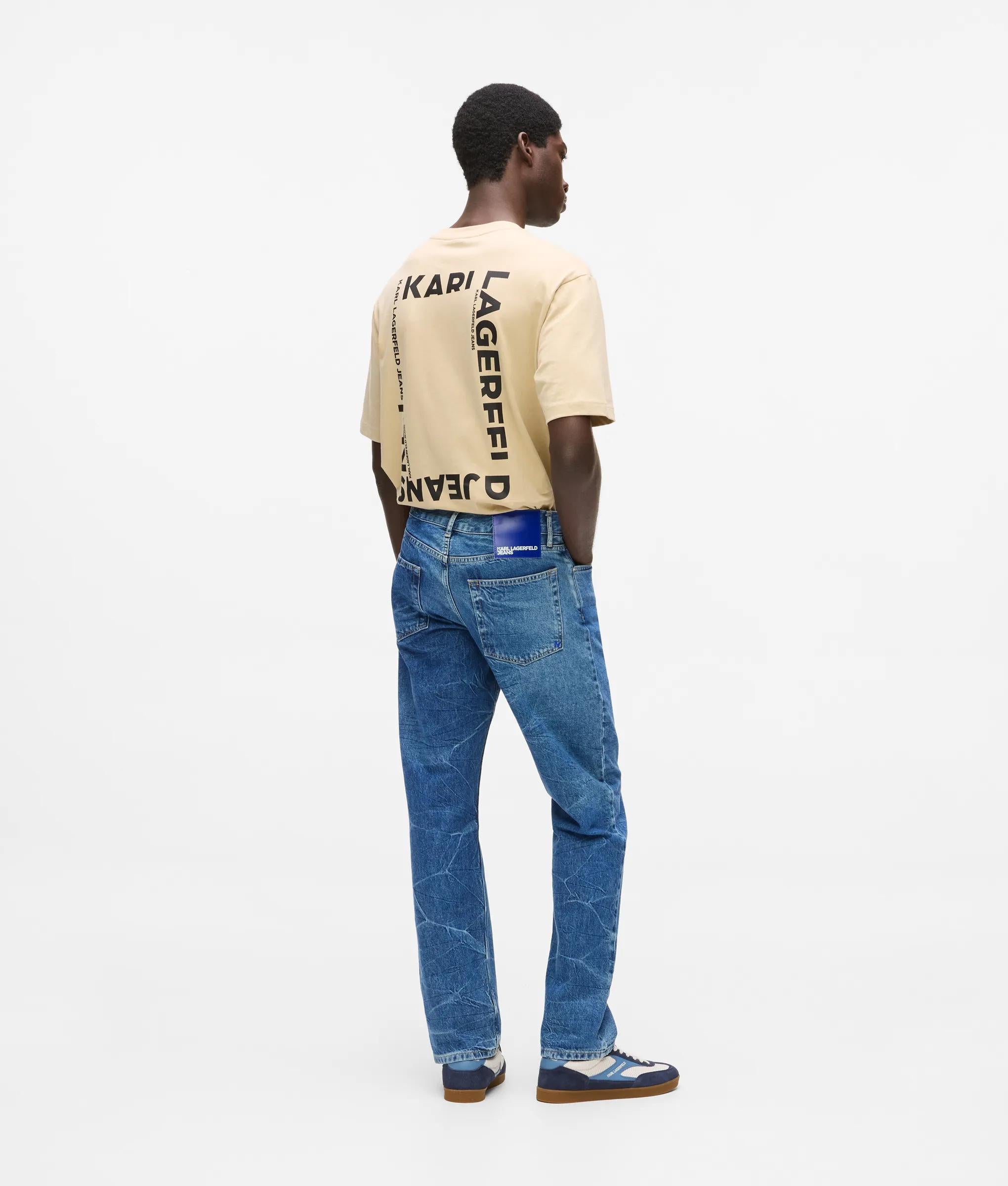 Rigid denim, amplified by a bold marbled finish, gives these straight-leg jeans a confident, structured feel. Branded hardware brings a crafted edge to the everyday staples.