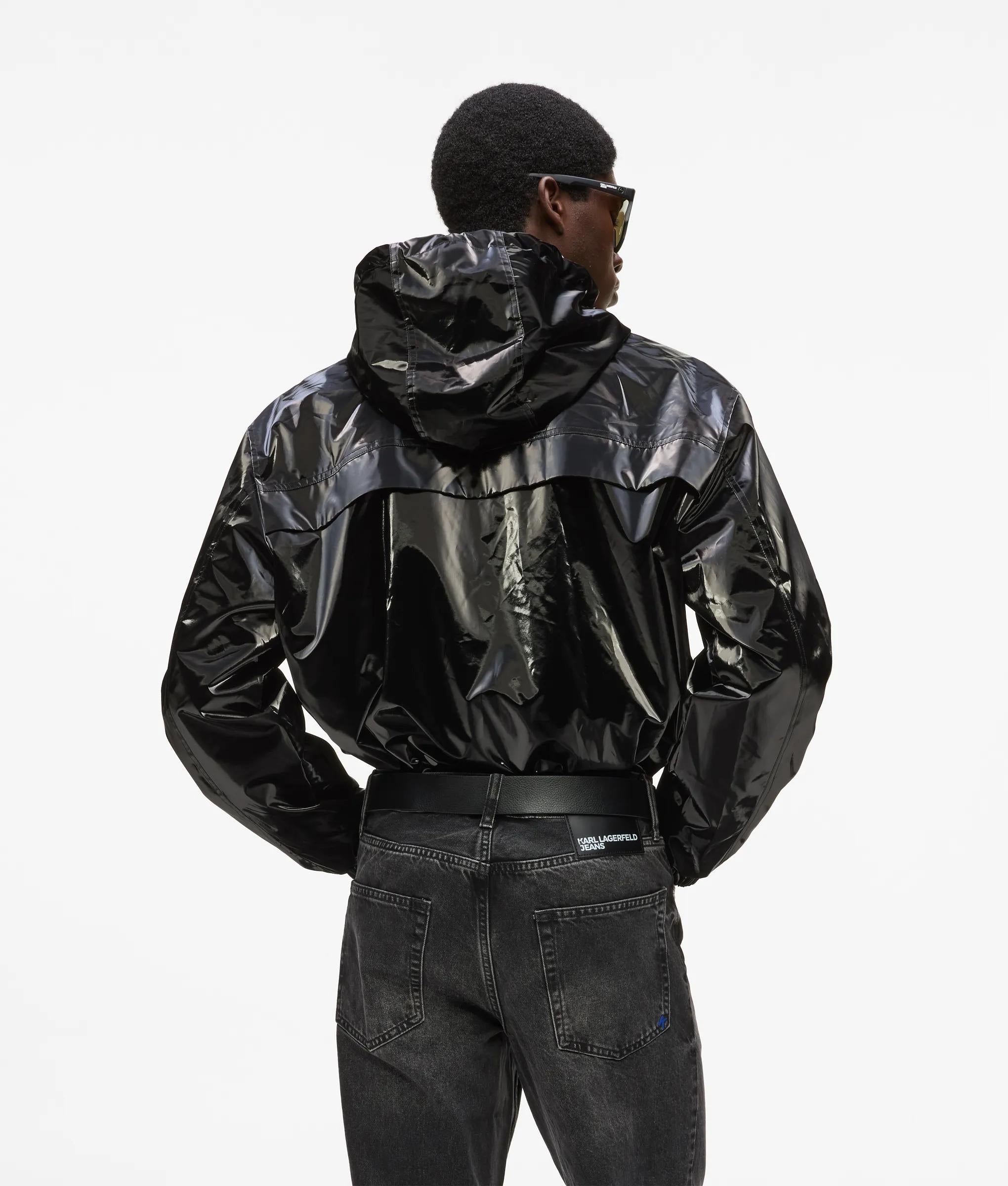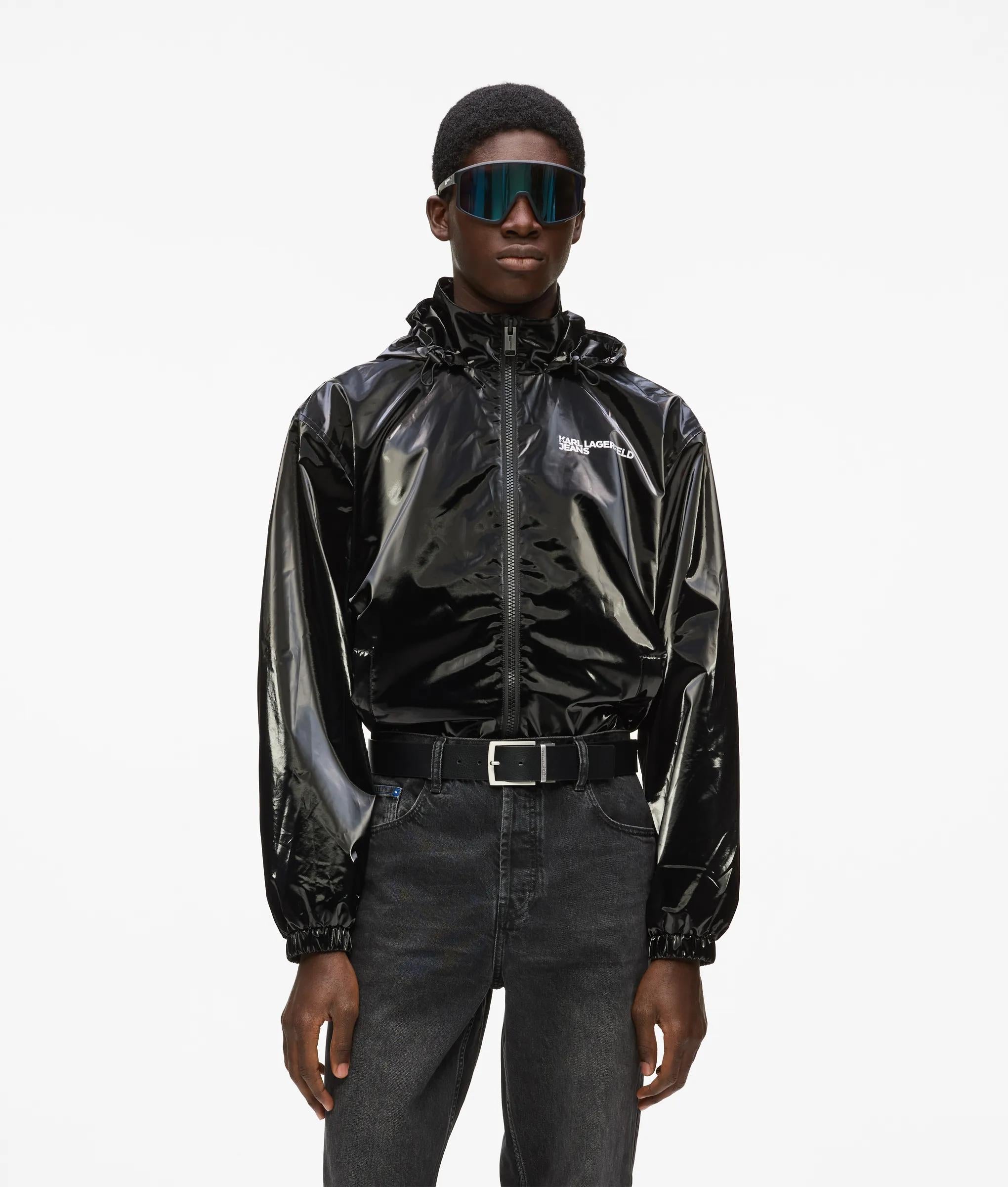 Shiny hooded bomber jacket