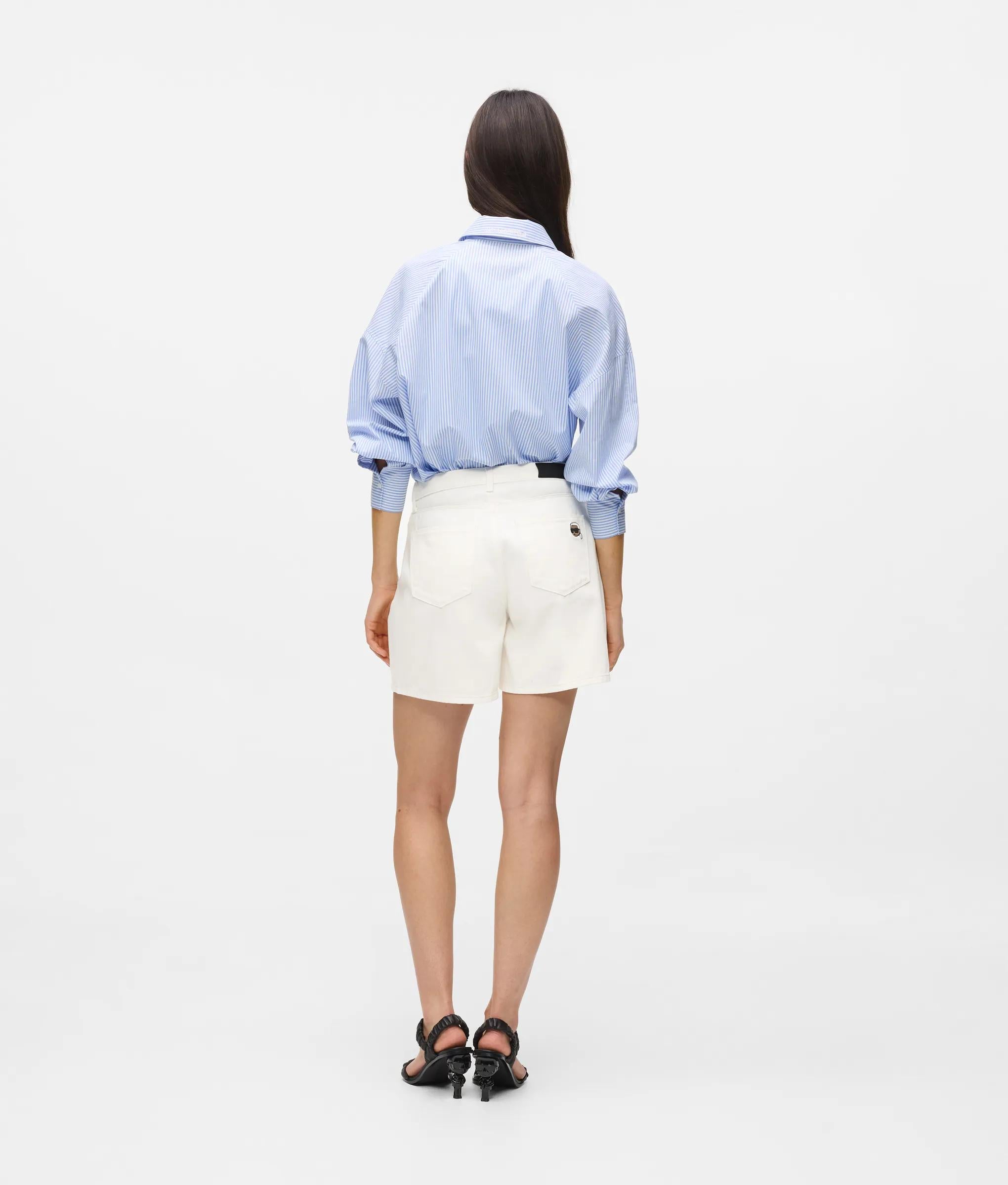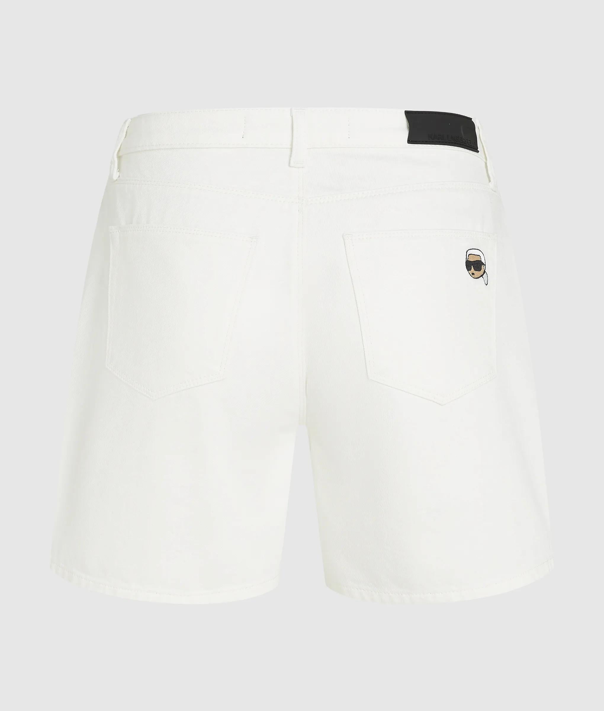Sun-warmed denim shapes these tailored shorts with subtle logo embroidery and a distinctive button fly. They invite relaxed days with a touch of refined edge.