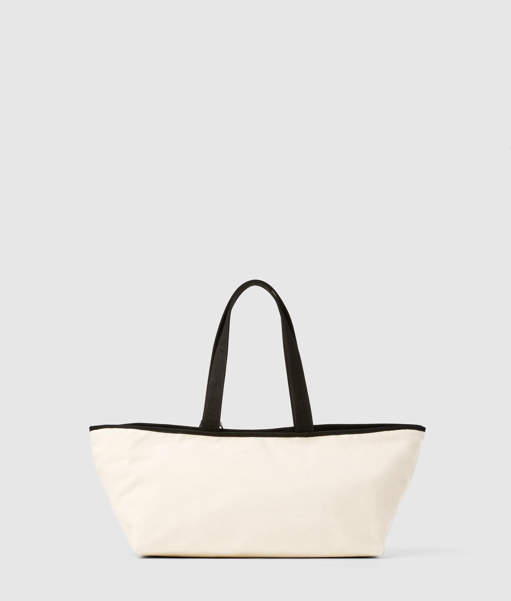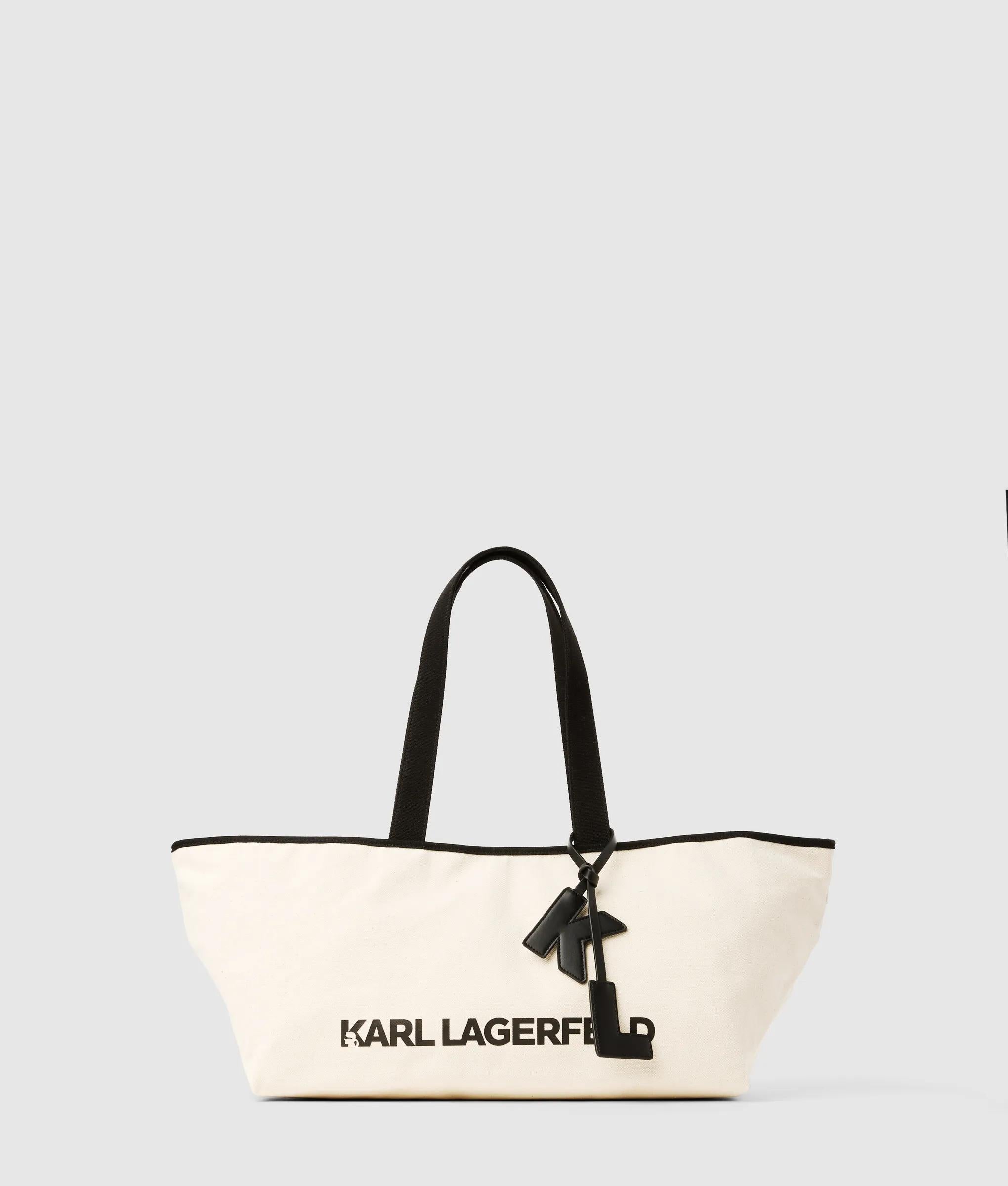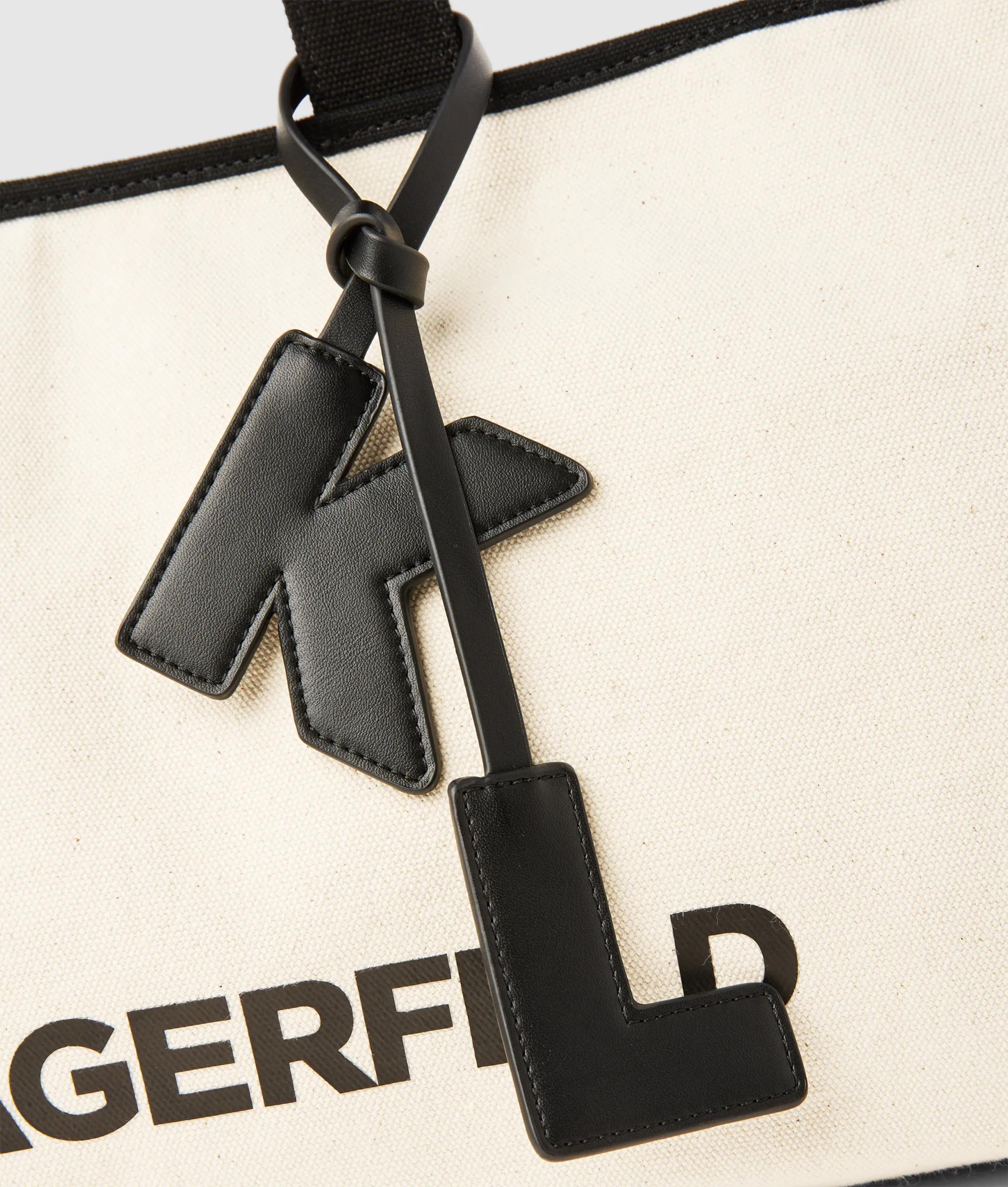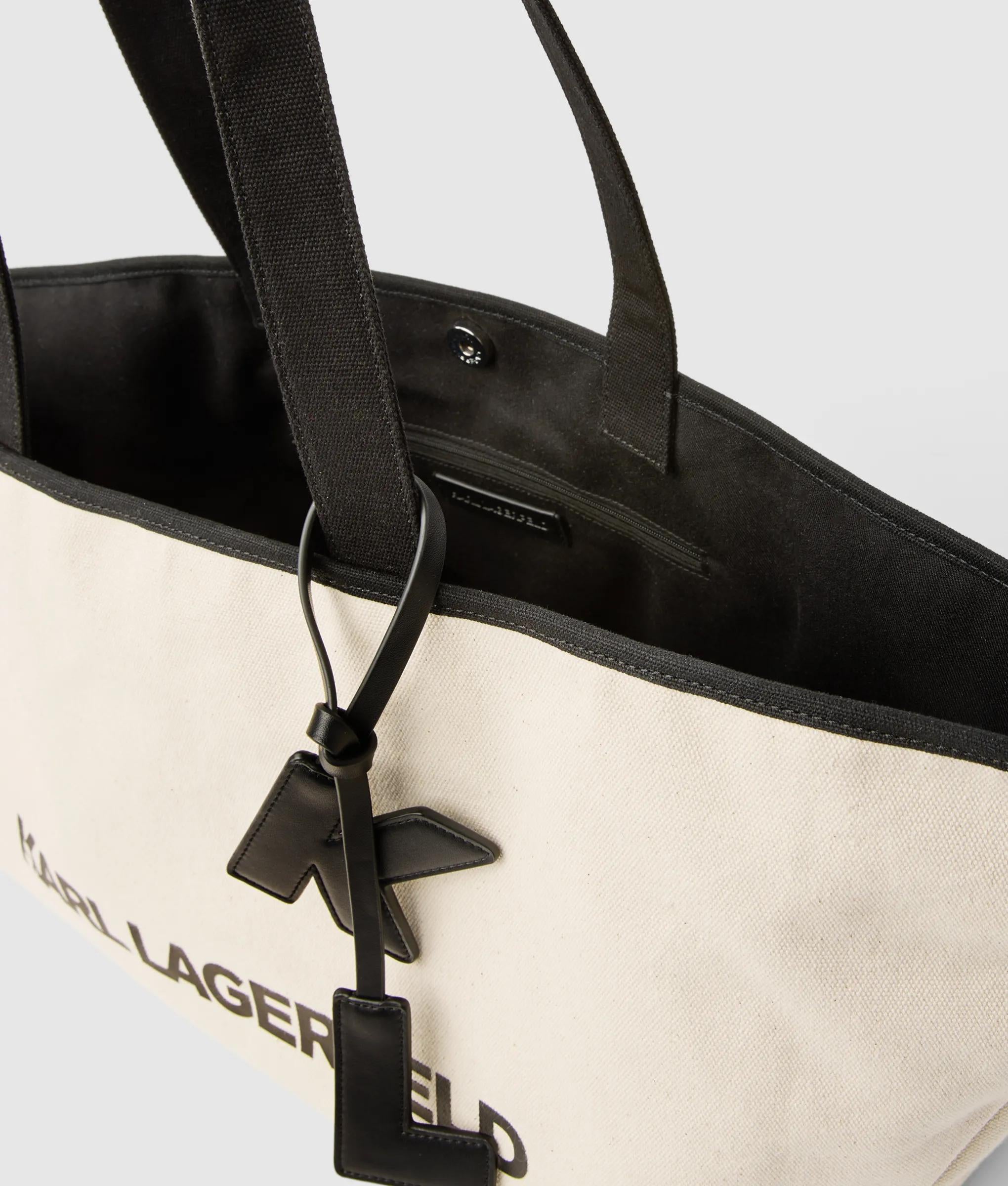 Effortless elegance defines this large elongated shopper. Its ultra-wide silhouette and soft cotton-rich texture carry daily essentials with understated charm and subtle KARL LAGERFELD flair.
