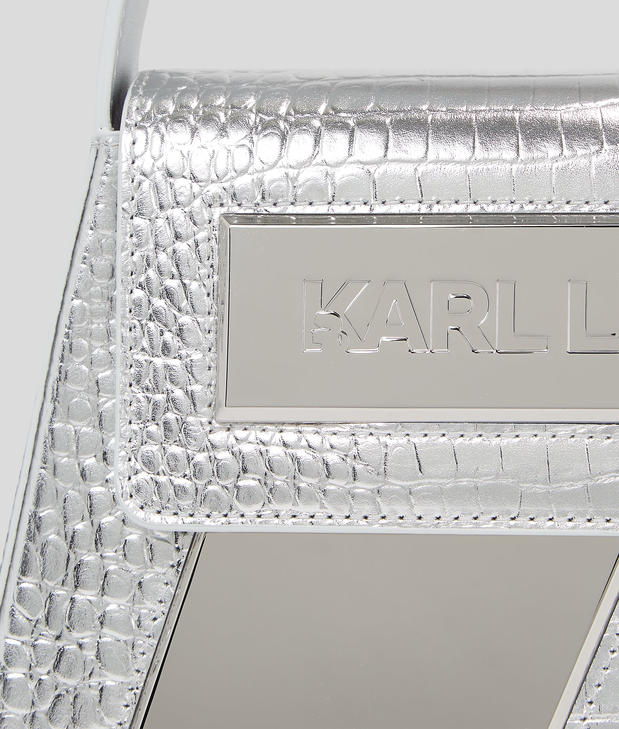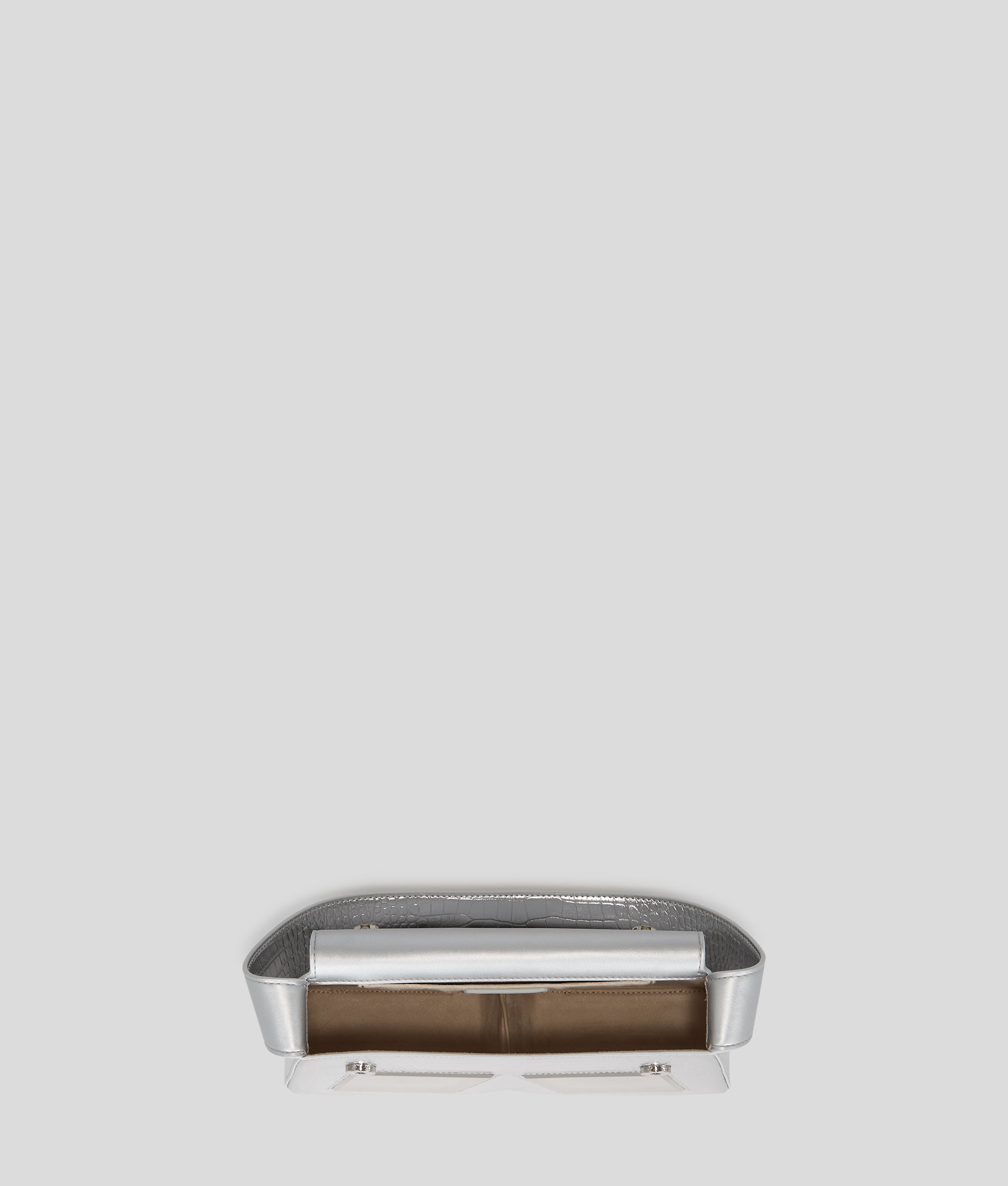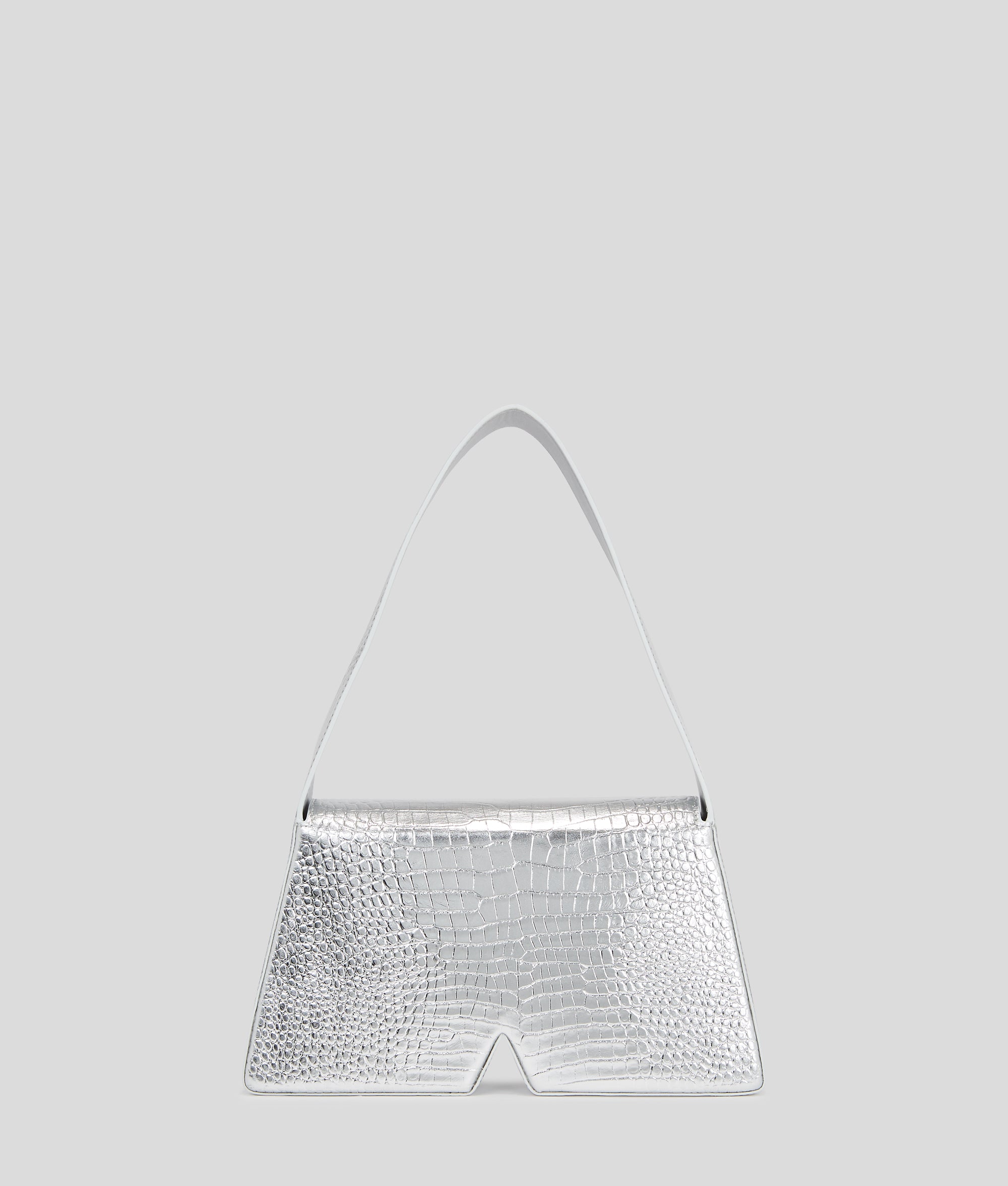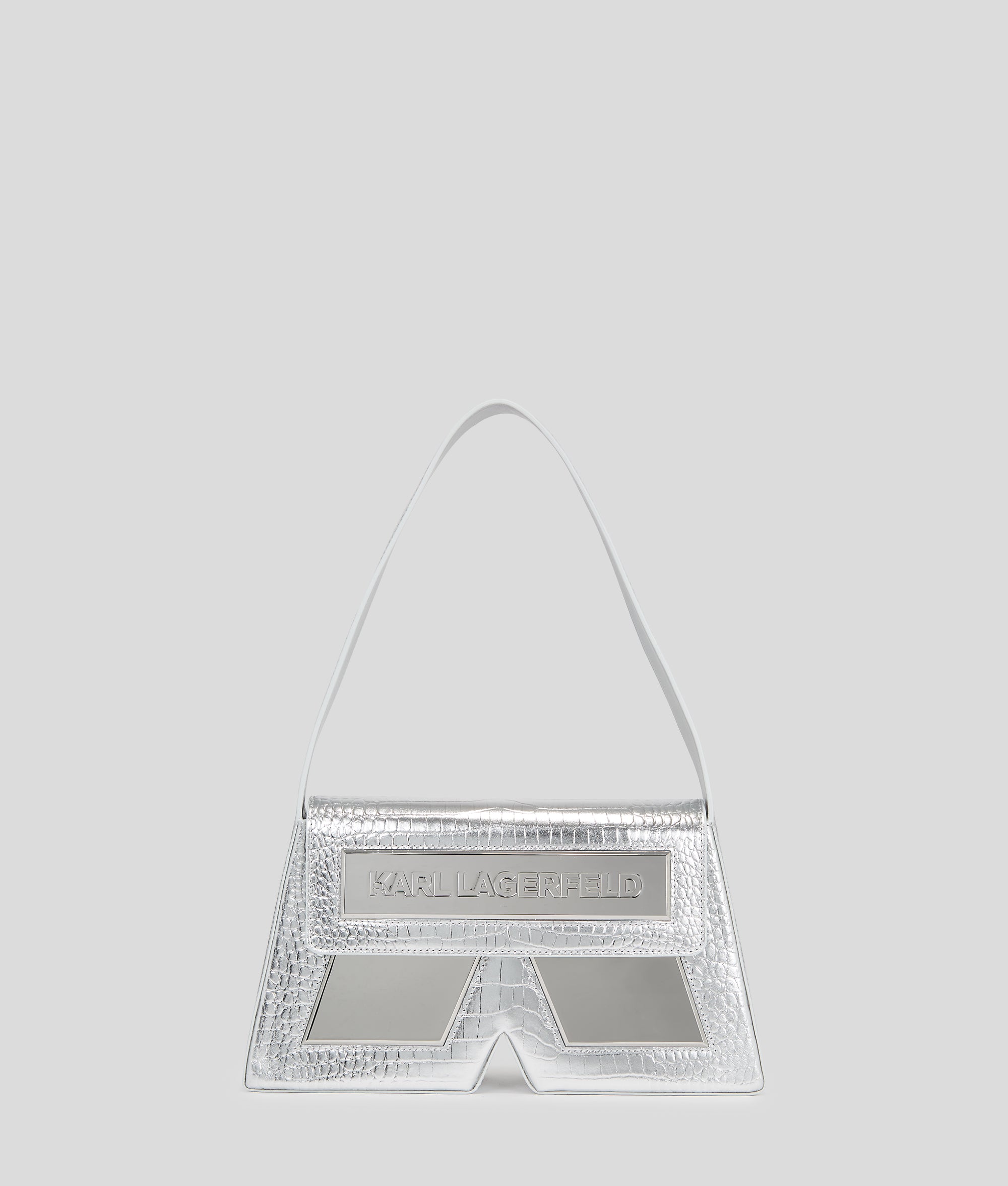 One icon. One initial. One must-have bag. Turn heads wherever you go with the IKON/K shoulder bag crafted in croc-embossed leather. The statement accessory playfully reimagines Karl Lagerfeld’s iconic initial through its sculptural silhouette and metallic silver inserts. A sleek strap allows for carrying comfortably over the shoulder or by hand, while the Essential KARL logo completes the iconic style.