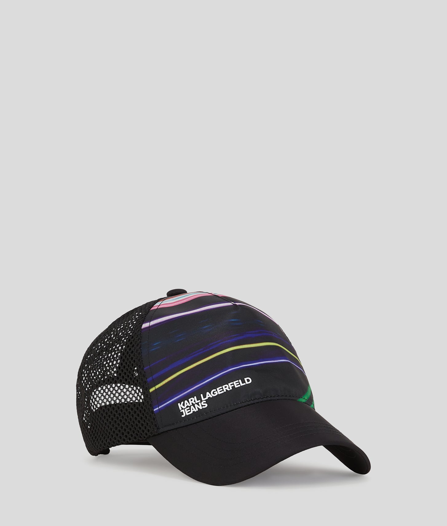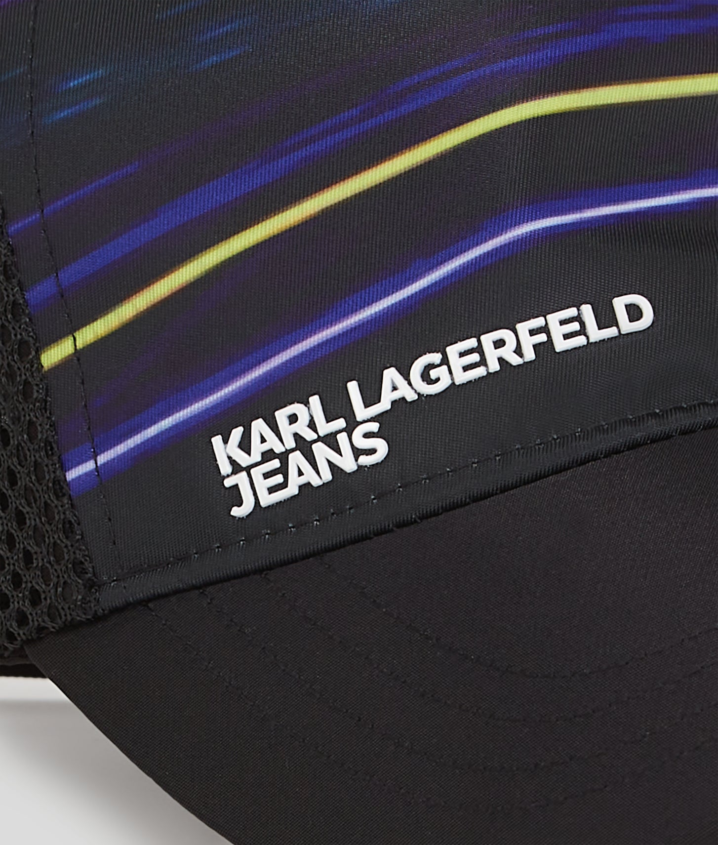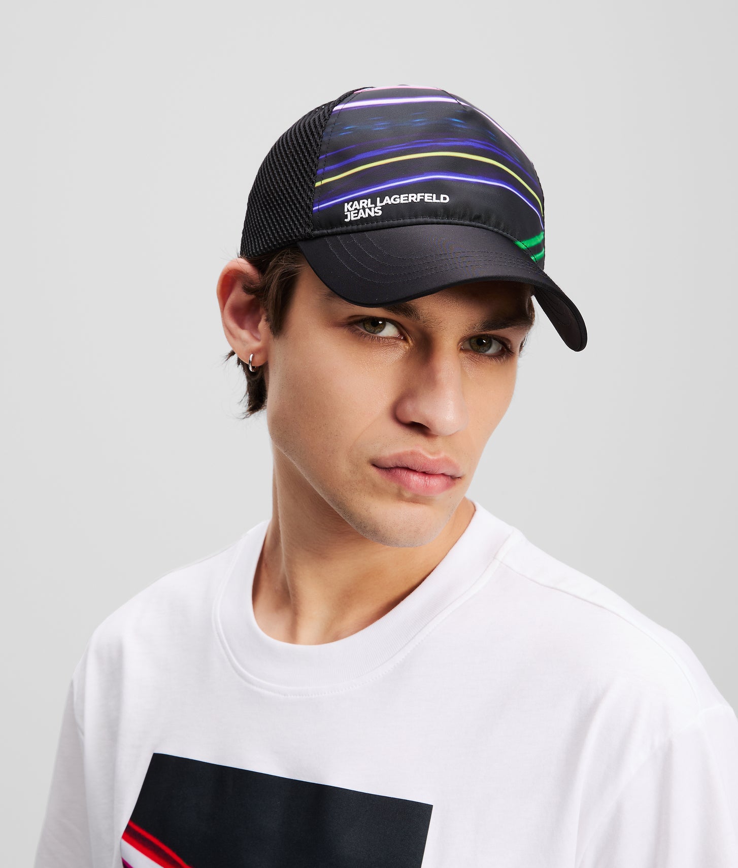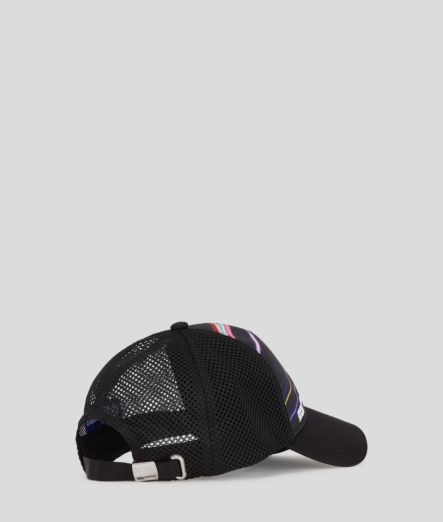 Celebrate individuality with the love unlocked trucker cap, featuring a vibrant KARL LAGERFELD JEANS artwork that radiates joy. The adjustable buckle closure ensures a perfect fit and the classic curved peak adds a timeless touch. A stylish nod to Pride Month.