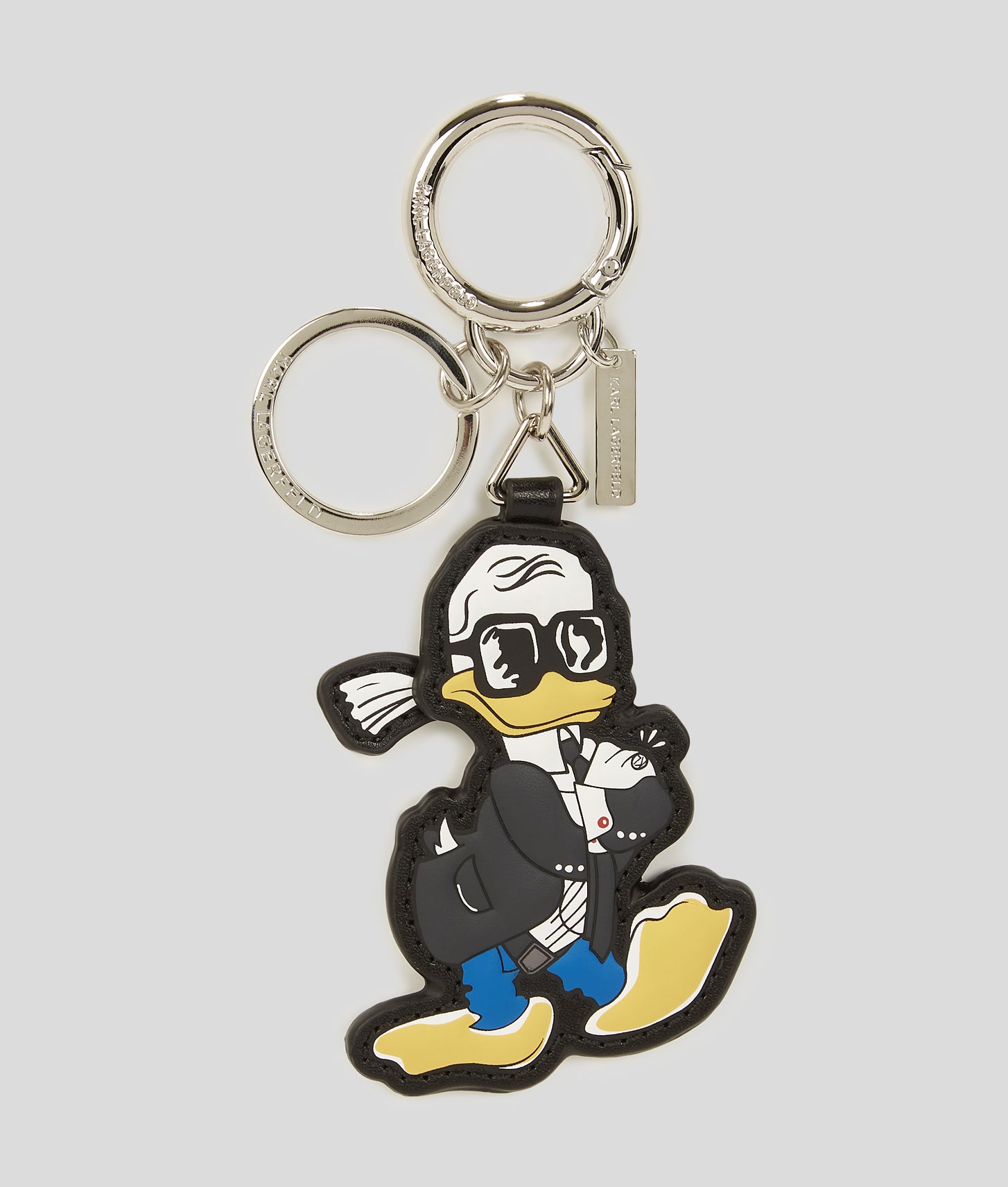 A playful tribute to a favorite character, this special-edition keychain showcases Disney's Donald Duck reimagined through the eyes of Karl Lagerfeld. Part of a unique collection, it includes secure fastenings for effortless attachment and a signature metal bar.